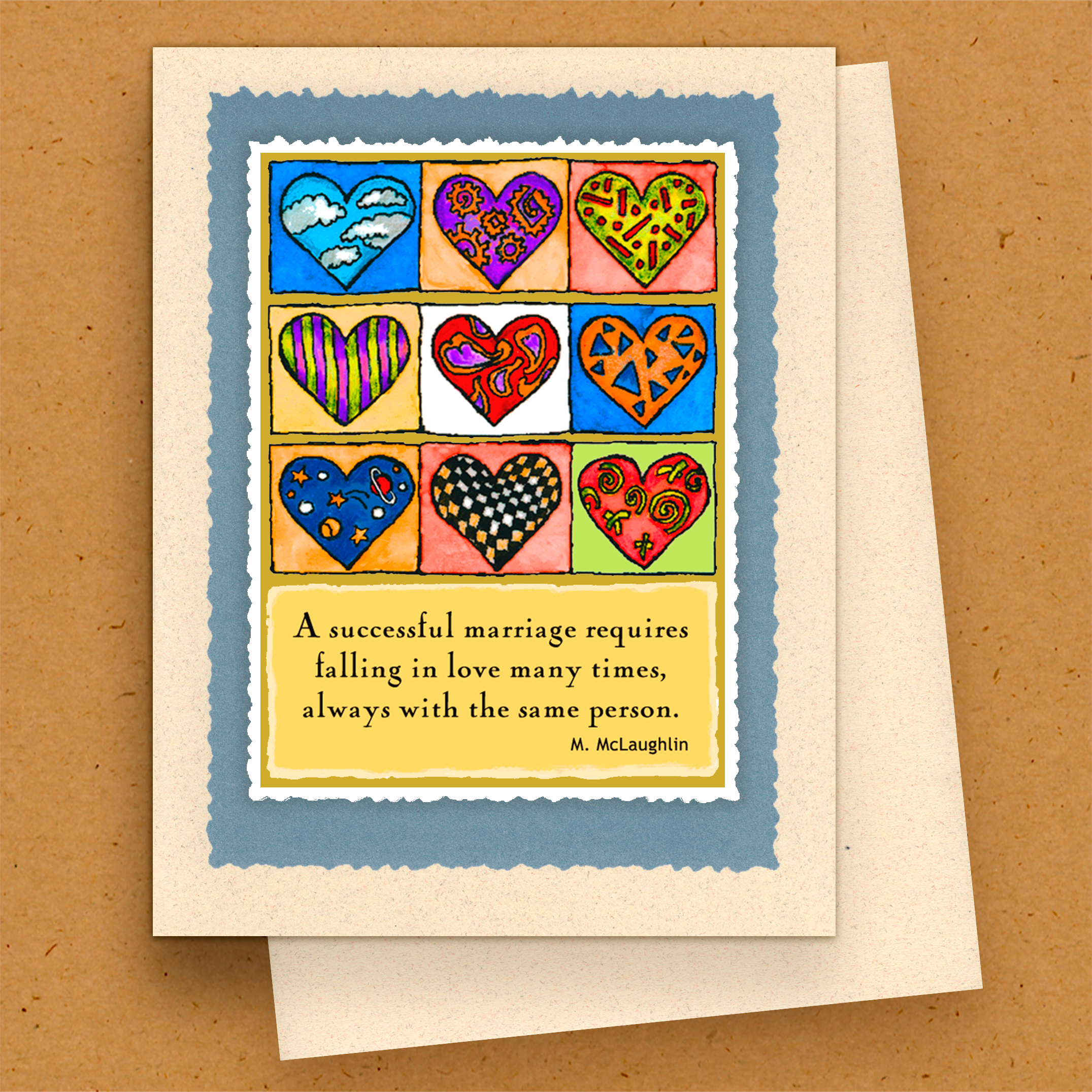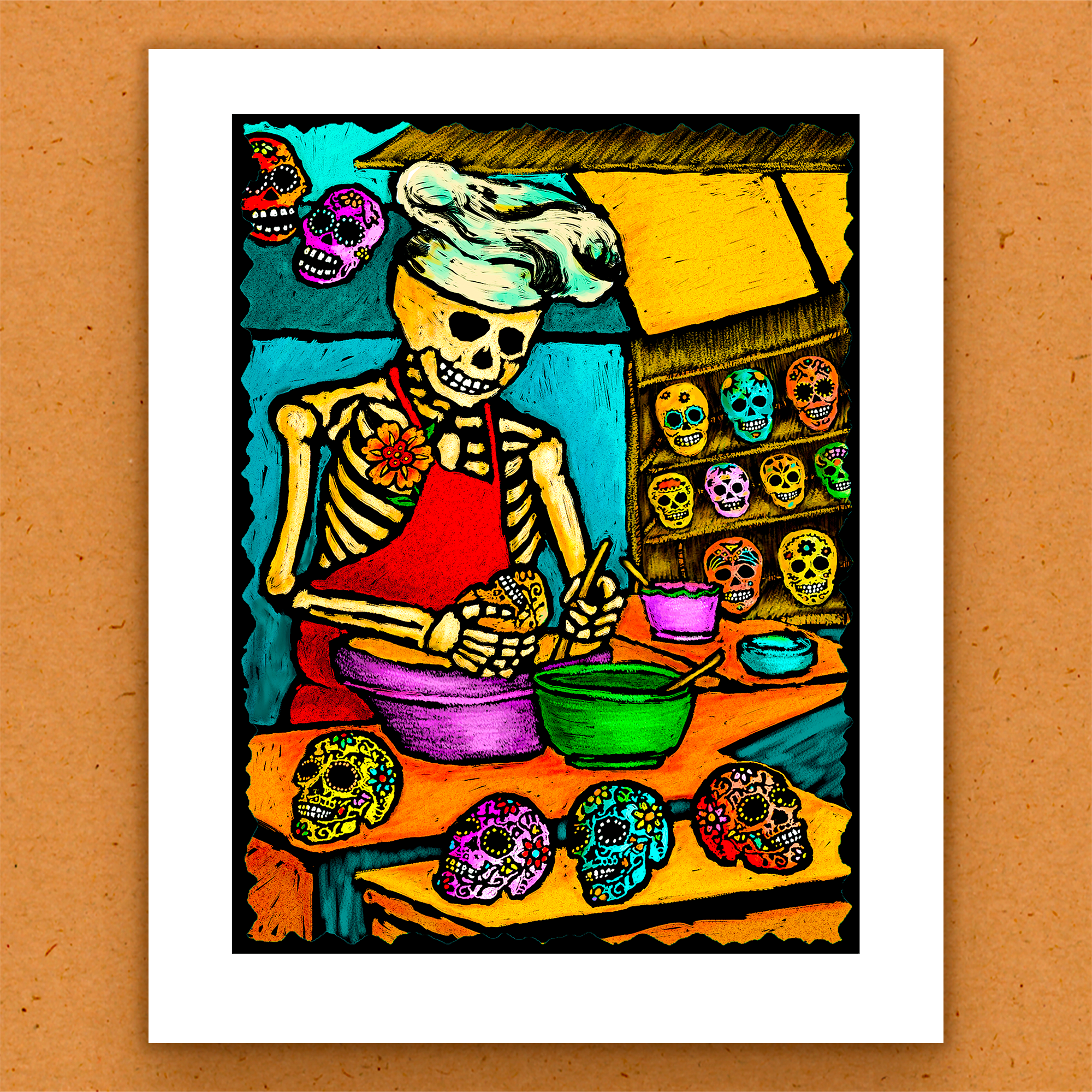 Om konstnären och hennes studio: Kaleidoscope Designs Studio är hjärnbarnet till den klassiskt skolade målaren Barbara Barratt från Santa Fe, New Mexico. "Vi grundades 1997 och har förblivit trogna vår vision om en liten studio – praktisk personlig produktion av ett helt kvinnligt team övervakat av en konstnärs öga." Som en långvarig invånare i Santa Fe har Barbara omfamnat den starka lokala estetiken och omtolkat unika och klassiska bilder i sin egen unika folkkonststil. Hennes färgglada stil är resultatet av ett livslångt arbete inom konsten som illustratör, affischkonstnär och gratulationskortdesigner. "Sedan 1997 har vi haft turen att få göra det vi älskar på en av de vackraste platserna i världen. Det har varit en lång tradition för personalen att ta en eftermiddagspaus varje dag för att njuta av varandra och det fantastiska landskapet i Santa Fe. Vi är stolta över vårt hantverk och är glada att dela det med dig. Må det ge dig mycket glädje!"