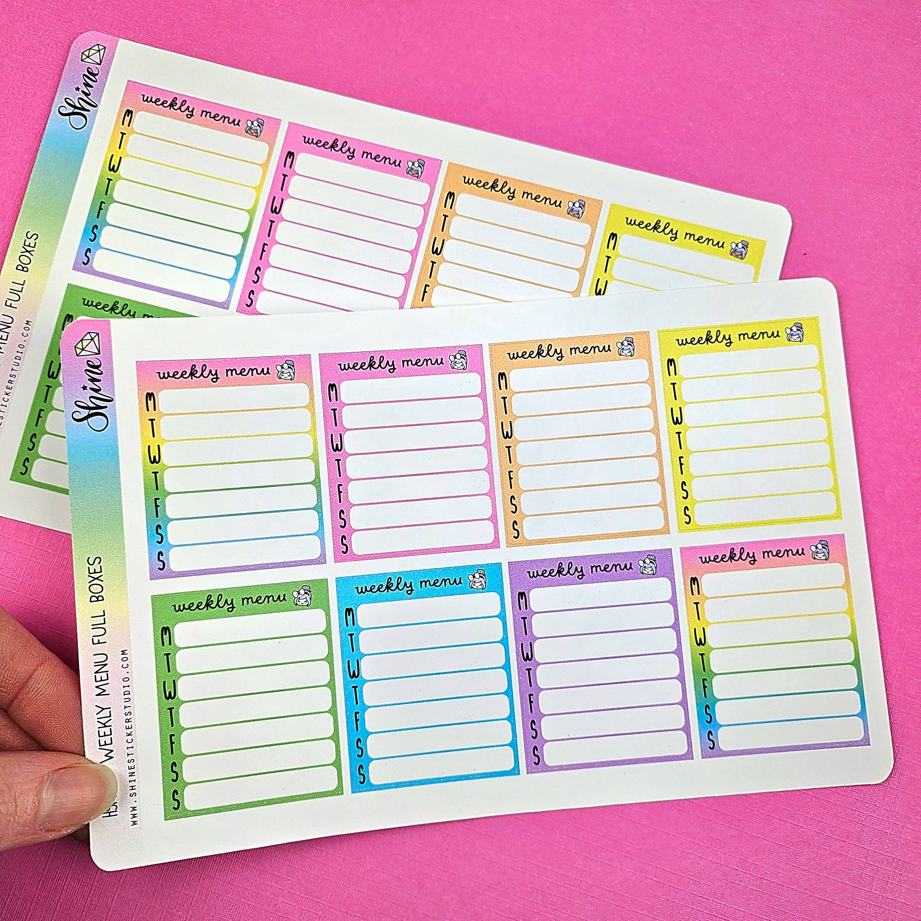 Shine Sticker Studio är ett mor-och-dotter-team av designers som specialiserar sig på unika klistermärken och tillbehör för alla typer av planeringsverktyg. Chelsea var en grundskolelärare i konst som brinner för allt som har med planering att göra. Debby är en professionell grafisk designer med mer än 40 års erfarenhet inom området. Båda tycker om att dela med sig av sin kreativitet och sina designer till planeringsgemenskapen. Deras uppdrag är att skapa produkter som får din planering att lysa!