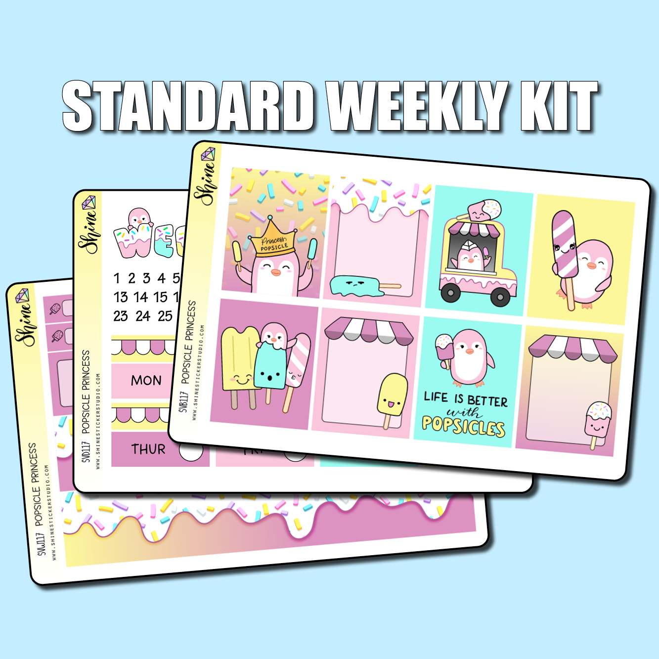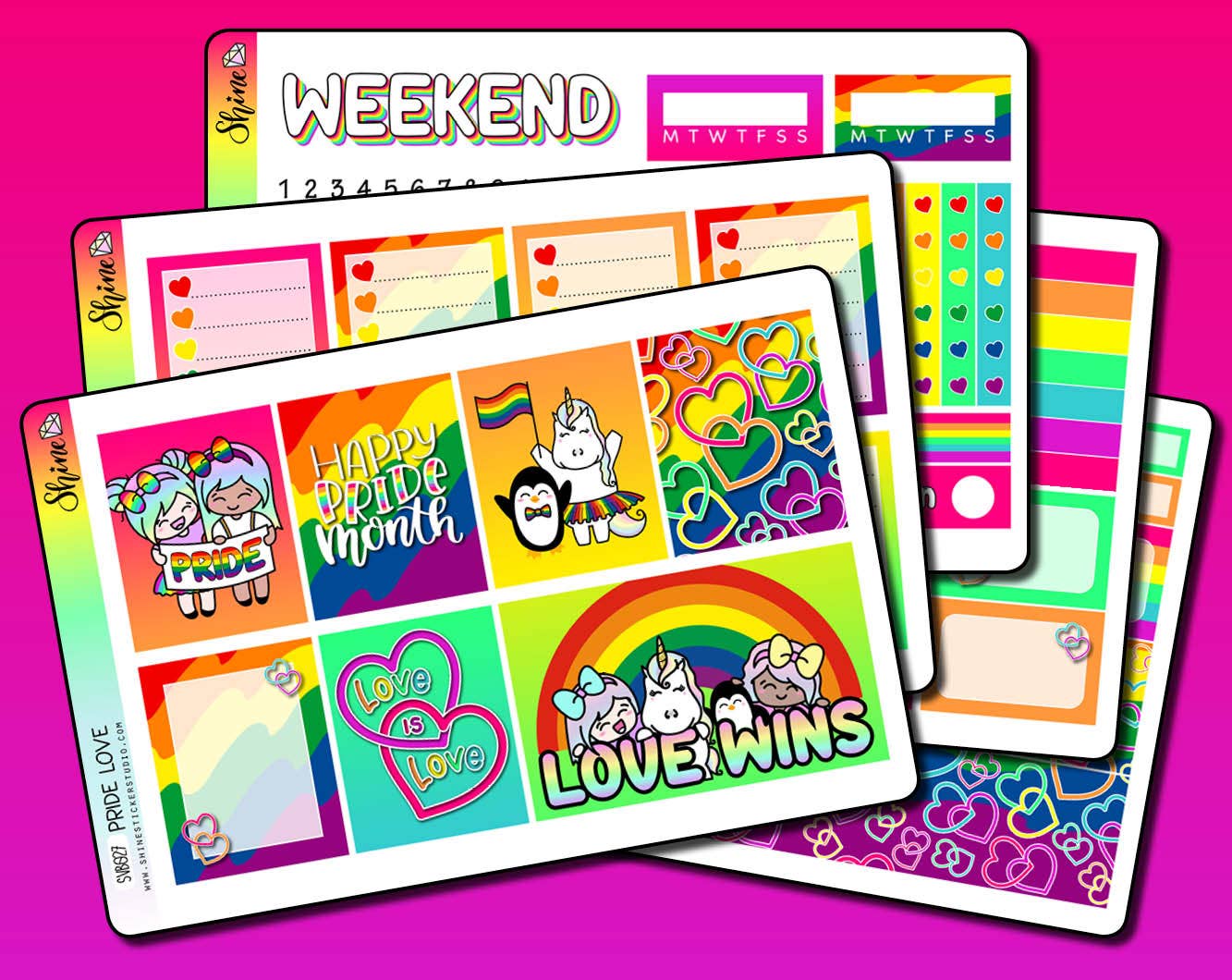 Shine Sticker Studio är ett mor-och-dotter-team av designers som specialiserar sig på unika klistermärken och tillbehör för alla typer av planeringsverktyg. Chelsea var en grundskolelärare i konst som brinner för allt som har med planering att göra. Debby är en professionell grafisk designer med mer än 40 års erfarenhet inom området. Båda tycker om att dela med sig av sin kreativitet och sina designer till planeringsgemenskapen. Deras uppdrag är att skapa produkter som får din planering att lysa!