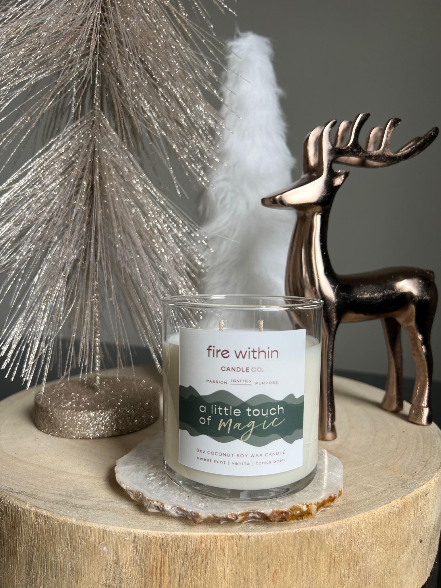 Hej! Jag heter Kelly, grundaren av Fire Within. Efter år av känsla utmattad och oinspirerad som mamma till 4, Jag bestämde mig för att skapa en samling ljus som kändes trogen mot min erfarenhet och insåg att många andra kvinnor kunde relatera till hur jag kände mig också! Det som började som en hobby för att rensa mitt huvud och ockupera mina händer förvandlades snabbt till gnistan som återupplivade den passion jag kände för livet. Även om jag bara kunde ägna några minuter åt det några dagar, det här nya projektet kändes som något som äntligen var mitt och gav mig syfte tillsammans med moderskapet. Den mest oväntade överraskningen var att hitta mitt syfte inte distraherade mig från mina föräldraplikter. På många sätt, det gjorde mig faktiskt till en bättre mamma. Jag var glad att vakna på morgonen. Jag njöt av tiden med min familj mer. Jag hade ett kreativt utlopp som hjälpte mig att se humor och silverfoder även i de tuffa stunderna. Denna verksamhet har förändrat allt för mig och fått mig att inse att jag hade en eld inuti mig hela tiden.