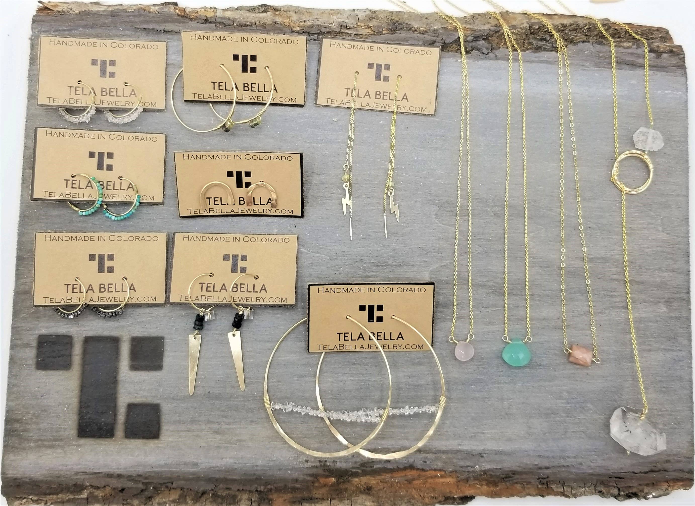 Tela Bella är ett handgjort smyckemärke baserat i Morrison, CO. Våra designer är inspirerade av naturen och skapad för aktiva kvinnor som vill ha smycken som kan övergå med dem under hela sitt dagliga liv. Våra smycken är lika äventyrliga som du är, från brunch med vänner till deras yrkesliv till summerande berg. Hållbarhet är viktigt för oss, varför vårt mål är att minska vår miljöpåverkan genom att vidta åtgärder varje dag för att bli mer miljömedveten. Våra förpacknings- och märkesmaterial är tillverkade av 100% återvunnet material efter konsument. Vi donerar för att ha ett träd planterat för varje beställning som köps.