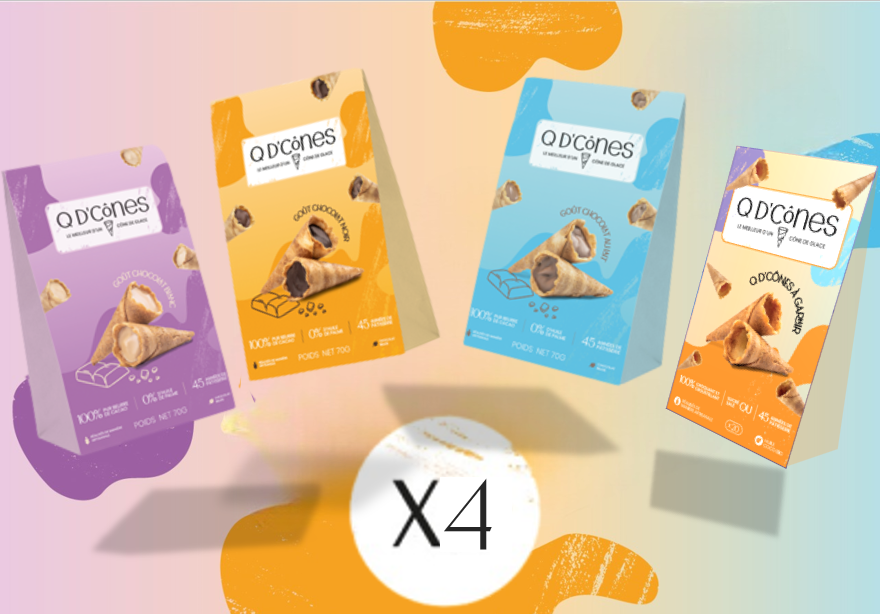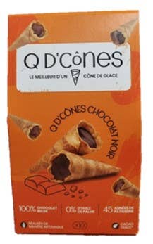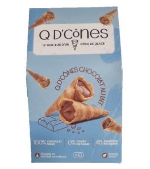 Q d'cones, chokladgalenskapen som kommer att väcka dina smaklökar! Vilken är din favoritdel av en glasskot? Slutet? Slutet fyllt med choklad? Q av kottar! Föreställ dig frustrationen när du är klar med din glasskot och vill hålla det roliga igång. Med Q of cones löste vi det problemet! Du behöver inte nöja dig med bara en portion, nu kan du njuta av varje bit som om du avslutar din favoritglasskot. Du kan också lägga dem som toppning på en skopa glass, servera med ditt kaffe, dela dem... Q d'cones finns i 3 smaker: mörk choklad, mjölkchoklad eller vit choklad, alla med pralin och krispig kon. Men också tomt, att fylla eller inte, för att låta fantasin springa vild! Söt version, salt version... Ett nytt gourmetnöje börjar!
