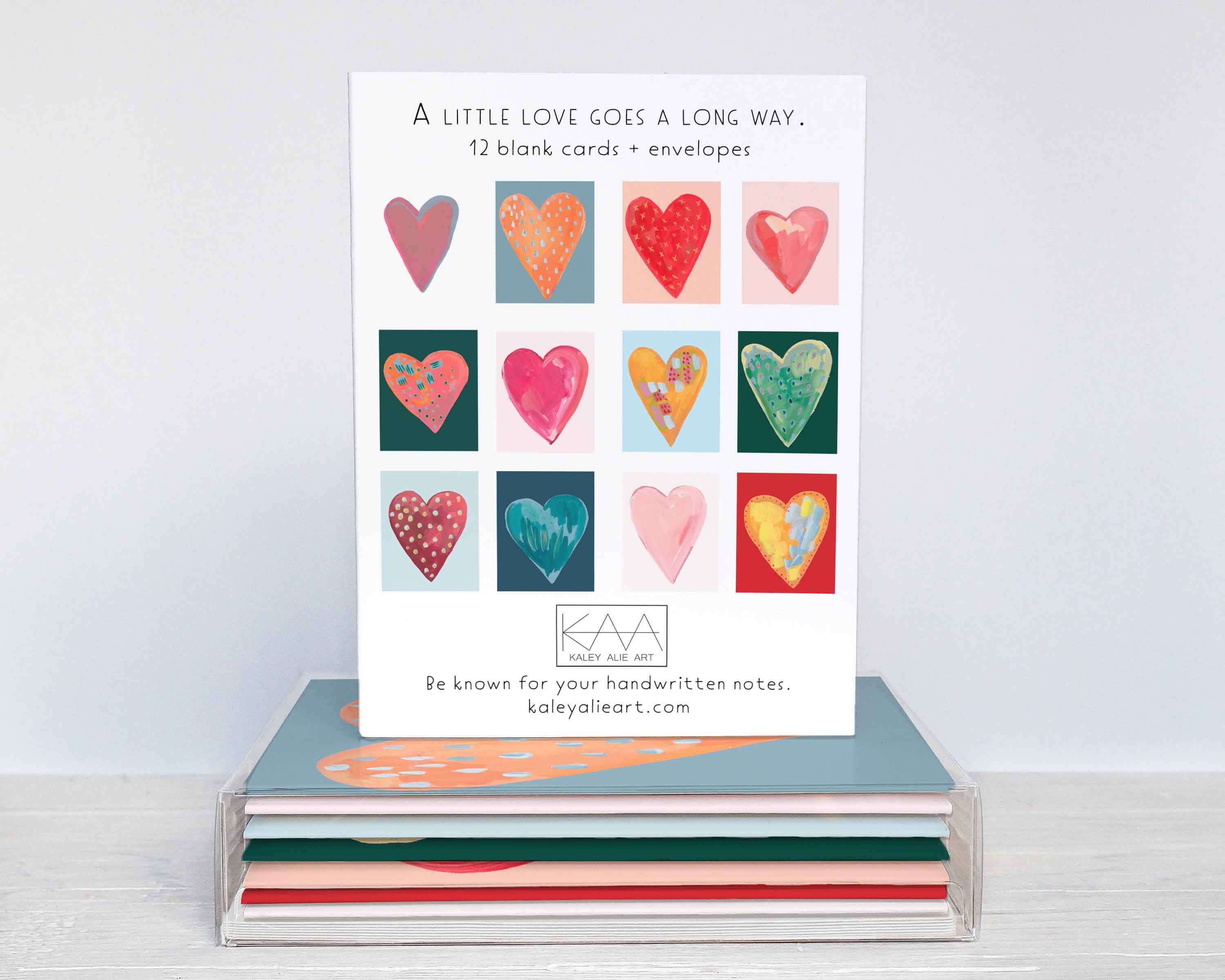 Hej! Jag är Kaley, akrylmålaren bakom duken som skapar glada, ljusa, lyckliga konstverk. År 2018 startade jag mitt kreativa projekt i Colorado och började med en liten serie gratulationskort. Med min kombinerade kärlek till målning och pappersvaror har mitt företag vuxit till att nu omfatta över 200 kortdesigner, plus årliga kalendrar. Jag är en stark anhängare av konst som får dig att le och kraften i en handskriven lapp. Korten trycks i små upplagor i USA på FSC-certifierat papper och är förseglade i ett växtbaserat hölje som är komposterbart (möjlighet att utelämna höljen). Alla kort är blanka inuti, vilket gör dem perfekta för alla tillfällen. Kaley Alie Art är medlem i 1% For The Planet och är engagerad i att donera 1% av den årliga inkomsten till de platser och det djurliv som inspirerar konsten.