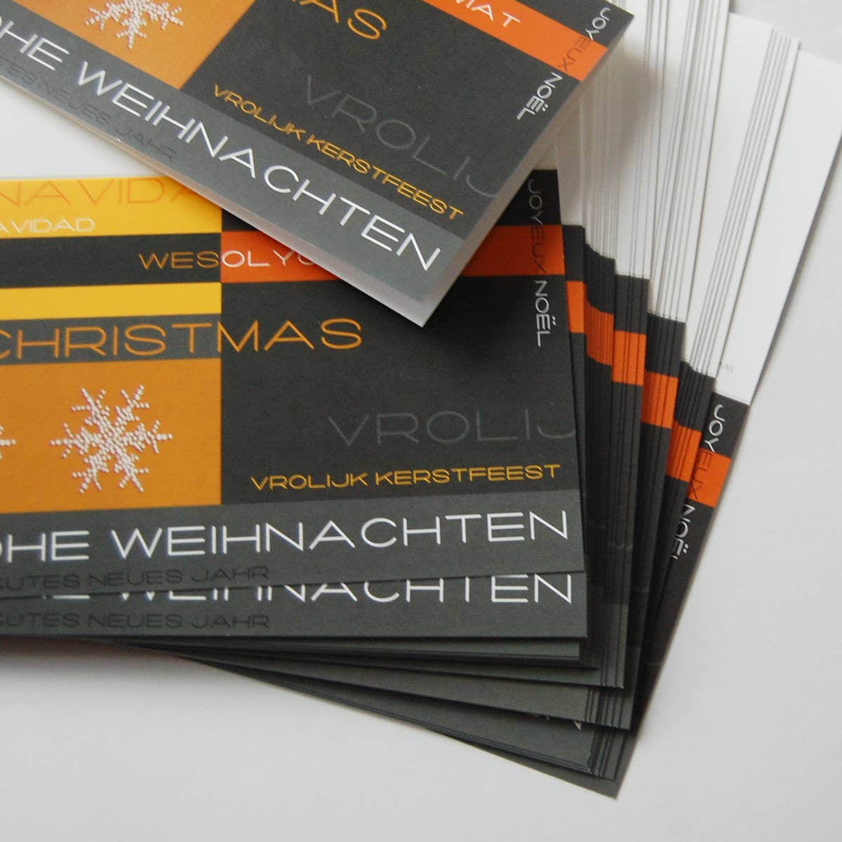 Kettcards är en byrå för bildkonstnärer, grafiska formgivare och fotografer. Vi använder potentialen hos våra kreativa designers själva och, som utgivare, producerar motiv som ofta är lite utanför normen. Våra konstnärer och designers designar gratulationskort, påskhälsningar, bröllopsinbjudningar och framför allt: massor av kort för jul och nyår. Det enda kravet vi gör: Du måste också vilja skicka korten själv! Detta skapar individuella, konstnärligt värdefulla mönster. Vi skriver ut i Berlin, i korta körningar och på högkvalitativt material, mestadels i offset (på färgad kartong men även genom screentryckning). Där så är möjligt har vi tryckt på återvunnen kartong i många år.