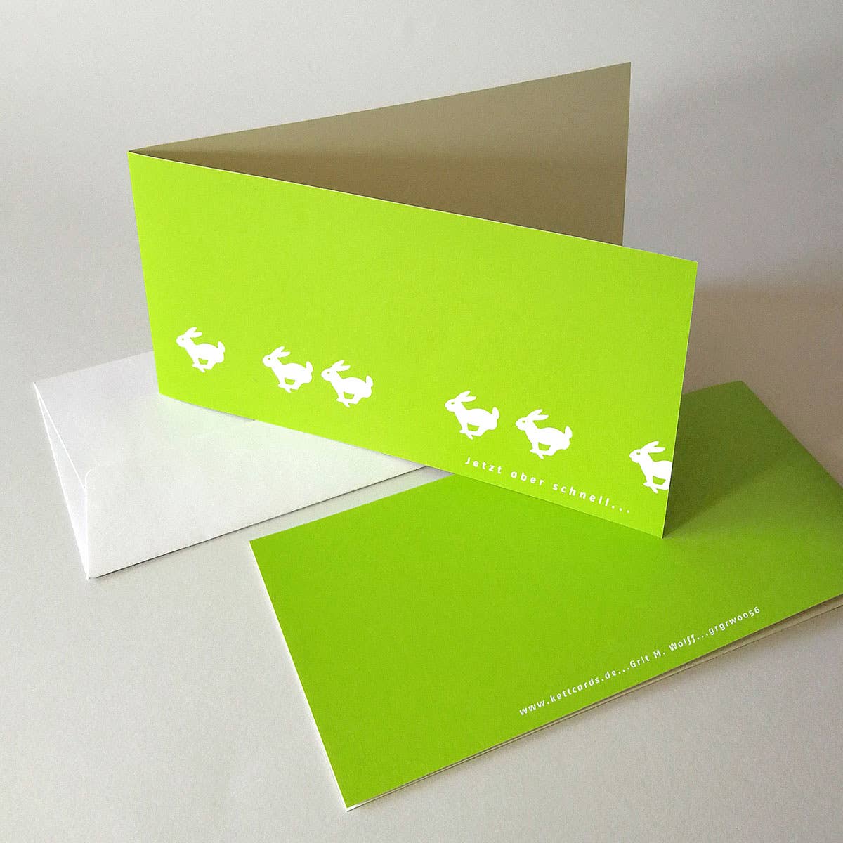 Kettcards är en byrå för bildkonstnärer, grafiska formgivare och fotografer. Vi använder potentialen hos våra kreativa designers själva och, som utgivare, producerar motiv som ofta är lite utanför normen. Våra konstnärer och designers designar gratulationskort, påskhälsningar, bröllopsinbjudningar och framför allt: massor av kort för jul och nyår. Det enda kravet vi gör: Du måste också vilja skicka korten själv! Detta skapar individuella, konstnärligt värdefulla mönster. Vi skriver ut i Berlin, i korta körningar och på högkvalitativt material, mestadels i offset (på färgad kartong men även genom screentryckning). Där så är möjligt har vi tryckt på återvunnen kartong i många år.