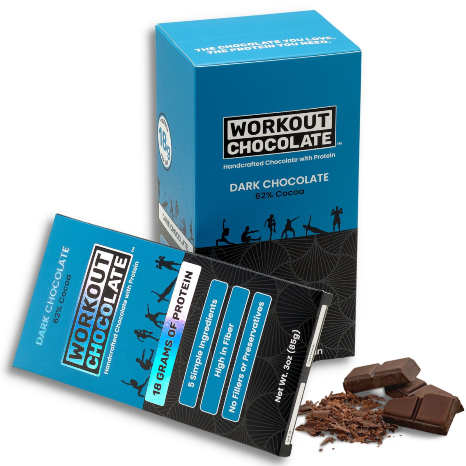 Workout Chocolate är här för att överbrygga klyftan mellan njutbara snacks och hälsosamma alternativ. Om du är trött på att nöja dig med intetsägande ersättare, nedslående ersättare och de överväldigande proteinstängerna, är det dags att ge Workout Chocolate en virvel. Föreställ dig detta: en noggrant handgjord, proteininfunderad chokladkaka som inte bara lockar dina smaklökar utan också levererar 18 gram protein, vilket ger din kropp det bränsle den längtar efter samtidigt som du tillfredsställer din längtan efter rik, utsökt choklad. Och den bästa delen? Till skillnad från de andra produkterna laddade med konstgjorda fyllmedel är vår skapelse enkel och äkta, gjord av bara fem enkla ingredienser: ekologisk kakao, havssalt, organiskt socker, organiskt kakaosmör och vassleproteinisolat. Vi är här för att erbjuda dig det bästa från två världar - den läckra choklad du har längtat efter och det viktiga proteinet som din kropp behöver för att trivas. Så fortsätt och skäm bort dina sinnen: utan skuld.