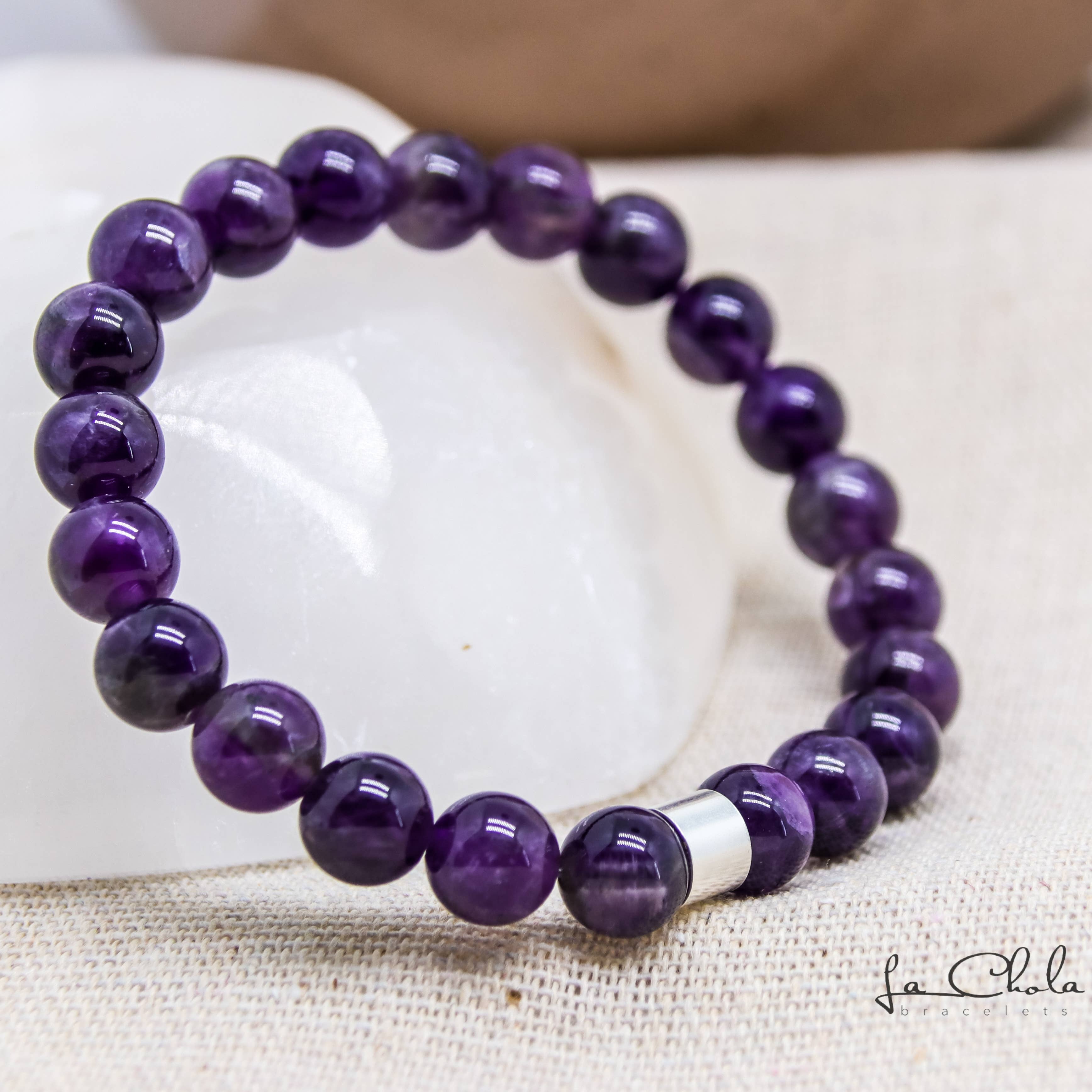 La Chola armband är en webbutik skapad med en önskan att dela med dig vår kärlek till mineraler och deras fördelar. Vi gör armbanden för hand med material av bästa kvalitet, 100% naturstenar sökta i världens fyra hörn, 925 silverpärlor och mycket resistenta trådar för att säkerställa att du är en produkt som kan bäras dagligen. Ditt armband är förberedt speciellt för dig vid inköpstillfället genom att ge det en speciell avsikt genom energiska programmeringsmetoder. Det sägs att det är stenarna som letar efter dig. Låt din sten välja dig!