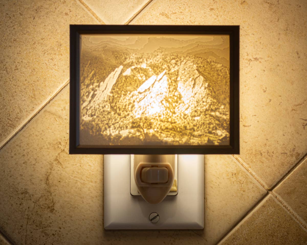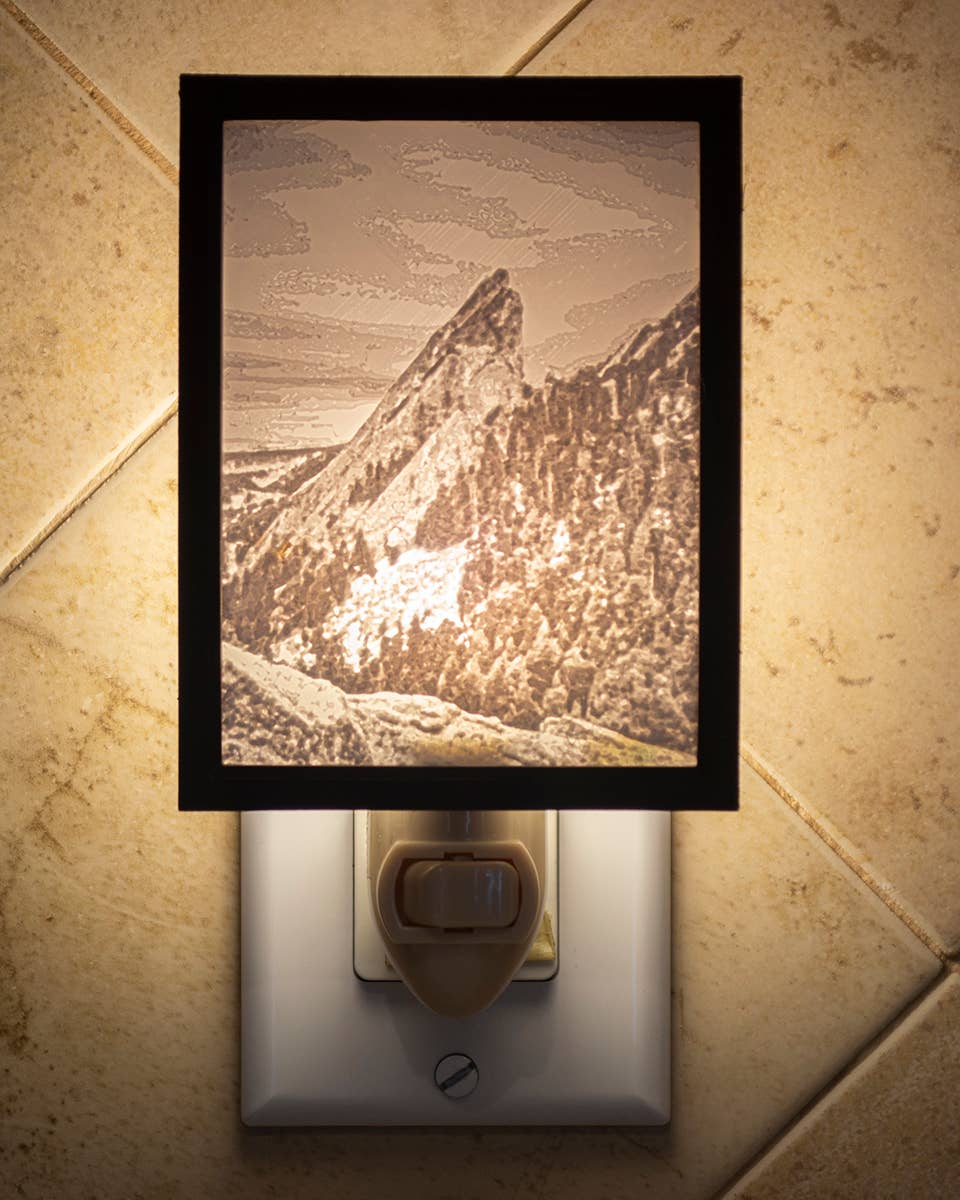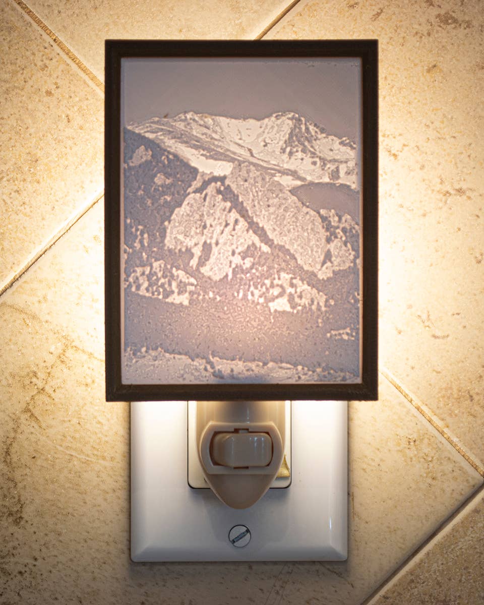 Born of inspiration from the Colorado Mountains, ThreeDee Tech is a dream come true for a couple artists that wish to convey this incredible beauty and grandeur through a variety of products marrying old world themes and woodworking with contemporary use of 3D printers, laser cutters and desktop CNC. Of particular interest is the use of the “lithophane” in our efforts. A lithophane is a concept from the late 1800’s where translucent, sculpted paper or ceramic artwork was hung in windows to get a backlit, three dimensional effect as the sun poured through. Fast forward a couple centuries and we now create these lithophanes with real 3D textures to make the artwork actually pop out of the frame. Many of our products start with this lithophane, but are framed with a variety of metals, like copper, bronze and steel, and exotic woods: walnut, maple, cherry… and even “Blue Stain Pine.” They are made with an eye to detail and quality, and will place well among your most prized possessions and decor.