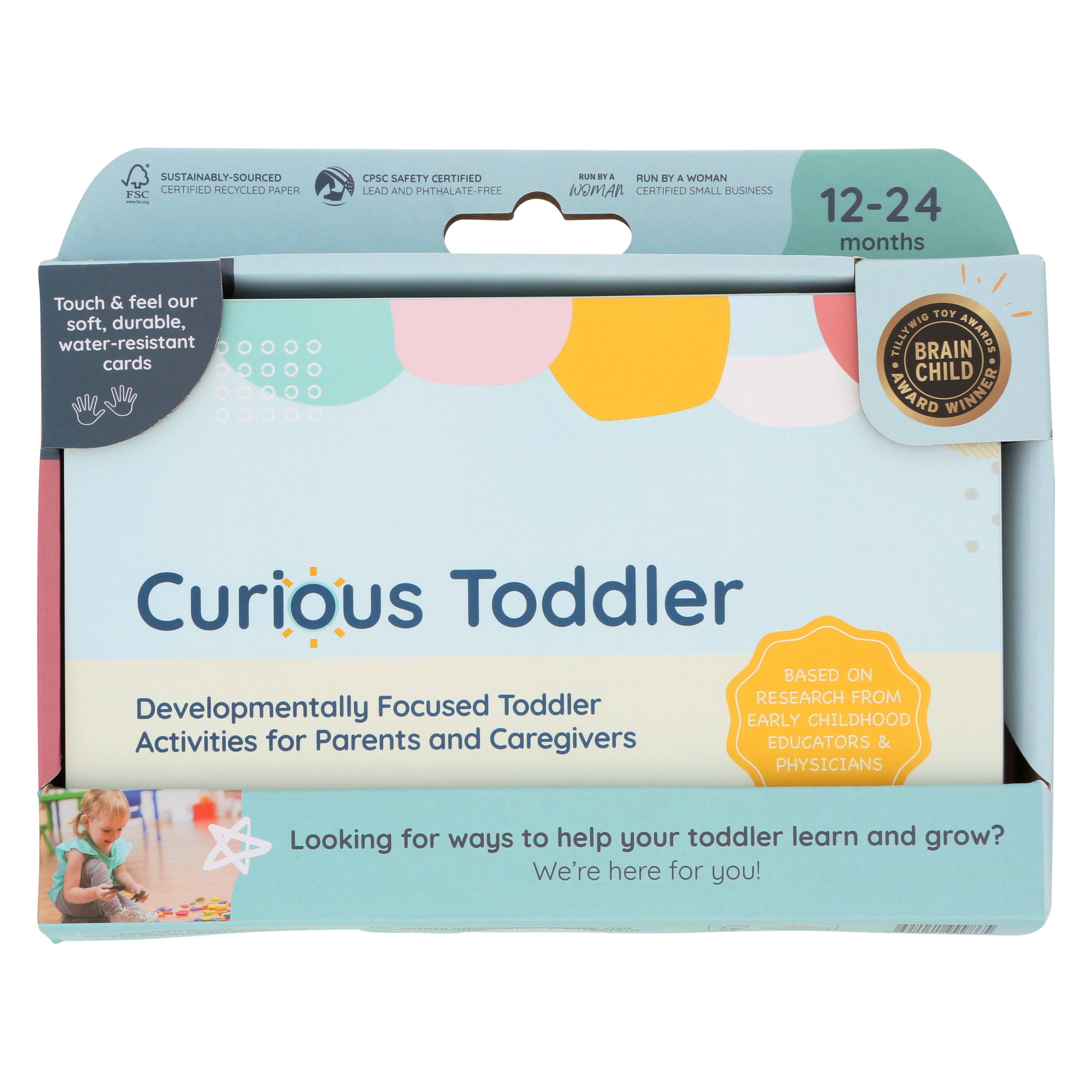 Tack för att du stannade förbi vår butik! Vi är Mark och Lizzy och när vi fick vår första dotter Frances var vi överväldigade minst sagt. Utmattad och sömnberövad, vi hade svårt att anpassa oss till vårt nya liv som föräldrar. Det fanns så många viktiga saker att räkna ut från sömnscheman till matallergier och allt däremellan. Vi insåg snabbt att det inte var lätt att lista ut vad man skulle göra hela dagen, men som många nya föräldrar var vi i överlevnadsläge. ”Sova när barnet sover” säger de. Inte, ”Spendera tid på att forska utvecklingsaktiviteter medan de sover!” 🙃 Vi visste att det måste finnas ett sätt att hjälpa andra föräldrar att gå igenom samma sak. Och vi var fast beslutna att göra det lättare för oss själva för andra gången. Så här föddes nyfikna Baby aktivitetskort. Vi hällde igenom forskningen, samlade en medicinsk rådgivningsteam och skapade en uppsättning kreativa aktiviteter som du kan göra med ditt barn under varje utvecklingsstadium av hela sitt första år.