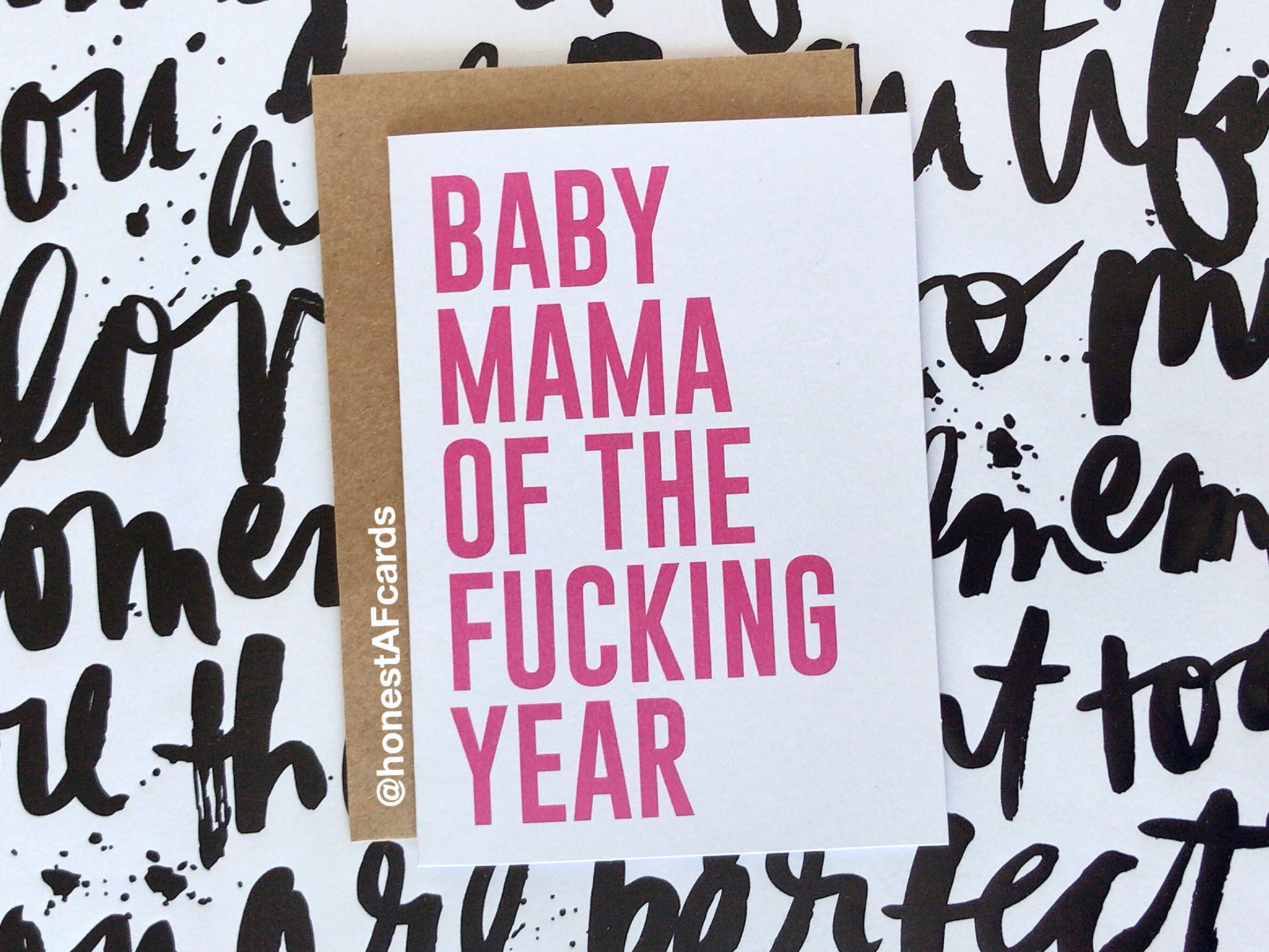 Frustrerad över gratulationskort som är fulla av poetiska saker jag aldrig skulle säga, började jag ärliga AF-kort efter att ha skapat och skickat ett kort till en vän som helt enkelt läste: ”You 're So Fucking Awesome!” Han älskade det och ärliga AF-kortens resa började. Med det enda syftet med enkla, ärliga, ofta obscena men roliga meddelanden är ärliga AF-kort unika. De som känner mig, vet att jag sällan biter min tunga! När jag skapar mina kort ger jag mig själv tillåtelse att bara vara mig själv! Min inspiration kommer främst från saker jag säger till människor jag känner, men jag är också inspirerad av familj och vänner. Jag älskar hur även människor som är lite mer konservativa verkligen får ett skratt ur mina kort! Återkopplingen från köpare lokalt och över hela världen har varit så fantastisk! Mina kort är enkla och ärliga som f—k! Inga blommor. Inga ballonger. Inget BS. Bara ord.