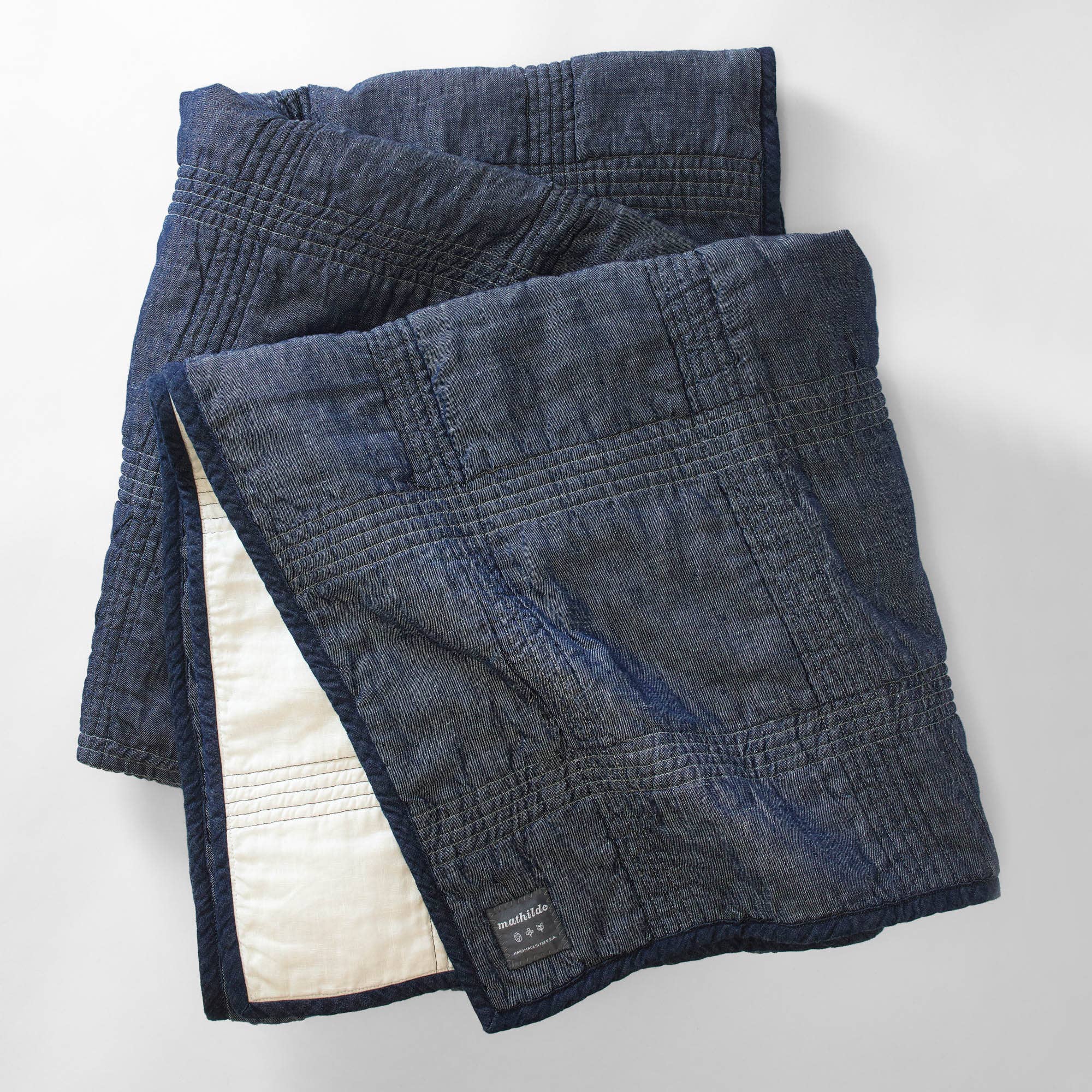 Mathilde tillverkar moderna linne arvstäcken och tillbehör som ligger i skärningspunkten mellan samlarobjekt modernt hantverk och användbarhet, med utsökta ytmönster inspirerade av geometri och arkitektur. Våra produkter tillverkas stolt i Rhode Island i små partier av ett team av kvinnliga stygnare. Vi tillverkar våra linnetäcken och varor för hand med noggrant utvalda naturmaterial; 100% linne och bomull.