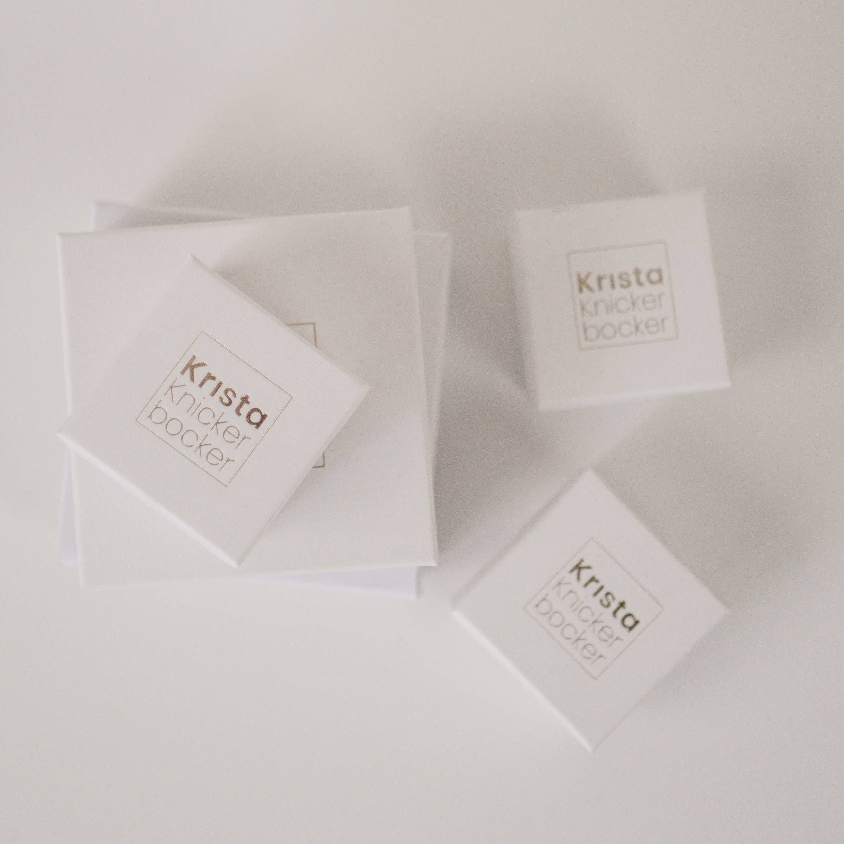 Hej, Jag heter Krista, en arkitekt-vände-metalsmith och kvinnan bakom Krista Knickerbocker Designs. Jag fokuserar på att göra varje dag, hög kvalitet, lätt att bära moderna kapselsmycken. Jag gör bitar som du enkelt kan ta tag i varje morgon och bära från skolan, att jobba, till gymmet, och allt däremellan. Jag gör hela eller delar av varje produkt själv, medan jag lägger ut några steg i processen för att säkerställa en högre. Till exempel lägger jag ut all plätering så att jag kan se till att mina vermeilbitar verkligen är en tjock beläggning av 14 k guld. Jag gick in i metalsmithing på ett konstigt sätt, börjar med konkreta smycken. I mitt tidigare yrke använde jag ibland finkornig betong för att göra arkitektoniska modeller, och detta material var min port till smyckedesign. Långsamt genom åren, Jag har samlat färdigheter, verktyg, erfarenhet och självförtroende. Jag erbjuder fortfarande några av mina betongbitar. Utöver det, Jag är mamma till 3, bärare av alla hattar, designälskare och processdriven juvelerare. Och ja, ”Knickerbocker” är verkligen mitt efternamn. Det tog mig sju hela års äktenskap att göra det officiellt, men nu har jag helt omfamnat det!