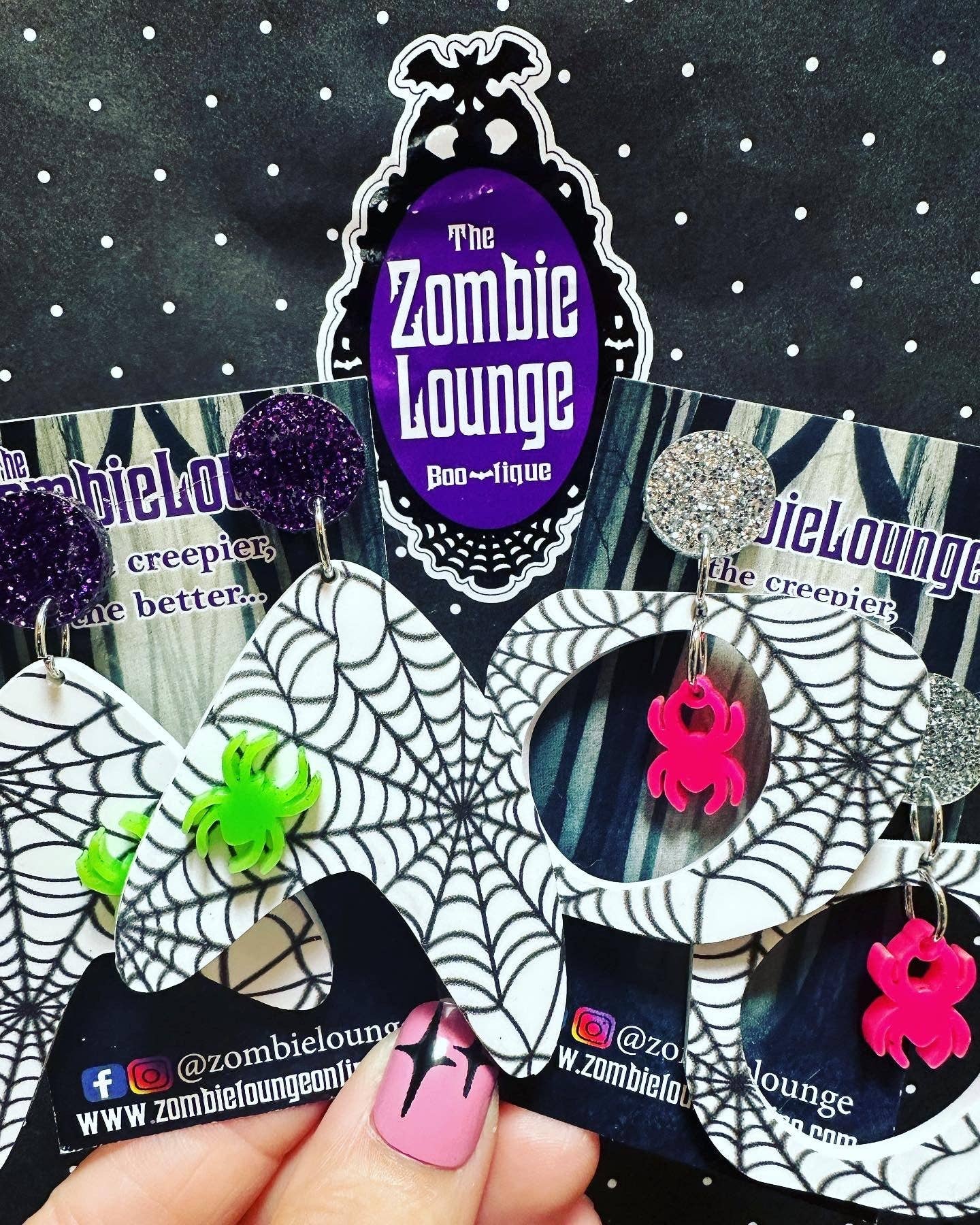 ZombieLounge Bootique föddes ur vår kärlek till vintage spooky, Halloween, helgdagar och allt konstigt och ovanligt. Vi började 2010 med handgjorda smycken, konst och t-shirts. Vi har sedan dess vuxit till vår unika linje av kläder, smycken, plånböcker, hemvaror, klistermärken, hemvaror och mer. Alla våra produkter är handgjorda i USA. Vi lägger tid och ansträngning på våra produkter för att se till att vi erbjuder kvalitet och unika artiklar. Kolla in vårt sortiment av unika produkter. Håll dig skrämmande! - ZombieLong Boo-tique