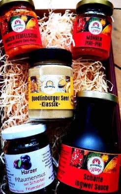 Vårt mål är att skapa smakrika produkter som berikar våra liv och våra måltider. Vi lägger stor vikt vid naturliga ingredienser och att undvika onödiga tillsatser. När vi letade efter recept stötte vi på ett 1 000 år gammalt senapsrecept. Med detta recept började vi för 15 år sedan. På den tiden fanns det inget socker, istället tillsattes lite sötma till senapen med lokal honung. Det fanns inte heller någon brännvinsvinäger, men bra fruktvinäger. För en speciell kick användes lokal pepparrot. Enligt denna medeltida receptinriktning kryddar och smakar vi idag av vår fina Quedlinburg-senap. En biodlare från grannbyn levererar bra biodlarhonung till oss för detta.