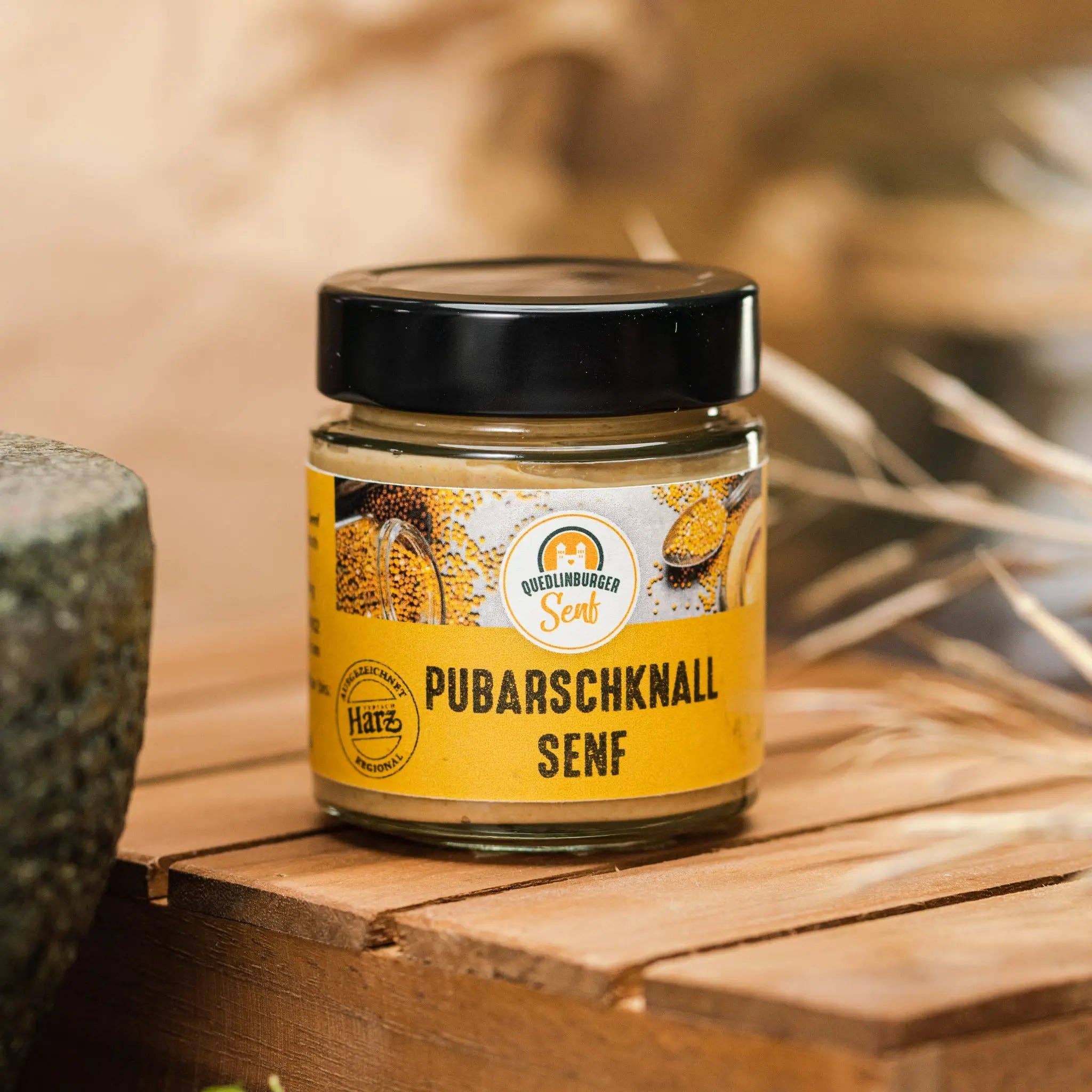 Vårt mål är att skapa smakrika produkter som berikar våra liv och våra måltider. Vi lägger stor vikt vid naturliga ingredienser och att undvika onödiga tillsatser. När vi letade efter recept stötte vi på ett 1 000 år gammalt senapsrecept. Med detta recept började vi för 15 år sedan. På den tiden fanns det inget socker, istället tillsattes lite sötma till senapen med lokal honung. Det fanns inte heller någon brännvinsvinäger, men bra fruktvinäger. För en speciell kick användes lokal pepparrot. Enligt denna medeltida receptinriktning kryddar och smakar vi idag av vår fina Quedlinburg-senap. En biodlare från grannbyn levererar bra biodlarhonung till oss för detta.