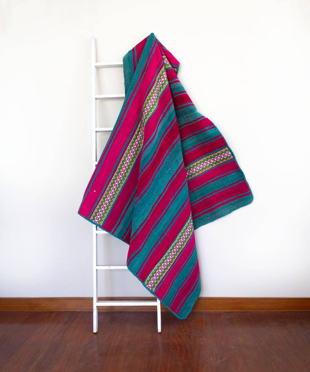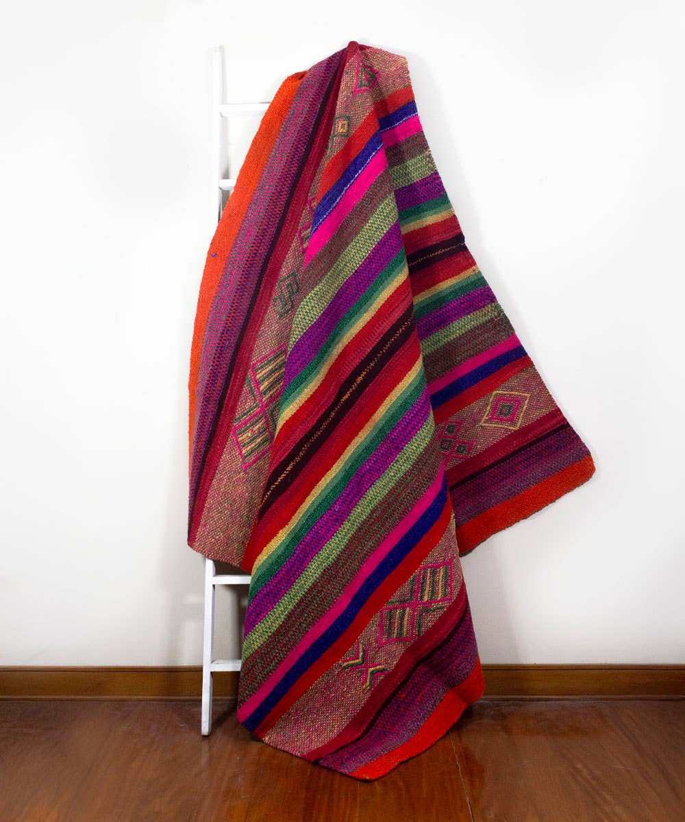 Vinlooms vintageaccessoarer har överlämnats genom generationer av de inhemska Quecha-familjerna som bor i de peruanska Anderna, och är inte bara unika konstverk, utan en hyllning till hantverksarbete och de traditionella metoderna för textilproduktion, som vackert bevarar en kultur för kommande generationer. Hemtillbehör är tillverkade av 100% ull och visar den invecklade handvävda designen med ett brett utbud av färger gjorda av organiskt färgämne, vilket omedelbart ger en ljus och energisk touch till ditt utrymme.