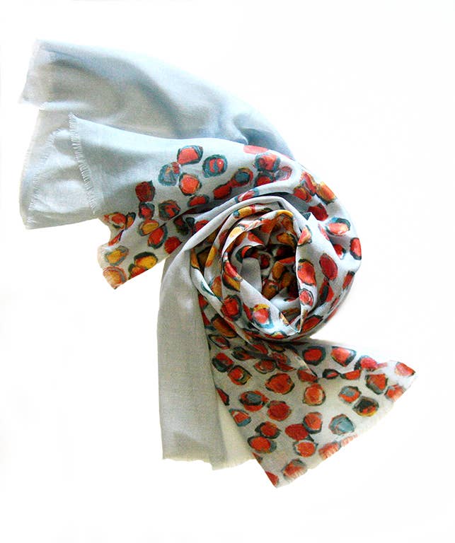 Slå in dig i konstverk inspirerade av rörelse och färg i vår värld. Mina konstdukar innehåller detaljer om mina originalmålningar digitalt tryckta i fullspektrumfärg på fina tyger i silke, bomullsblandningar och andra hållbara fibrer. Jag är målare, konstnär, designer, färgentusiast och mycket mer! Halsdukarna översätter mina oljemålningar, akvarell och blandade medier till flera bärbara föremål som uttrycker en kreativ känsla. Precis som mitt konstverk visar de starka och levande nyanser, och en noggrann balans mellan former i dynamiska kompositioner. Roligt faktum: När folk som besökte min studio började berätta för mig att de ville ”bära min konst” började jag utveckla denna serie av digitalt tryckta konstnärliga halsdukar. Så fort jag fick min första leverans fick jag min första grossistbeställning med en konstmuseibutik i Minneapolis. Mina halsdukdesigner är uppkallade efter starka, vackra och inflytelserika människor jag har känt, de flesta av dem kvinnor. Min begränsade upplaga konst halsdukar och accessoarer sticker ut i en värld av massproduktion.