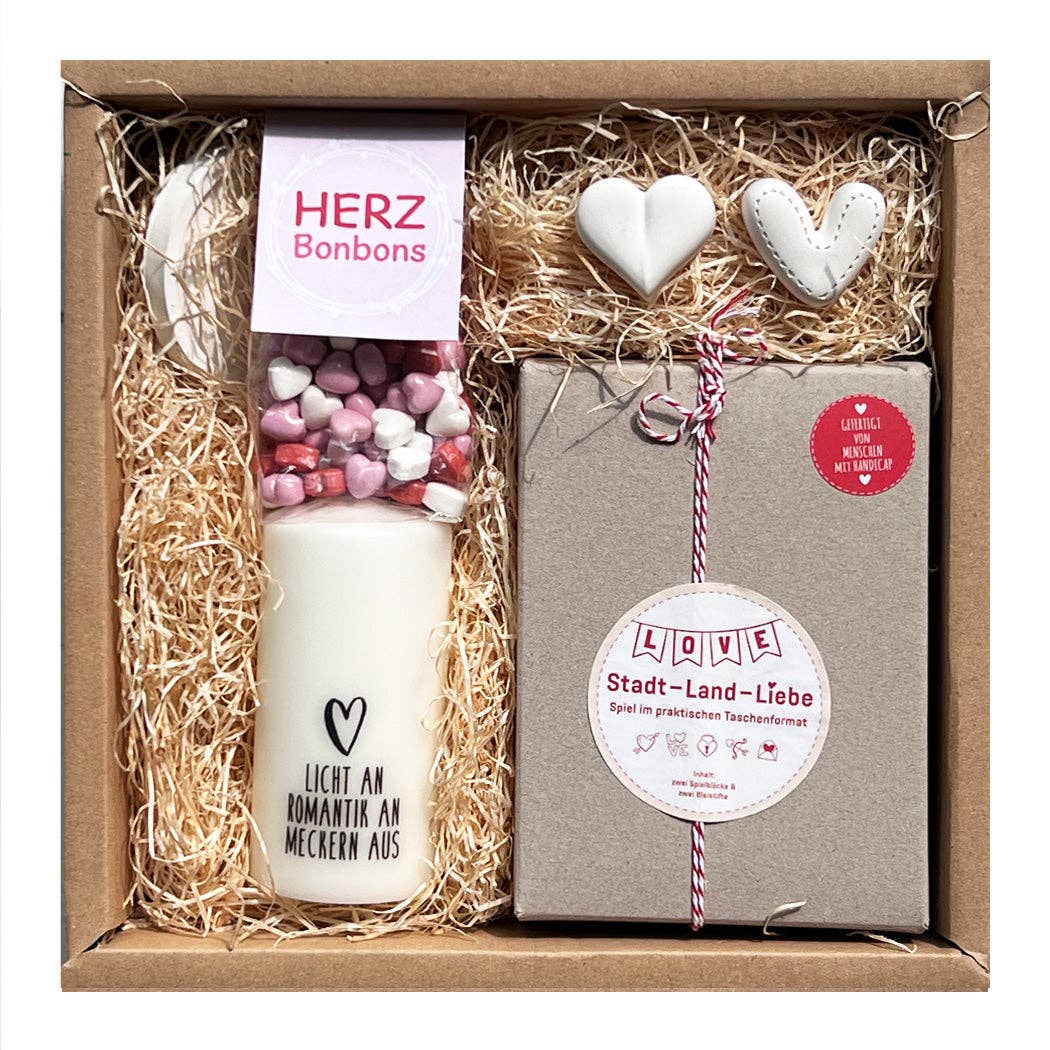 Wunderle står för handgjord glädje och kreativa presentidéer, som tillverkas med kärlek i Tyskland. Våra produkter är mer än bara presenter – de är små konstverk som skapas med hjärta och socialt ansvar. Varje unikt stycke, från kärleksfullt designade överraskningspåsar till originella gåvor, tillverkas i samarbete med personer med funktionsnedsättning och bidrar till att skapa inkluderande arbetsplatser. I vår Wunderle-verkstad arbetar människor med och utan funktionsnedsättning tillsammans i team. Wunderle är det perfekta valet för alla som inte bara vill ge bort något, utan också göra gott. Upptäck en värld full av magi och överraskningar som firar det speciella i vardagen.