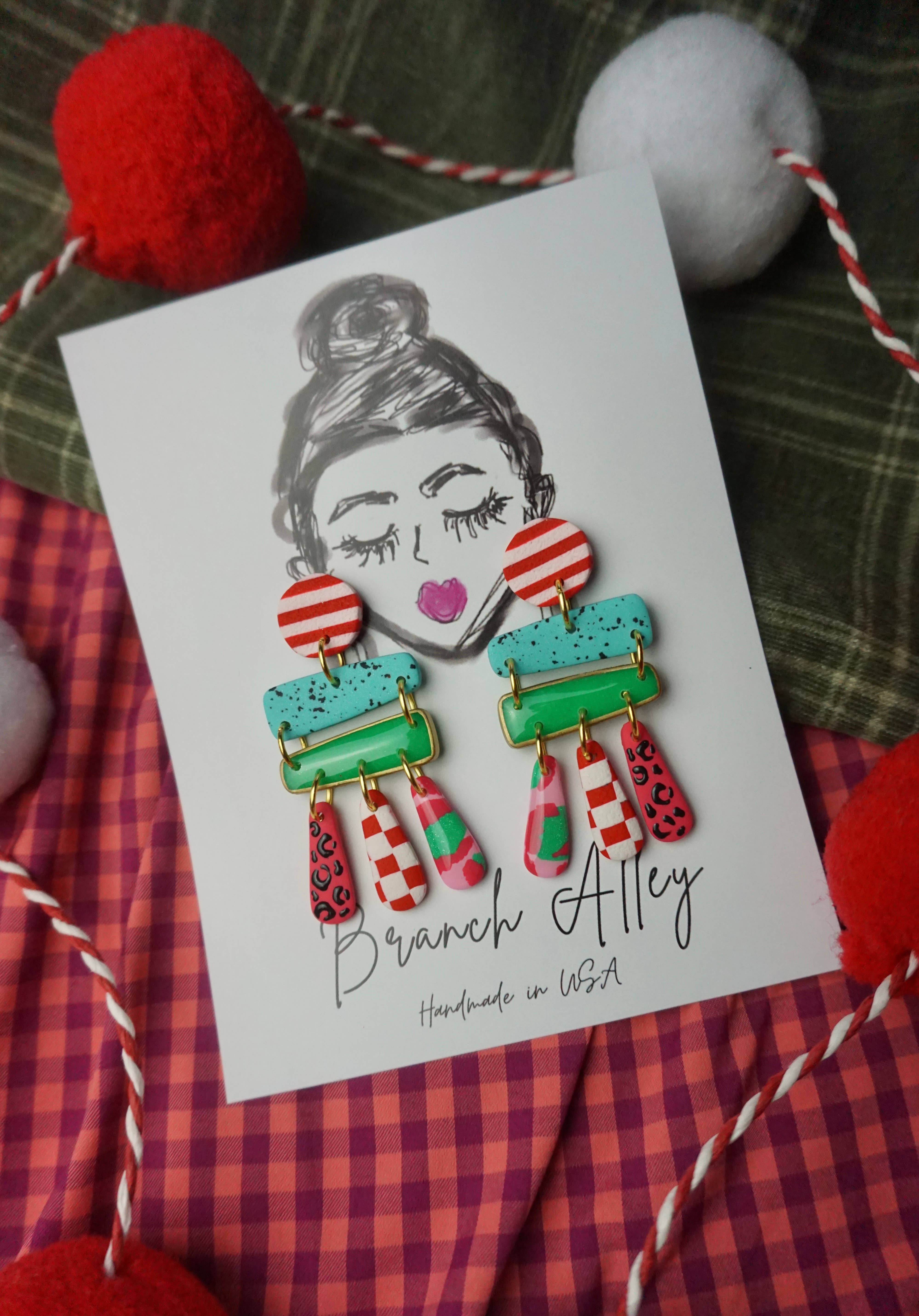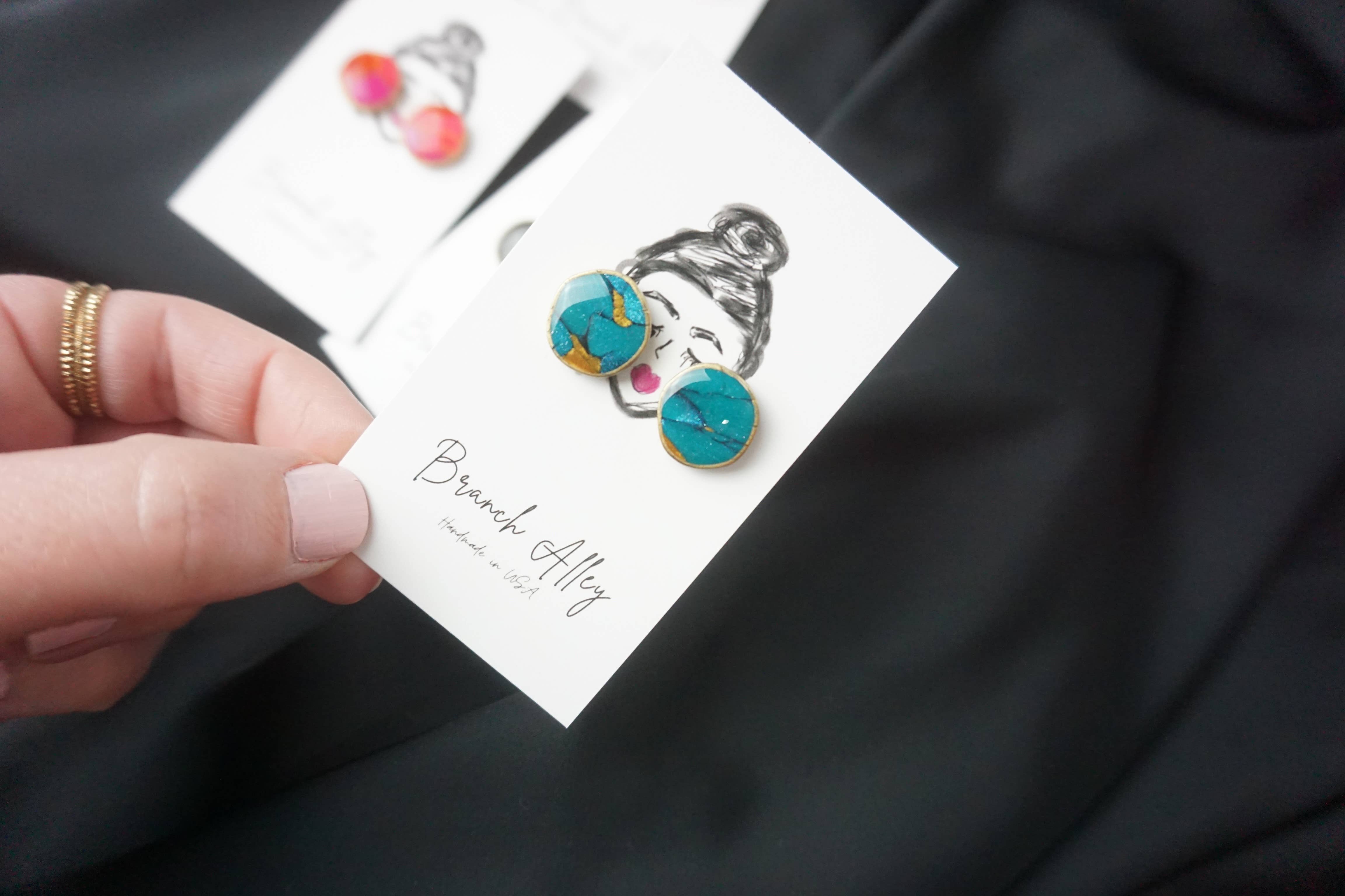 ”Outfits för dina öron.” Est. 2018. Branch Alley är namnet och att göra örhängen är mitt spel. När du vill lägga till ditt underbara utseende eller krydda din vanliga klädsel, du kan hitta ett örhänge för det här. Helt handgjorda av lera och andra råvaror, mina örhängen är små konstverk skapade i en långsam tillverkad och liten satsprocess. Alla inlägg är kirurgiskt rostfritt stål och andra fynd som krokar är guldpläterade och alltid nickelfria. Branch Alley är en kvinnas show av ensamstående mamma till 4, Cherish Wright, som skapade sin verksamhet från ett hörn av sitt lilla stadshem genom att göra roliga örhängen för att lysa upp hennes trötta ögon och mammabulle. (Anses fortfarande som en dold pärla på grund av ännu att delta i en mässa)