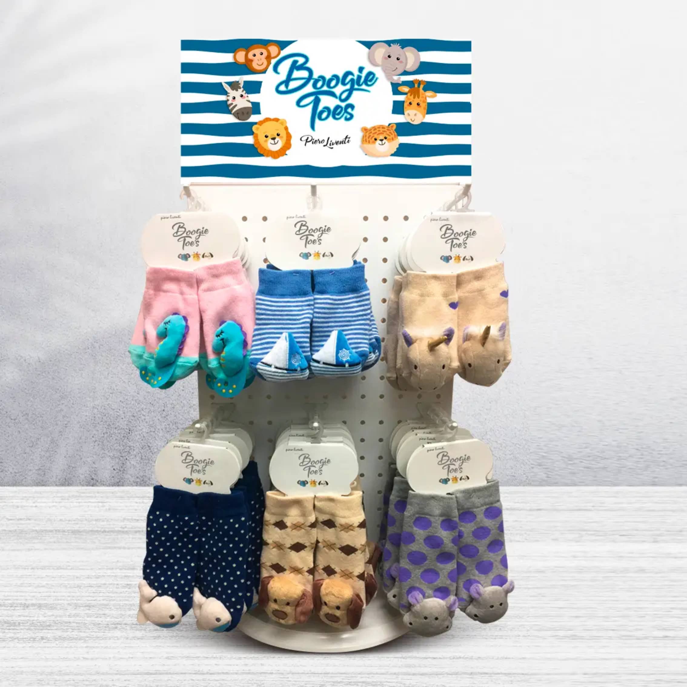 Bebisar hatar strumpor, men älskar Boogie Tår! Varje förälder vet att det är de små sakerna som verkligen gör skillnad när det gäller att hålla barn innehåll. Och det är precis vad som har gjort Liventi till en enastående plats i butiken baby/barnmode utrymme. Företagets flaggskeppslinje, Boogie Tår, har tagit barnklädindustrin med storm med strumpor som är lika bedårande som de är bärbara. I en rad fantastiska färger och komplett med säkra och säkert fastsatta små fyllda skallra leksaker, ser Boogie tår bra ut och håller sig put-allt medan underhållande barn som inte kan motstå att leka med fötterna! Grippy sulor är perfekta för nya sökroboter/vandrare och de mjuka skallror låter föräldrarna hålla koll på var unga upptäcktsresande går! Allt från valpar och kattungar till tigrar, björnar, hajar och till och med sport betyder att barn kommer att kräva Boogie Tår när det är dags att sätta på strumpor! Tillsammans med flera rader av unika och vackert utformade plagg är Boogie Tår skapelse av Joe Levy och Mercedes Benadivas, en man och hustrus team som startade sitt eget klädföretag i Venezuela för nästan 15 år sedan.