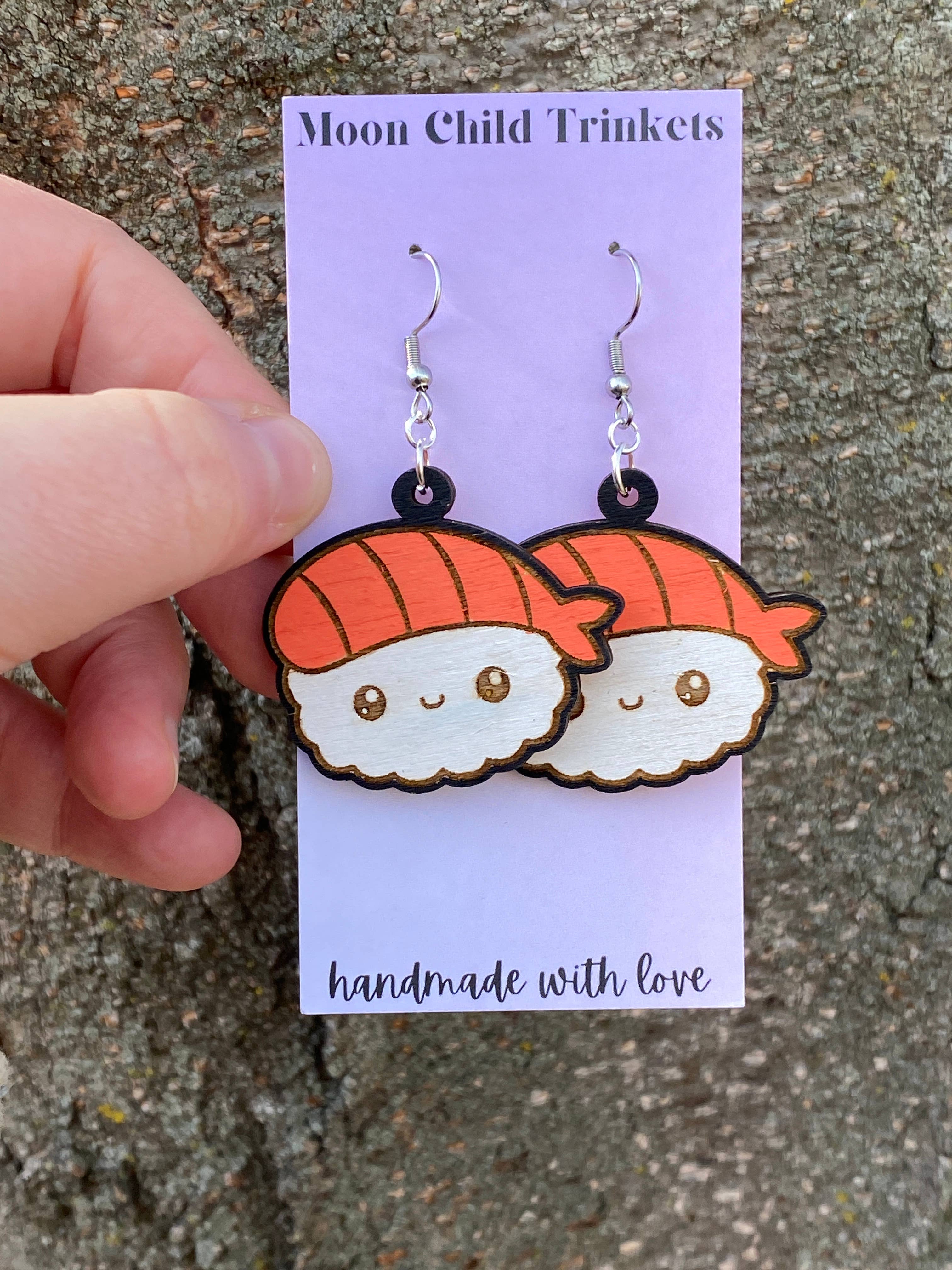 Moon Child Trinkets är ett hantverksmärke baserat i Wichita, Kansas, som specialiserar sig på handgjorda, lätta smycken som gör ett uttalande. Moon Child Trinkets kombinerar min passion för konst och popkultur för att skapa unika accessoarer. Varje smycke är noggrant handmålat på högkvalitativt trä eller akryl för att säkerställa hållbarhet och en lätt känsla.