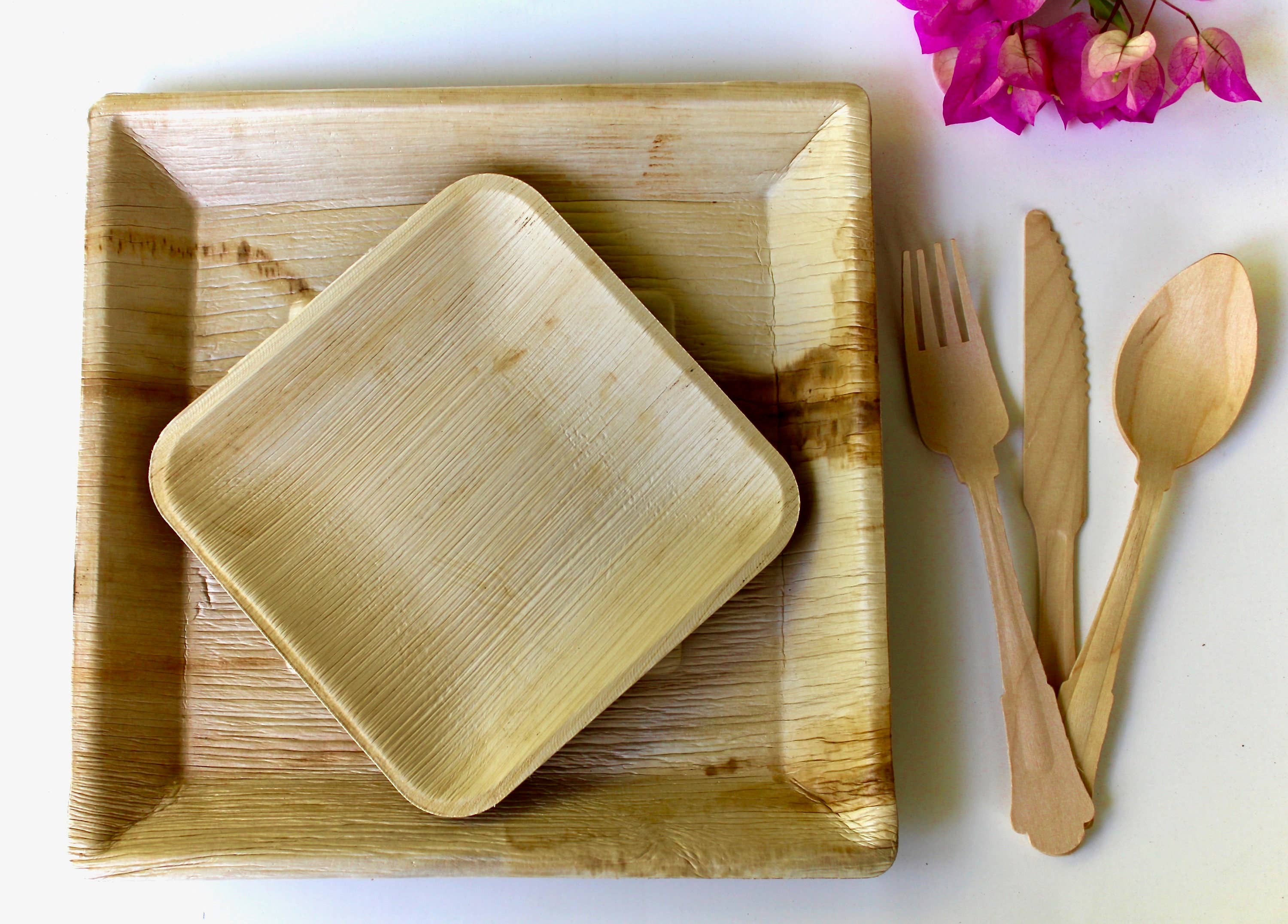 100% HELT NATURLIGT: Komposterbar och biologiskt nedbrytbar, tillräckligt stark för att bära en aptitretare en full måltid. Dessa tallrikar är idealiska för kaféer - Restauranger - Födelsedagsfester - inomhus- och utomhusevenemang. dessa miljövänliga tallrikar och skålar är ett perfekt miljövänligt alternativ till engångsservis. Rengjorda och ångbehandlade löv har inga kemikalier, färgämnen, lim eller vax! Naturlig palmlukt är normal att använda - inget behov av att tvätta SUPER ROBUST: Rena palmbladplattor och skålar är lätta och är tillräckligt tjocka för att inte läcka, sjunka eller gå sönder; och tillräckligt starka för att hantera tunga förrätter, soppor och sidor. Dessa tunga är vägen att gå! MIKROVÅGSUGN och UGNSSÄKER: Värm upp dina rester i mikrovågsugnen; Sätt dem i ugnen upp till 340 grader FESTFAVORIT: Förbättra naturligtvis ditt bröllop, födelsedag, campingtur, semestersamling, grill, picknick eller utomhusevenemang. Dessa EcoElegant bladskålar och tallrikar kommer säkert att förbättra alla tillfällen med sitt rustika trä/bambuutseende!