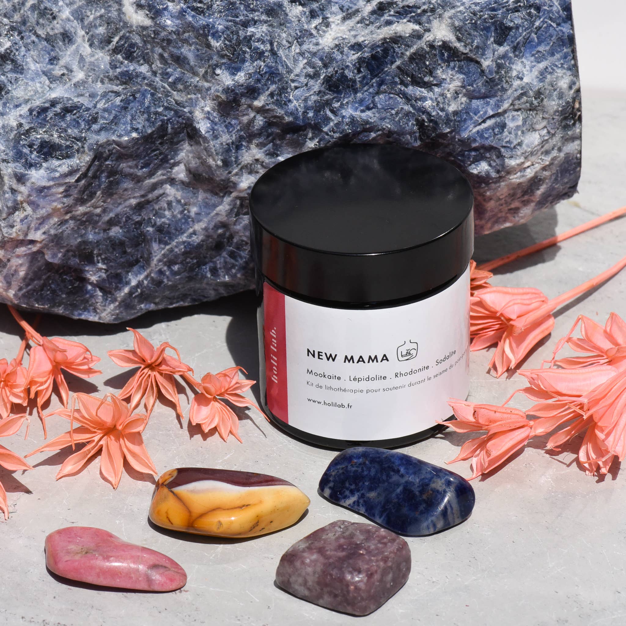 Holi lab. är ett ungt parisiskt varumärke skapat rue de Capri den 12: e av två outtömliga vänner på sina gemensamma passioner, inklusive resor och mineraler. I sitt holistiska laboratorium är huvudmålet att erbjuda ett mildt alternativ till samhällets olika förväntningar genom att dra inspiration från fakta i deras dagliga liv, som kvinna och framför allt som mamma. Holi Lab strävar efter att hjälpa, anpassa sig till din överlägsna varelse genom produkter och metoder, inspireras av vad du verkligen är — älskad, värdig och hel. Varje produkt tillverkas och skapas etiskt och ansvarsfullt i Paris i syfte att dela med så många som möjligt de fördelar som litoterapi och aromaterapi ger.