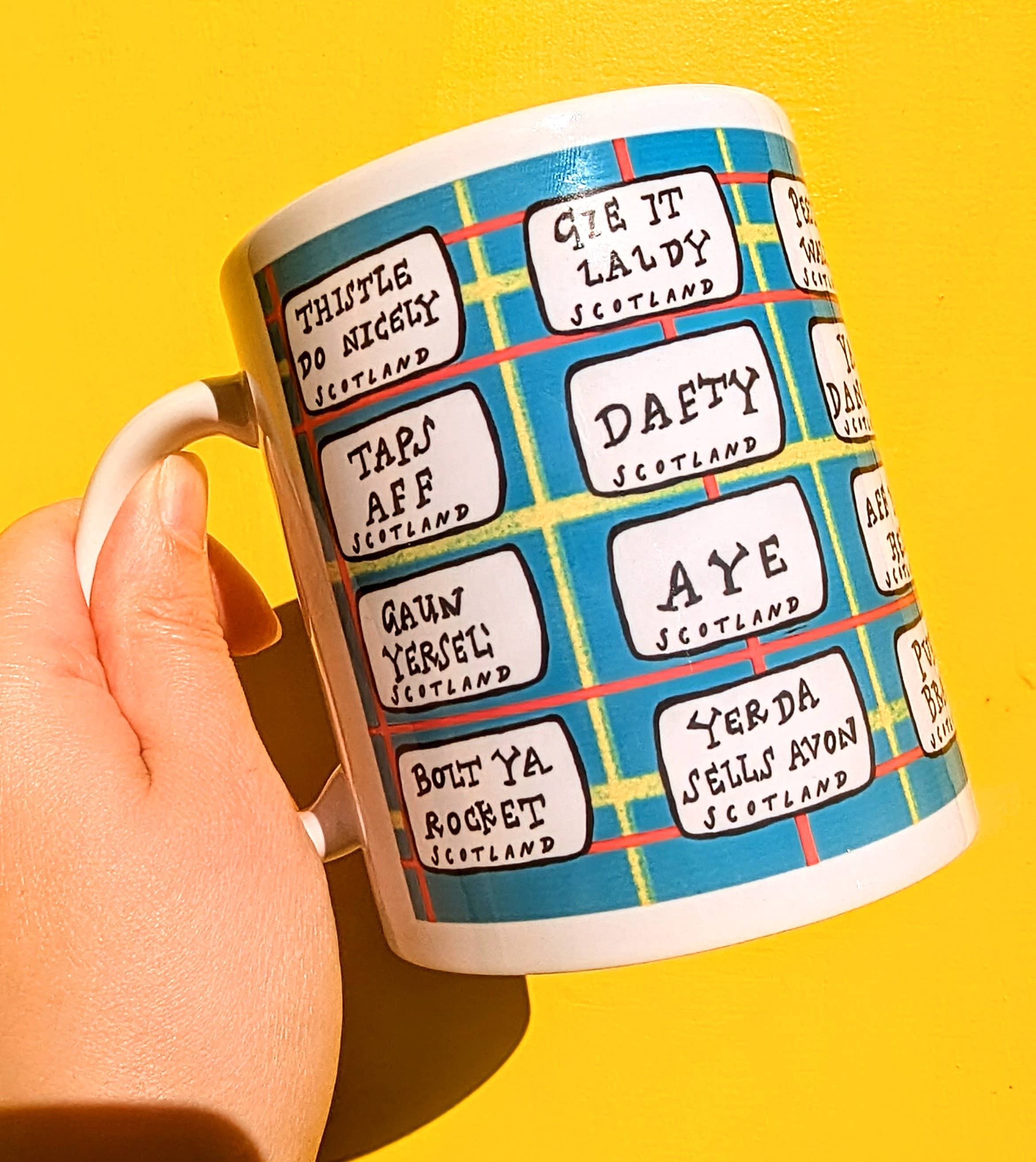 Claire Barclay Draws grundades 2014 och är ett gratulationskort och presentmärke som skapar verk inspirerade av några av Claires favoritelement i skotsk kultur - främst våra roliga konstigheter och ordstäv som översätter så bra till roliga, glada gratulationskort och gåvor med sin egen distinkta illustrativa stil! Claire skapar gratulationskort, konsttryck, tygpåsar, muggar, och underlägg och hoppas kunna fira att vara en ”Glasgow Girl” på ett roligt och levande sätt! Claires färgglada mönster produceras så hållbart som möjligt i Skottland och Storbritannien.