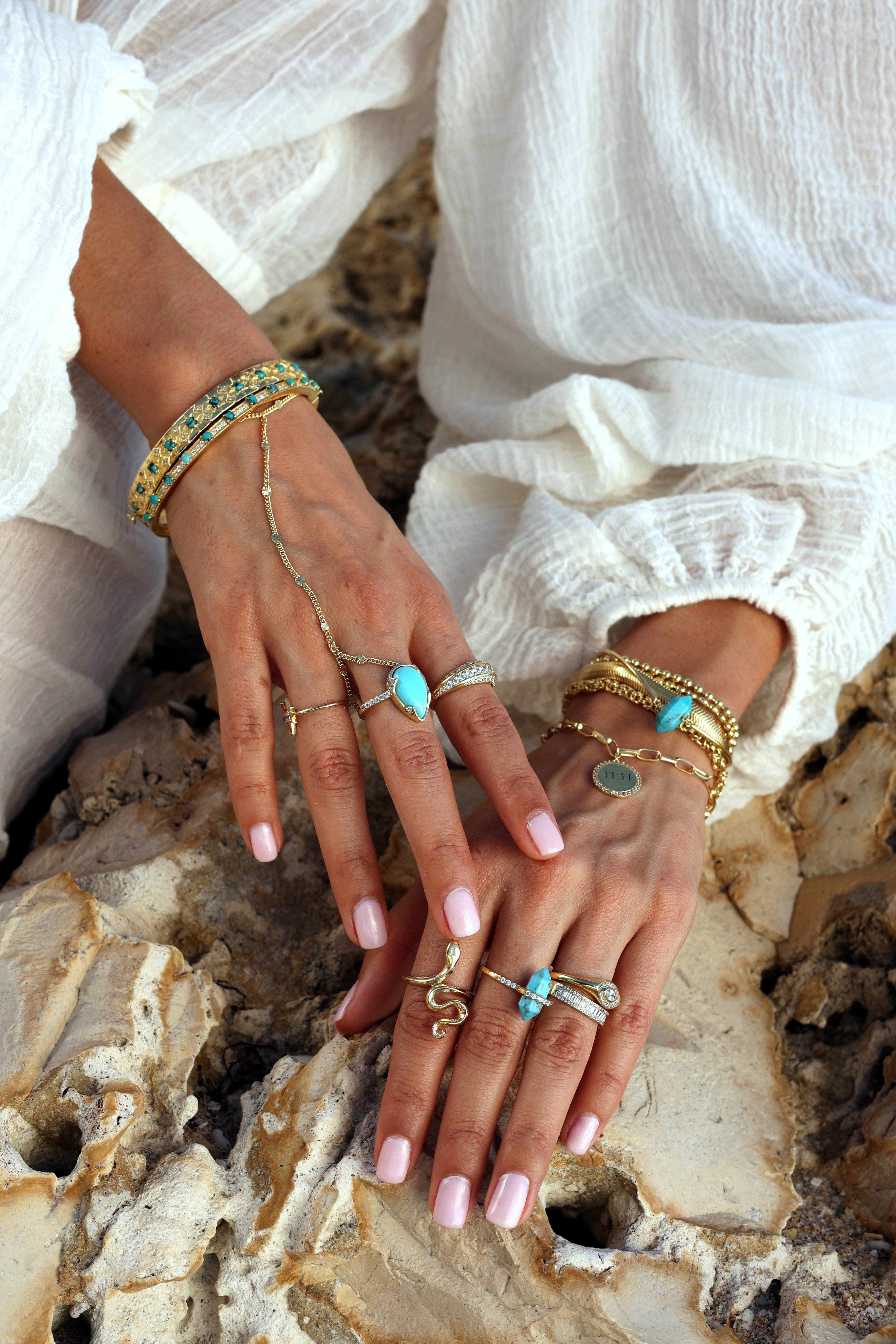 Magdalena, grundare av Nayla Jewelry, har alltid fascinerats av universums kraft och skönheten som omger världen. Som en ung modell, hon fick möjlighet att arbeta med några av de bästa designarna i Paris, New York, och Miami, vilket antände hennes vision för mode och kreativitet. Men det var hennes kärlek till naturliga ädelstenar och meningsfulla symboler som fick henne att starta Nayla Jewelry, ett varumärke som kombinerar skönhet, kreativitet och hållbarhet. Magdalenas vision för Nayla Jewelry är att skapa bitar som är unika och symboliska men ändå prisvärda. Hon anser att smycken borde vara mer än bara ett tillbehör, men en återspegling av ens personlighet och värderingar. Hennes passion för naturliga ädelstenar framgår av varje bit hon skapar, eftersom hon tror att varje sten har sin egen energi och mening. Nayla smycken är ett varumärke som handlar om att lägga till en touch av magi till moderna kvinnors liv. Varje bit av Nayla smycken är en återspegling av hennes kärlek till naturen och kraften i smycken, att också få kvinnor att känna sig som ”forntida gudinnor”.