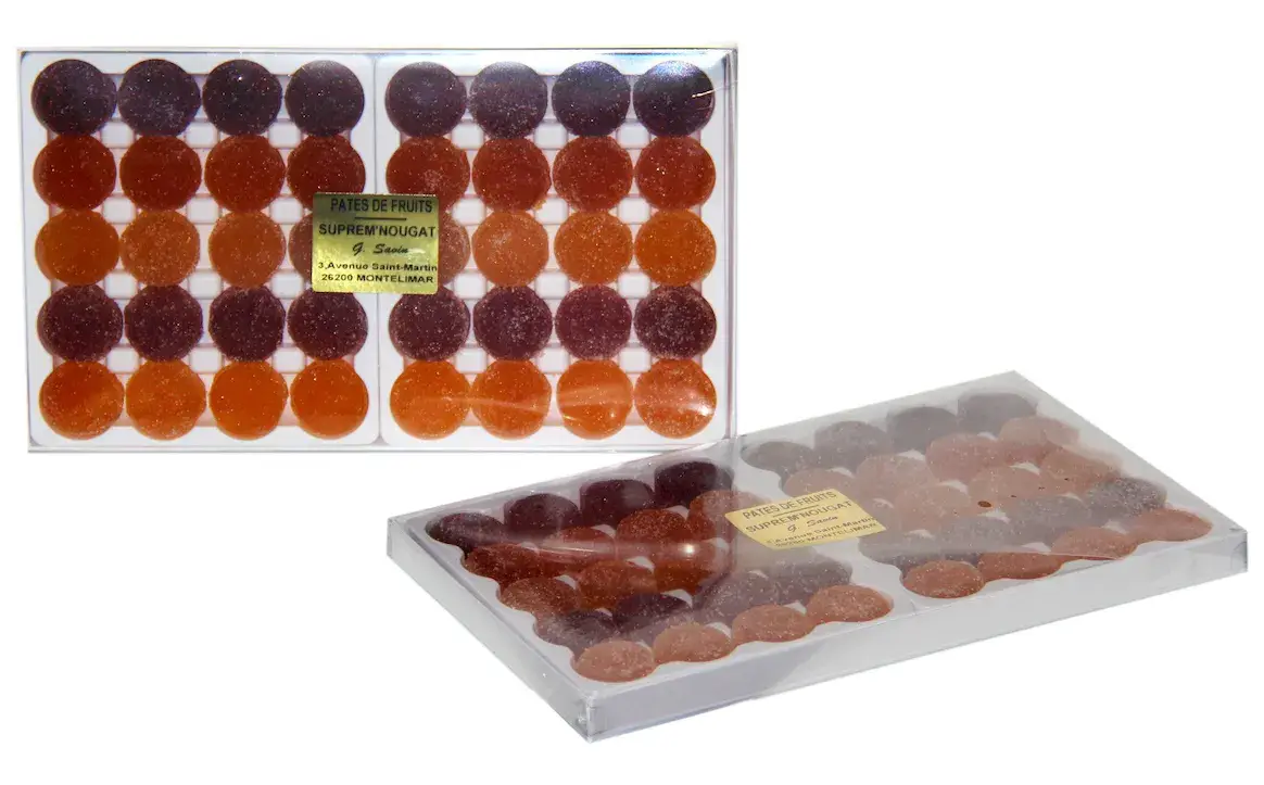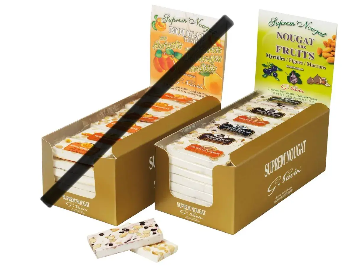 SUPREM' NOUGAT, G. Savin, är en lugn och dynamisk SME, mycket rotad lokalt och stolt över att kunna erbjuda en avancerad hantverksprodukt som den berömda Montélimar nougat. Det drivs av Ghislaine Savin och hennes två barn Romain och Julien MONTERO. De hanterar cirka tjugo anställda. På tio år fördubblade de företagets omsättning. Varje år producerar de mer än 120 ton nougat från Montélimar och Calissons. SUPREM'NOUGAT finns nu i konditorier, konditorier, delikatesser och regionala produktbutiker. Det började komma in på detaljhandelsmarknaden när det accepterade satsningen på kvalitet. Självklart närvarande i den provensalska traditionen med 13 juldesserter, kommer vår vita nougat, vår svarta nougat och våra calissons att glädja dig under årets slut. God Jul!