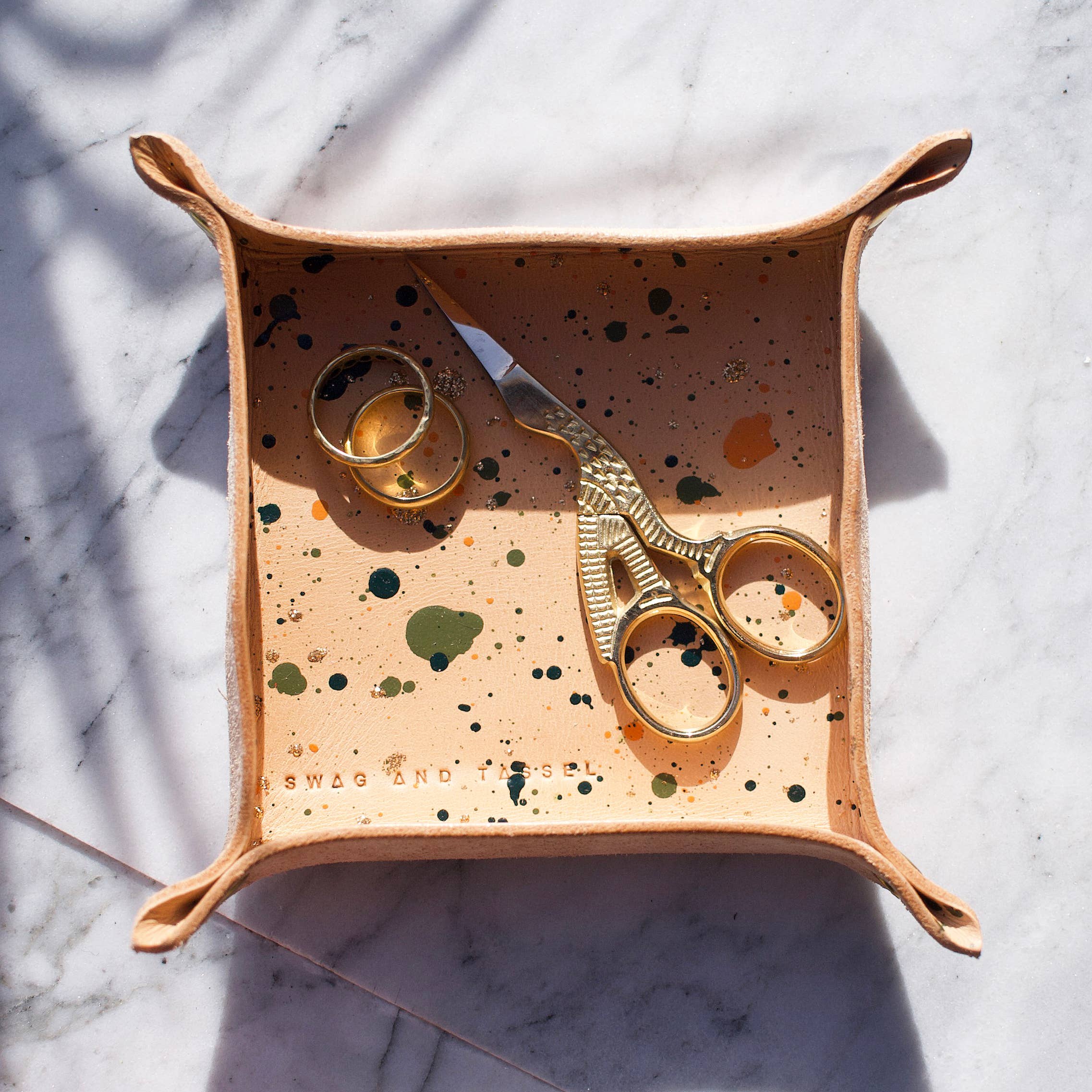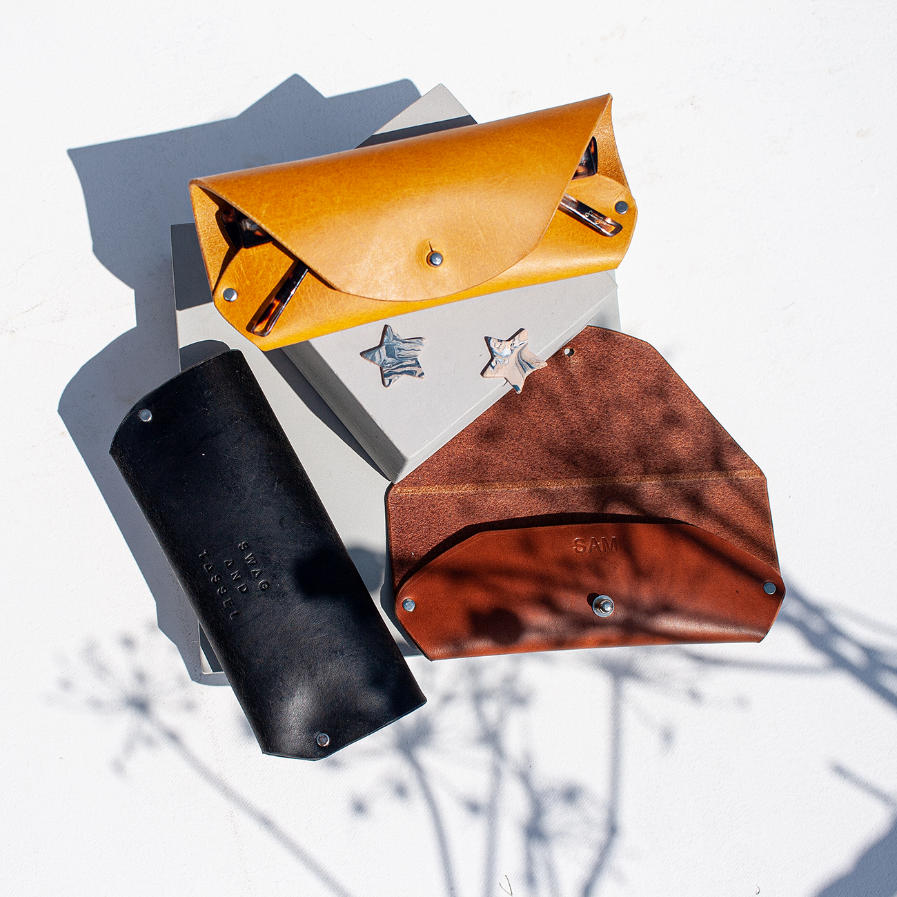 Lyxiga lädertillbehör. Den walesiska designern Sophie Curtis började sin resa 2012 med att göra mattväskor. Att använda materialens rika historia, som mattor handvävda av stammar i norra Persien Sophies första samlingar, var en spännande sammanställning av gammalt och nytt. Efter framgången på British Craft Trade Fair 2013 listar Swag och Tassel bland sina återförsäljare British Museum i London. Swag och Tofs designar och handhantverk nu en rad lyxiga men prisvärda små läderaccessoarer och presenter. Kärnan i vår designetik är hantverks- och kvalitetsmaterial. Alla våra produkter är designade, mönsterskurna och konstruerade i vår lilla studio i Pembrokeshire, Wales. Ingenting kommer ut eller görs i en hast, vilket innebär att kvaliteten aldrig äventyras. Handsömmar används för styrka och hållbarhet, vilket skapar bitar som är byggda för att hålla. Uppmärksamhet på detaljer är viktigt, från bokmärkena till påsarna bränner vi försiktigt varje kant lämnar dem släta och vackert färdiga. Lädret vi använder är alltid vegetabiliskt garvat. Detta innebär att den är garvad med naturliga vegetabiliska extrakt som trä, barkfrukt, rötter och löv. Det är miljövänligt att inte använda några hårda kemikalier. Det är en långsam process som tar upp till sex månader. Slutresultatet är ett vackert läder gjort för att hålla. Våra förpackningar tillverkas där så är möjligt med hjälp av återvunna och återvinningsbara material för att undvika material som är skadliga för miljön.