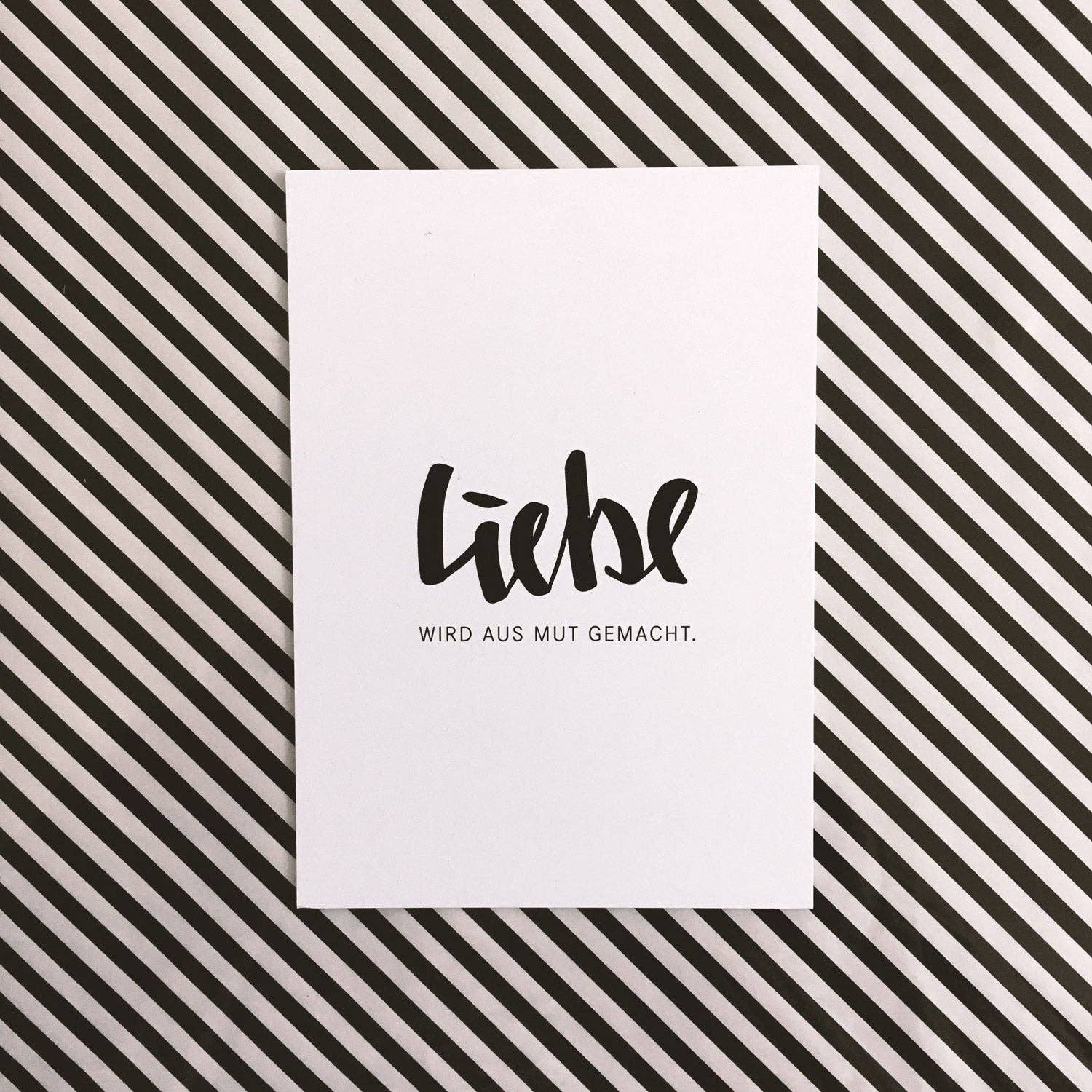LOVE IS THE NEW BLACK Förälska dig i papper Finaste vykort och tryck, anteckningsböcker, affischer och accessoarer. Med högsta krav på papper och typografi. Märket är ett projekt av den Stuttgart-baserade grafiska byrån BUERO MATTSCHWARZ och står för minimalistisk, reducerad design. Motiven ger tydliga budskap, kort för speciella tillfällen utan kitsch och statement-kort utan dåliga skämt. Så bra att man kanske inte ens vill skicka dem utan istället rama in dem och hänga dem på sin egen vägg. "Vi älskar svart. Och vitt. Vi älskar att säga tack, hej och jag älskar dig. Vi säger inte gärna adjö. Men om vi gör det, vill vi åtminstone att det ser bra ut." Alla produkter produceras regionalt och CO2-neutralt.