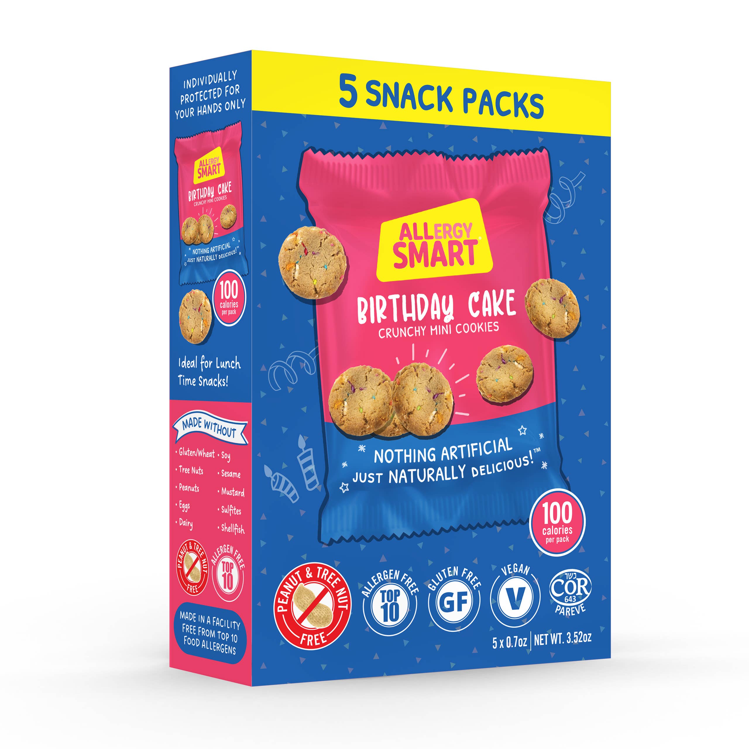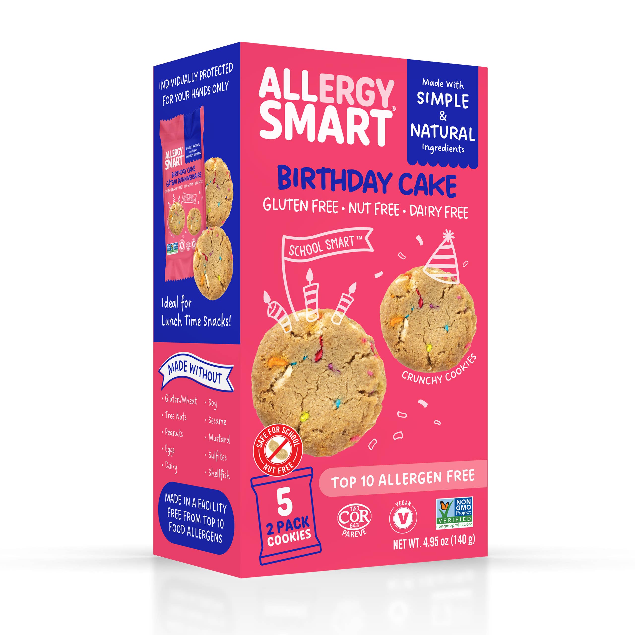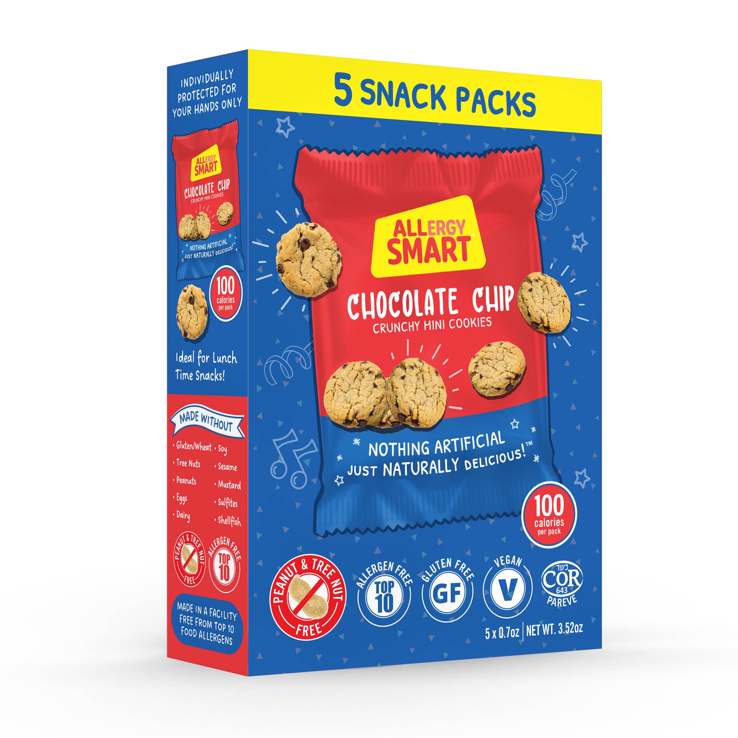 På Allergy Smart har vi utvecklat en serie läckra bakverk samtidigt som vi fokuserar på den växande oro och behovet av en allergisäker produkt på marknaden. Vår produkt tar upp många problem och kommer att tillfredsställa dina konsumenters behov. Vårt varumärke, Allergy Smart, säger allt... vilket gör det enkelt för kunder att hitta sin lösning när de handlar i din butik! Alla våra produkter är fria från de 10 bästa livsmedelsallergenerna: Gluten, ägg, mejeri, trädnötter, jordnötter, soja, sesam, sulfiter, senap och skaldjur. Våra allergivänliga snacks går utöver helt enkelt glutenfritt eller mutterfritt, Vi har utvecklat en linje som en butik kan erbjuda som en enda mellanmålslösning för alla allergiker. Våra produkter är också alla certifierade icke-GMO, Kosher och Vegan, använder bara rena, naturliga ingredienser som finns i alla livsmedelsbutiker. Alla våra snacks tillhandahålls i en mellanmålsförpackning med en servering för att förhindra eventuella problem med potentiell förorening. Turley Allergy-Safe förpackning endast för dina händer. Våra förpackningar säkerställer också att våra produkter är färska och smakar läckra samtidigt som de ger samma fantastiska konsistens som traditionella kakor. Slutligen, de gör en bra skola, kontor, resa, eller on-the-go mellanmål alternativ. Eftersom de är säkra, naturliga och läckra, våra produkter åtnjuts av ALLA!