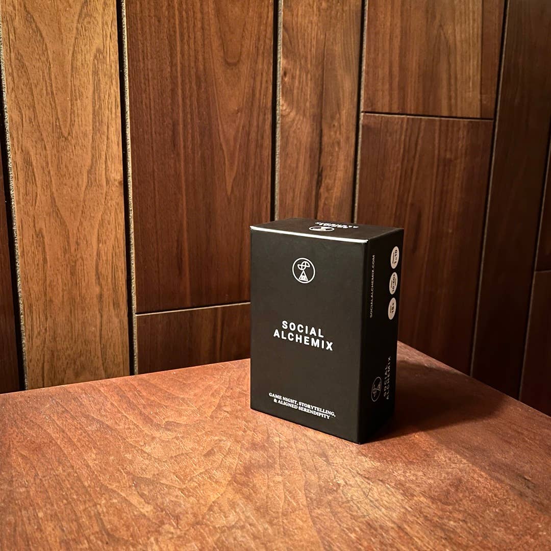 Alkemin av en fantastisk fest börjar och slutar med otrolig konversation. Behovet av Social Alchemix föddes för många år sedan. När mobiltelefoner smyg in i vårt dagliga liv blev vi nostalgisk i en tid då de inte kom i vägen för ett bra samtal. Allt vi behöver är en ny fokuserad tillåtelse att sätta ner dem, hoppa över småprat, och komma in i den del av partier där vi alla känner oss djupt kopplade till varandra. Social Alchemix Reimagines Game Night med sina två vackra däck av Alkemiska kort och en bok med frågor. Vi använder magin i de nätter där vi lär känna våra bästa vänner ännu bättre, och vi förvandlar en främling till en ny väghund. Vad mer kan du begära?
