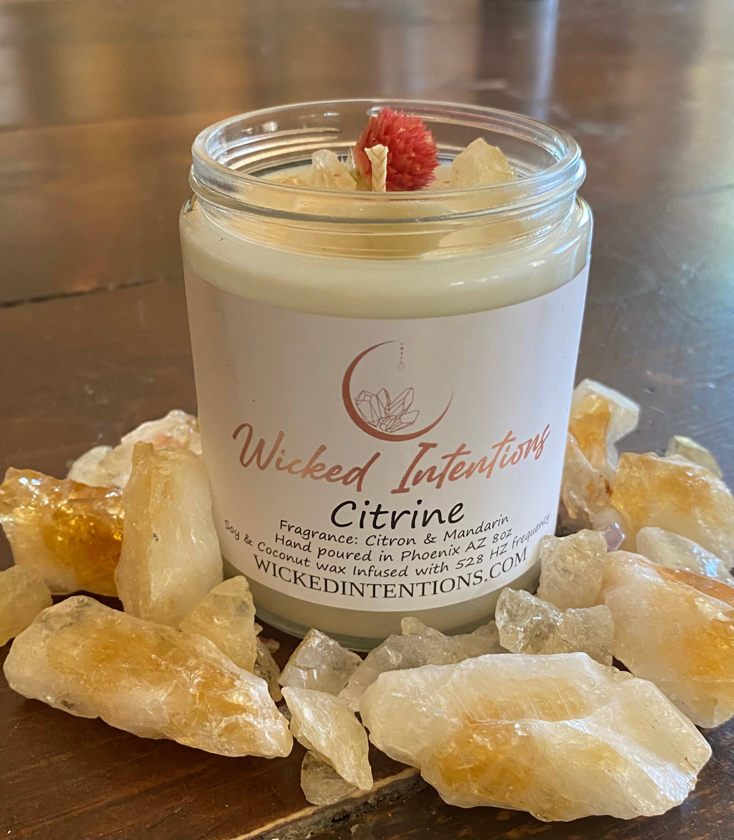 Wicked Intentions är ett familjeägt och drivet företag. Med avsikten att göra specialljus för vårt hem upptäckte vi snart att vi kunde dela våra skapelser med resten av världen. En hög prioritet på att använda kvalitetsingredienser i alla produkter vi tillverkar är en stapelvara i Wicked Intentions. Vårt fokus är att endast använda vax, doft, kristaller, örter och andra ingredienser som är etiskt anskaffade och miljövänliga och hållbara. -Handgjord i mikropartier -Tillverkad i Phoenix Arizona. -Kärleksfullt tillverkad och hälld i behållare som är återvinningsbara och återanvändbara. -Våra dofter är rena dofter med naturliga eteriska oljor. - Inga ftalater. -Färdig med blyfri bomullsveke. Vi tror att vår planet, människor och universum är fyllda med vacker magi och vi hoppas att vi kan ge dig lite av det med våra produkter.