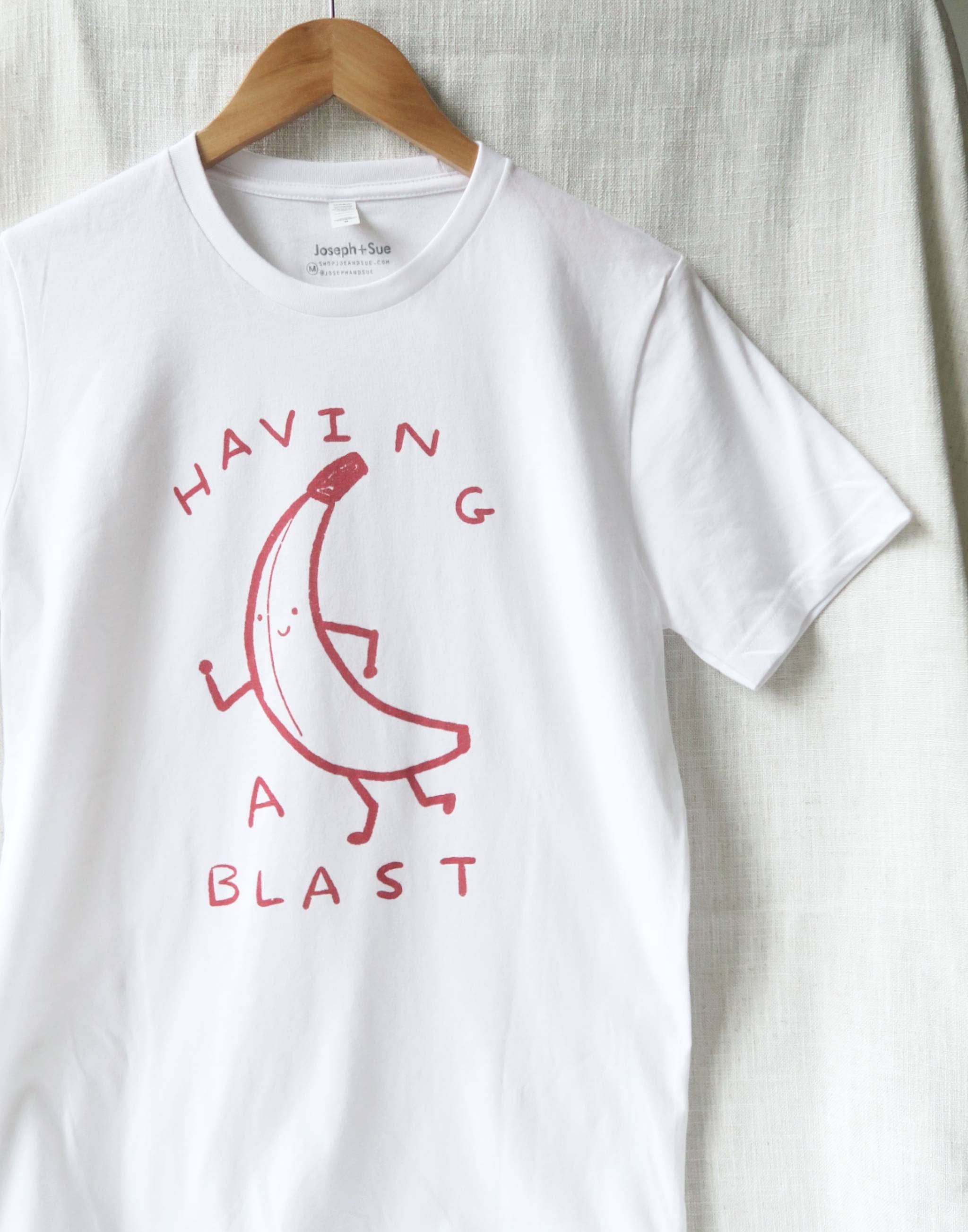 Joseph + Sue skapar tees för vuxna och barn, med originalkonstverk av Anabel Choi. Teckningar är inspirerade av platser hon varit och människor hon älskat, som täcker popkultur, musik, och 90-talet för att nämna några. Varje artikel trycks för hand, med vattenbaserade, biologiskt nedbrytbara bläck, vilket gör varje tröja och tee supermjuk vid beröring. J+S arbetar endast med tillverkare som är WRAP-certifierade och placerar människor och hållbarhet som högsta prioritet.