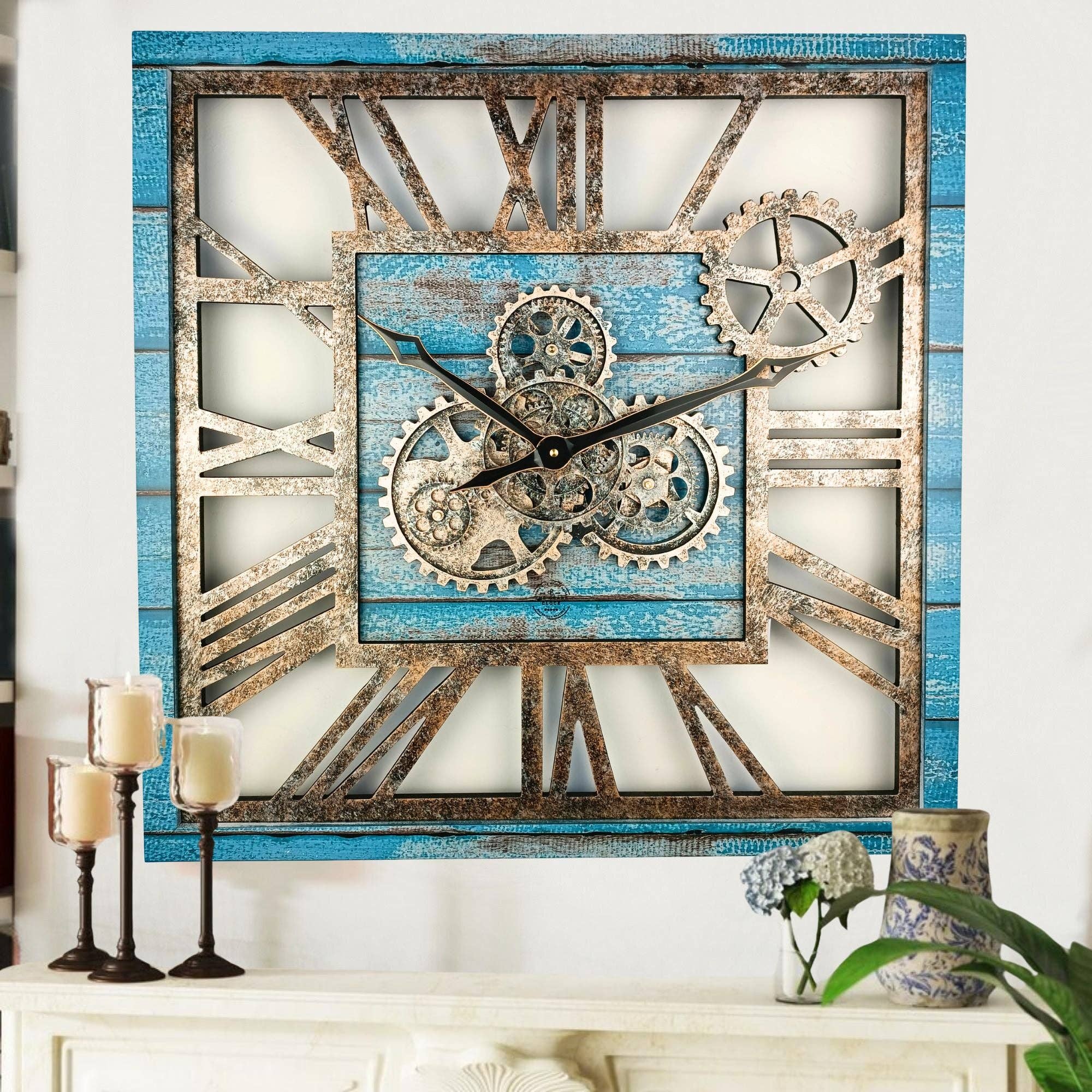 Gears Clock är specialiserad på väggklocka med riktiga rörliga växlar, den nya stilen i väggklockindustrin vi har återuppfunnit denna stil och skapat unik klockfärg och textur, som gör denna väggklocka också till en väggkonstdekoration Många färger tillgängliga, liksom många storlekar tillgängliga och de rörliga kugghjulen gör denna klocka till ett levande element i miljön!!