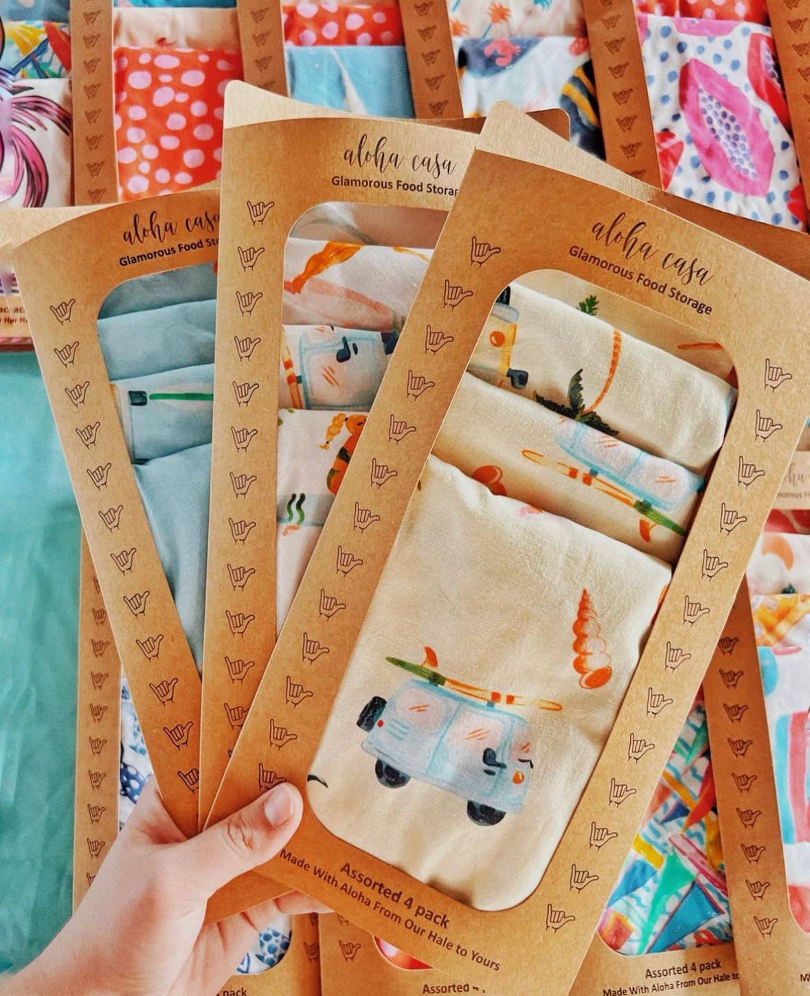 När Danielle Scherman från Kailua och Javier Jarrin från Ecuador gifte sig, Aloha de Casa föddes. Vårt företag är en lokal kama'aina-verksamhet på Hawaii. Våra produkter är ett uttryck för vår kärlek till miljön och en hållbar lösning. De är kryddade med våra spanska och Hawaii-rötter som går långt och djupt från Hawaii till New York till Ecuador. Var och en av våra produkter är hemgjorda och handskapade med precision och kärlek av Javiers ecuadorianska mamma som är en begåvad sömmerska. Hawaii är känt som en potluckkultur - en smältdegel av raser och familjer som sammanflätas som Ohana där varje helg firas med sammankomster kring mat. Vår passion är underhållande, festliga sammankomster med god mat, massor av skratt och kul. Vi har en passion för underhållande, samla familj och vänner och festliga sammankomster med god mat, massor av skratt och kul. Vi hoppas att Aloha de Casa ger dig ett leende när du använder våra produkter, och en känsla av vår kärlek till Hawaii.