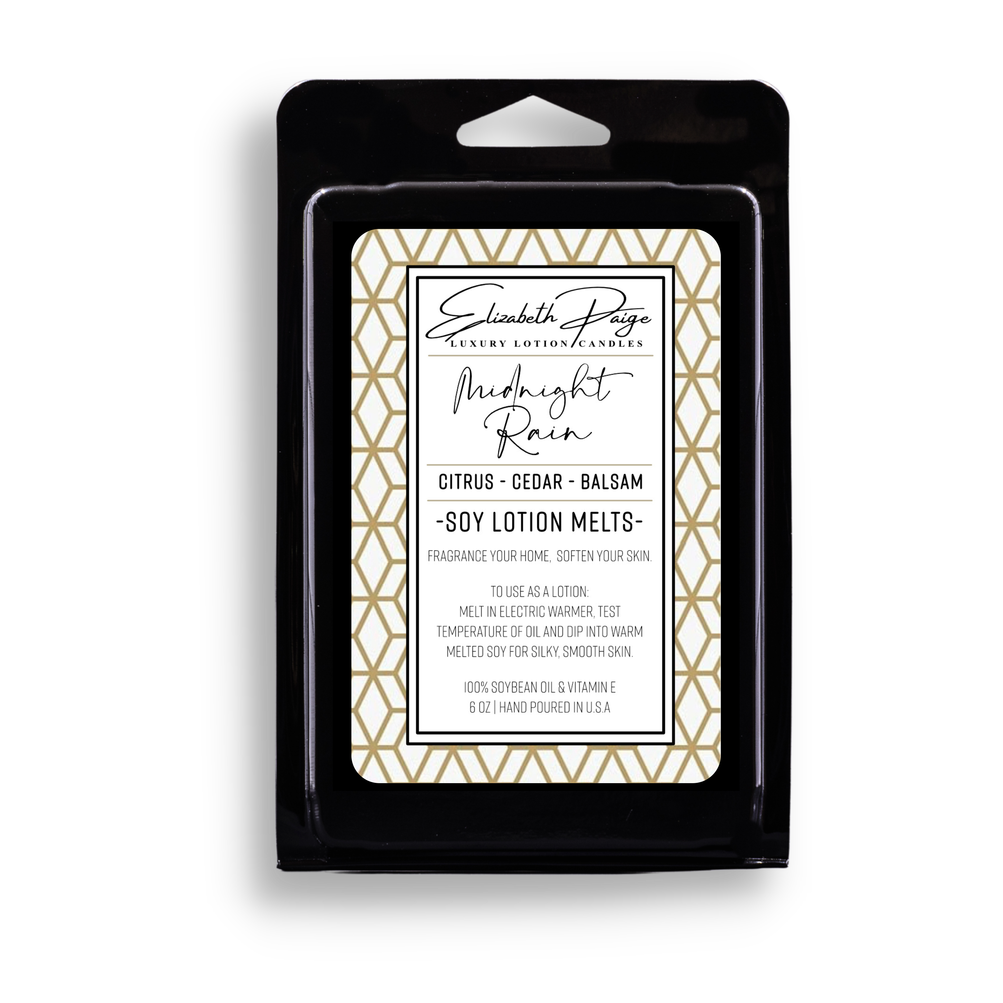 Elizabeth Paige Candles är den ursprungliga tillverkaren av sojalotionsljus! Vi har handgjutit lyxiga lotionsljus i över 15 år! Ljus från Elizabeth Paige är inte bara renbrännande och långvariga utan erbjuder också en "två-för-en"-upplevelse! Njut av den vackra doften av ditt ljus när det smälter och "ta ett dopp" i den varma (inte heta!) smälta sojabönoljan för användning på din hud som en lyxig kroppsfuktighetskräm. Våra ljus lämnar ditt hem väldoftande och din hud mjuk och silkeslen. Naturligt rika på vitamin E är våra ljus fantastiska för psoriasis, eksem, insektsbett, solbränna, ärr, allmänt torr hud eller massageolja - i princip allt från kala huvuden till lilltår! Dessutom erbjuder vi låglösa sojalotionssmältor för användning i elektriska värmare! Tack för att du besöker vår butik - det är vår glädje att tjäna dig!