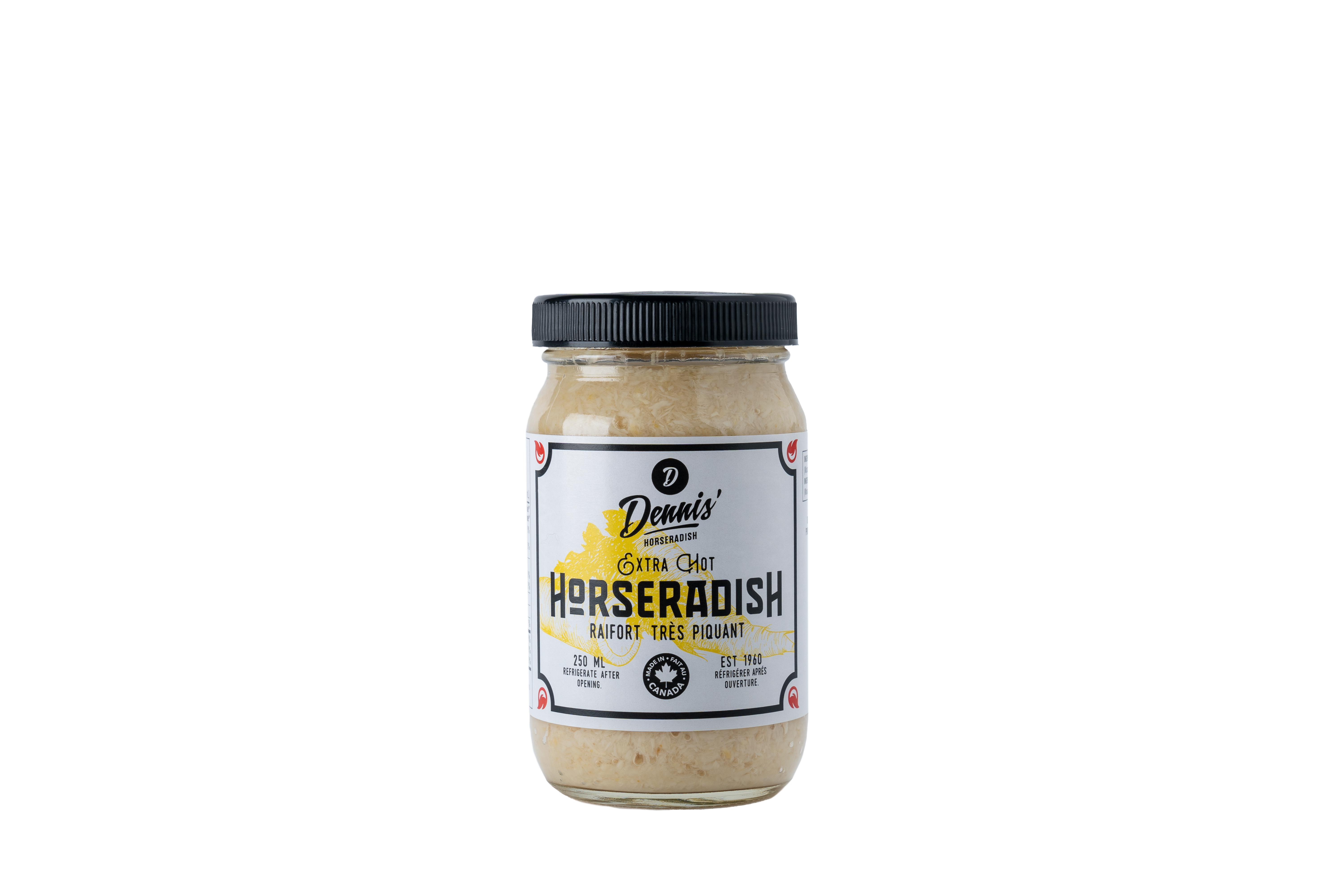 Dennis pepparrot. Premie, Liten sats Pepparrot. Sedan 1960. På Dennis” kontrollerar vi hela processen från slut till slut, så att endast de finaste roten och ingredienserna hamnar i allt vi gör. Vi skördar, bearbetar, slipar, fyller och packar allt själva för att garantera att vi bara producerar den hetaste och bästa pepparroten i Nordamerika. Huvudkontoret ligger i Delhi, hjärtat av Ontario"s Garden i Kanada, allt förblir lokalt. Root odlas nu av Lyndsay Menich & Drew Patterson i närliggande Teeterville, som är engagerade i etiskt jordbruk och kontinuerlig innovation. Alla våra produkter är helt naturliga och kosher. Varumärket och produktportföljen har vuxit med tiden, medan fokus på excellens, med lite kant, aldrig har vacklat.
