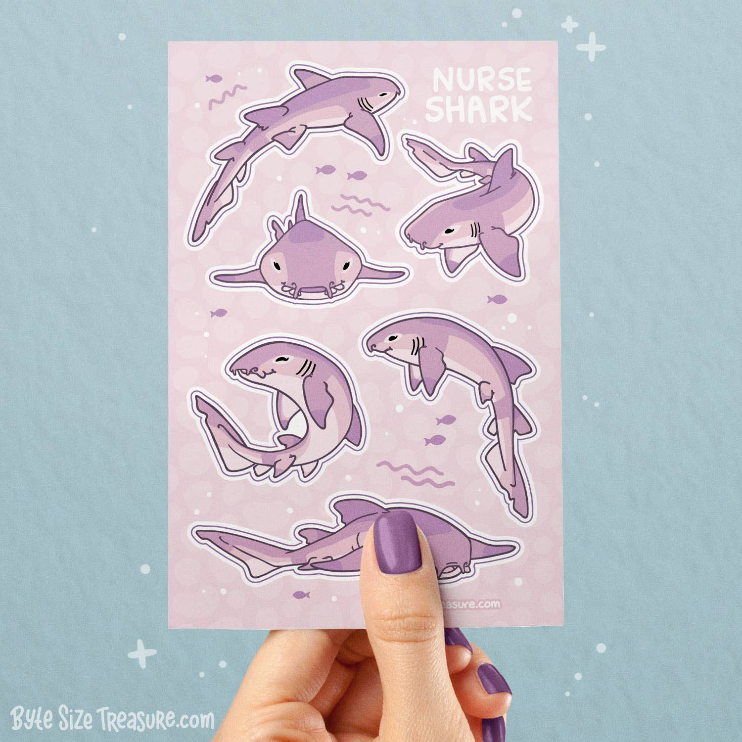 Byte Size Treasure är ett litet företag som erbjuder originalvaror som porträtterar riktiga djur på ett sött och färgstarkt sätt. Inspirerad av den underbara världen omkring oss har jag fokuserat min konst på underrepresenterade, missförstådda och hotade vattenlevande djur. Målet med Byte Size Treasure är att utbilda, främja uppskattning och betona vikten av havets bevarande. För att skydda vår planet för kommande generationer använder jag återvunnet, hållbart och miljövänligt förpackningsmaterial för att minska min miljöpåverkan.