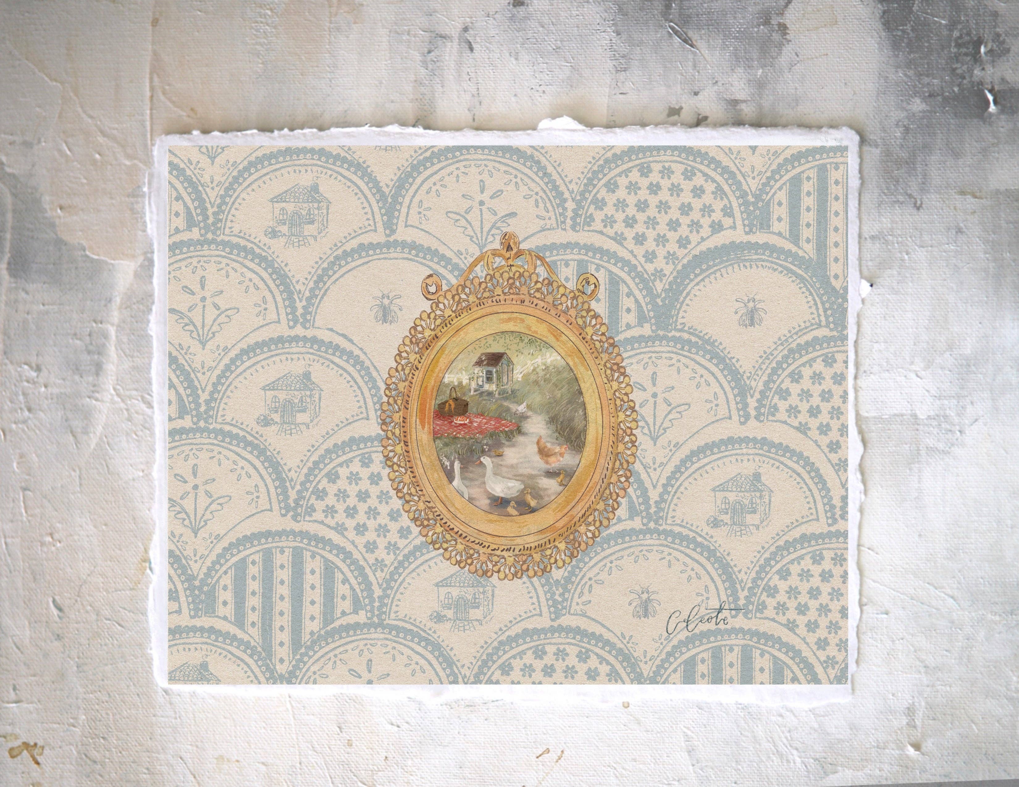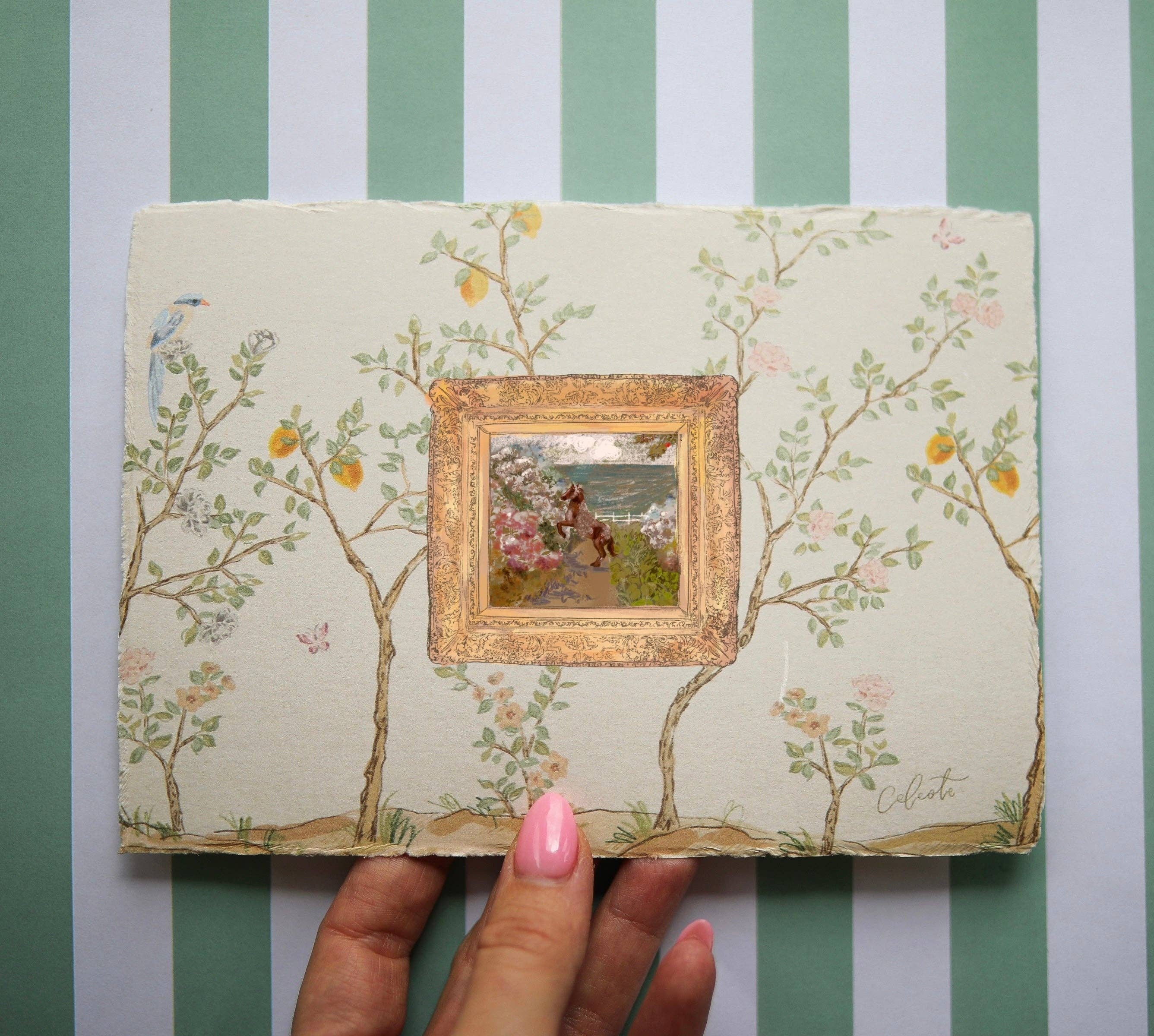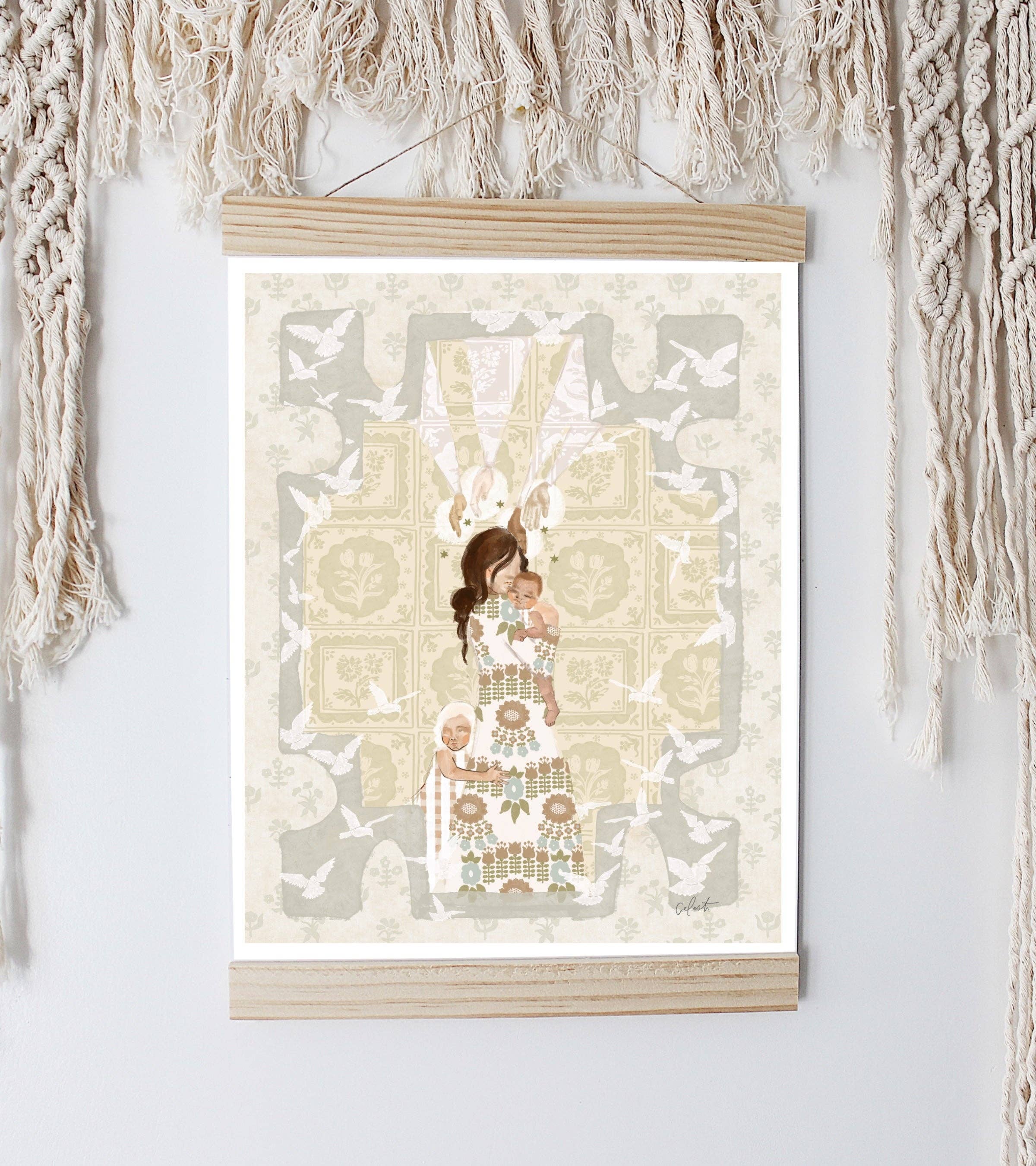 Celeste Clark är en konstnär baserad på landsbygden i Dallas, Texas. Vi säljer gallerikvalitetsutskrifter av originalkonstverk, tillgängliga i flera pappersalternativ och storlekar. Liten storlek = 5x7" (storlekar varierar på grund av rivna kanter/handgjort papper). Klassisk storlek = 8,5x11" arkivstrukturerat papper. Stor storlek = 11x14" bomullskanvasmaterial.
