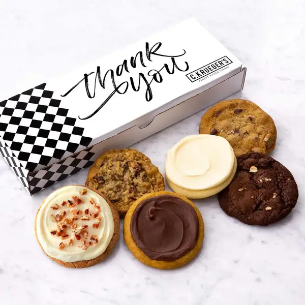 Gourmetkakor från C.Kruegers finaste bakverk Cookie-maven, Cheryl Krueger, grundade C.Krueger's Finest Baked Goods 2018, när hennes kärlek till bakning förde henne ur pension. Företaget har tillverkat gourmetkakor och exceptionella bakverk sedan dess! Varje produkt tillverkas i små satser med de finaste ingredienserna och inga tillsatta konserveringsmedel. De bakade varorna förpackas individuellt för säkerhet och bekvämlighet, vilket gör dem till ett perfekt presentalternativ. C.Kruegers sortiment av prisbelönta presenter är perfekt för familj, vänner, anställda eller till och med sprida lite glädje till dina favoritkunder. Letar du efter något mer anpassat? Alla C.Kruegers affärsgåvor är helt anpassningsbara! Visa upp ditt företag med vackert märkta presentförpackningar eller anpassade kakomslag, inga konstverksinställningar eller provavgifter krävs. Inkludera ett bilagg som ett visitkort, hälsning, eller marknadsföringsmaterial utan extra kostnad. C.Krueger kan ta hand om beställningar av alla storlekar! Du kan också beställa kakor per fodral utan presentförpackning. Från grossistmöjligheter till något sött för dig själv, välj C.Krueger's för dina gourmetkakbehov! Prover tillgängliga - Fråga bara!! VÄNLIGEN NOTERA: Våra gourmetbakverk är konserveringsfria. Njut av inom 5 dagar efter leverans eller frys omedelbart i upp till 6 månader.