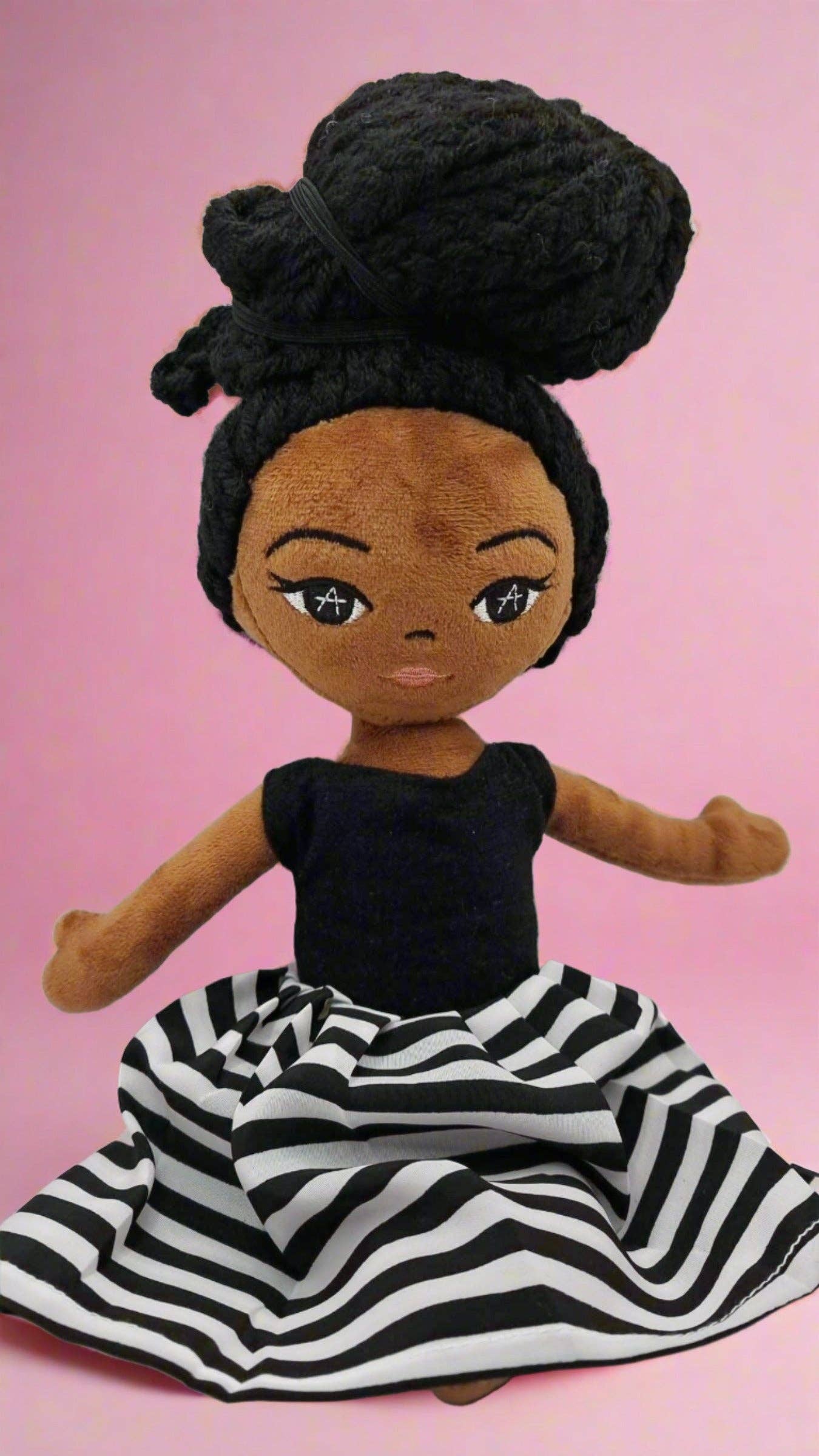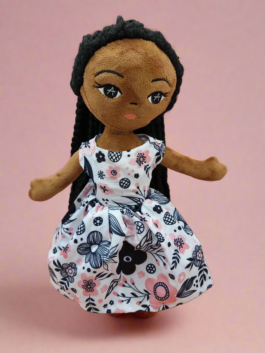 Mitt namn är Temi och jag startade ”Amaris och Chaya Handmade Dolls” på grund av min lilla flicka Amaris. Jag vill att min lilla flicka och så många andra där ute ska ha en släktklenod docka som representerar henne när hon växer och spelar fantasifullt. Alla barn ska leka med svarta dockor för att uppmuntra mångfald. Det är lätt att få sina praktiska vita dockor... som bara tas för givet. Men bruna dockor, svarta dockor och etniska dockor lämnas ofta på hyllan, orörd och ignoreras. Det här är tragiskt. Mitt uppdrag är att få dessa svarta och bruna och skiftande dockor i händerna på våra barn och hjälpa dem att utforska sin fantasi och skapa berättelser som inkluderar dockor av alla färger, så att de vet att alla räknas, oavsett hudskuggan. Dockor och leksaker spelar en stor roll i att forma ett barns barndom. Även om det bara är att spela, om du verkligen lyssnar på dem, kan du höra hur de ser på världen, vad de tänker, hur de känner och ser dem forma och omföreställa sig världen omkring dem. Det är på grund av detta, och mitt behov av att Amaris ser sig själv som vacker med sin melaninrika hudton, som jag gjorde dessa dockor. Jag hoppas att alla svarta, bruna eller vita, som har barn, kommer att inse att helt enkelt ha och leka med en älskad svart docka tillsammans med sina andra dockor, kan hjälpa ett barn att glädja sig i firandet av andra som också är svarta i verkliga livet. Låt oss utbilda våra barn att fira våra meningsskiljaktigheter.
