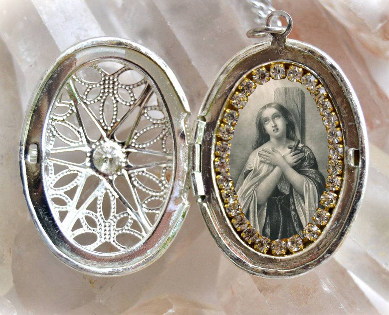 Maria Santíssima handlar om att berätta din tro och hängivenhet genom vackra bitar av personliga handgjorda smycken. Varje smycke är handgjord med en speciell betydelse och energi avsedd att vara en del av någons speciella historia. Maria Santíssima varumärke är sigillet av tro och skydd som alltid ska vara med dig, vars syfte är att täcka fler människor och nationer med en kanal av ekumenisk andlighet. De flesta av mina pjäser är en av ett slag eller gjorda i en körning av mycket små utgåvor. Jag älskar också anpassade order, så kontakta mig gärna! Jag hoppas att du kommer att älska dina Maria Santíssima smycken lika mycket som jag älskar att skapa det. Tack för att du besöker! Njut:)