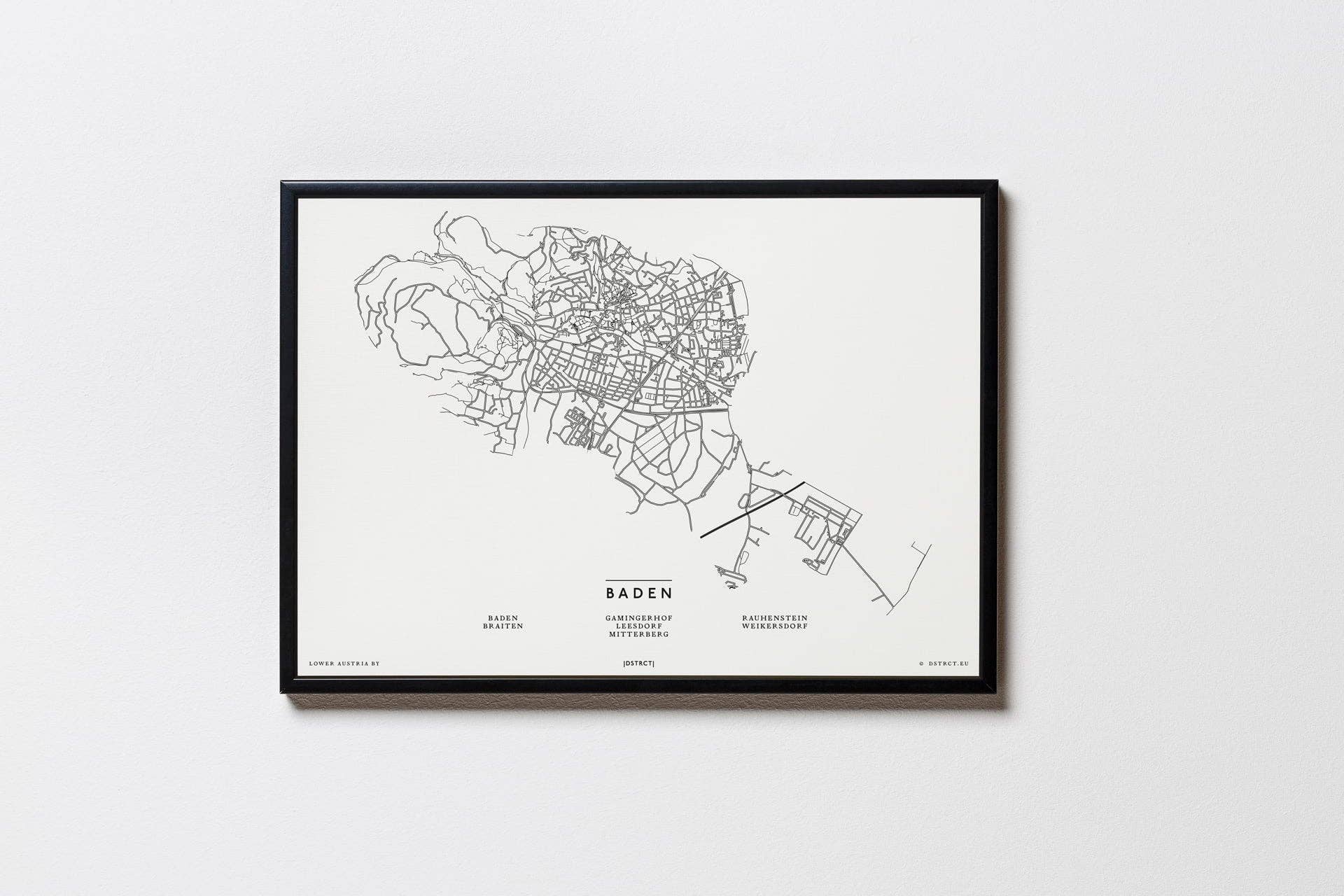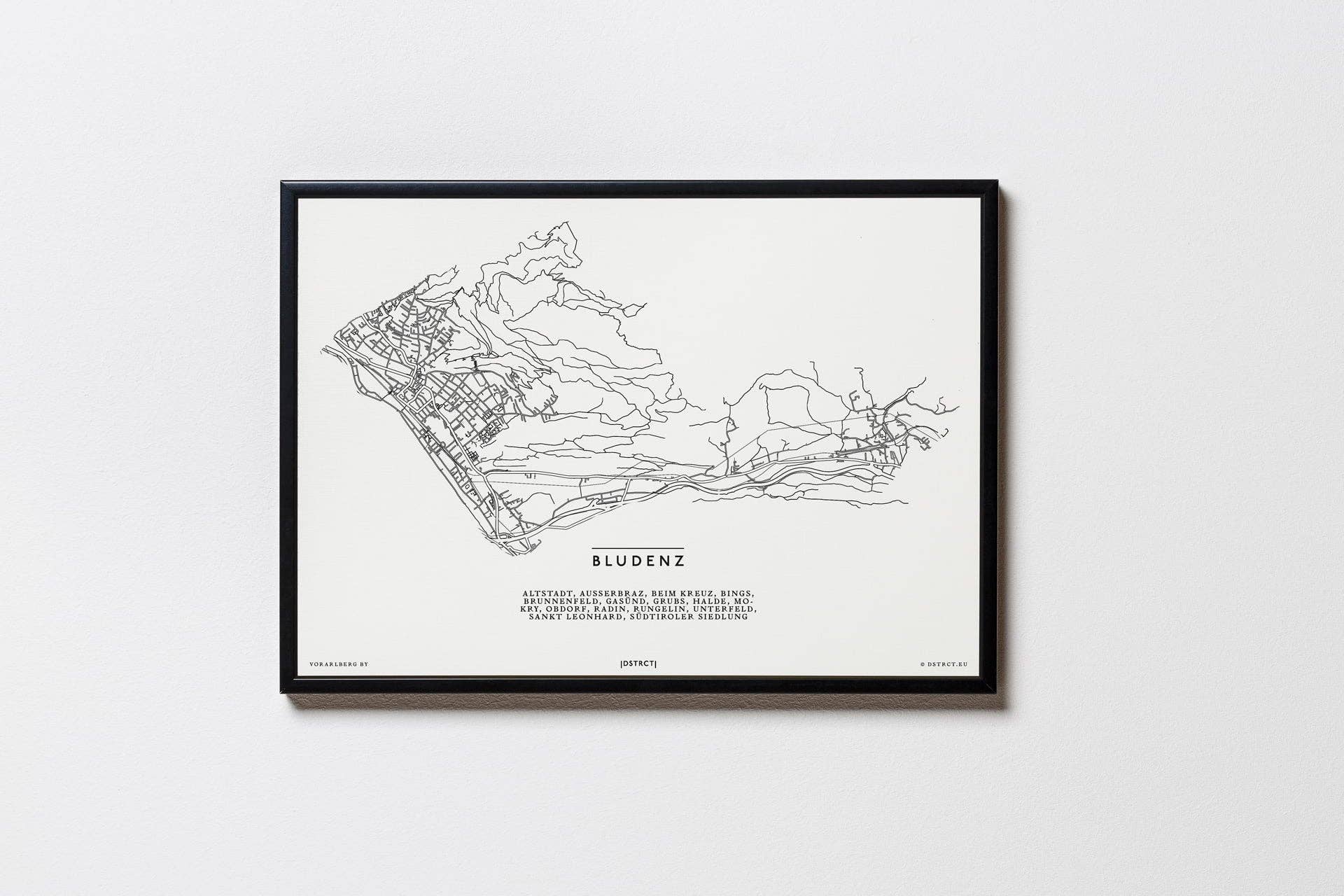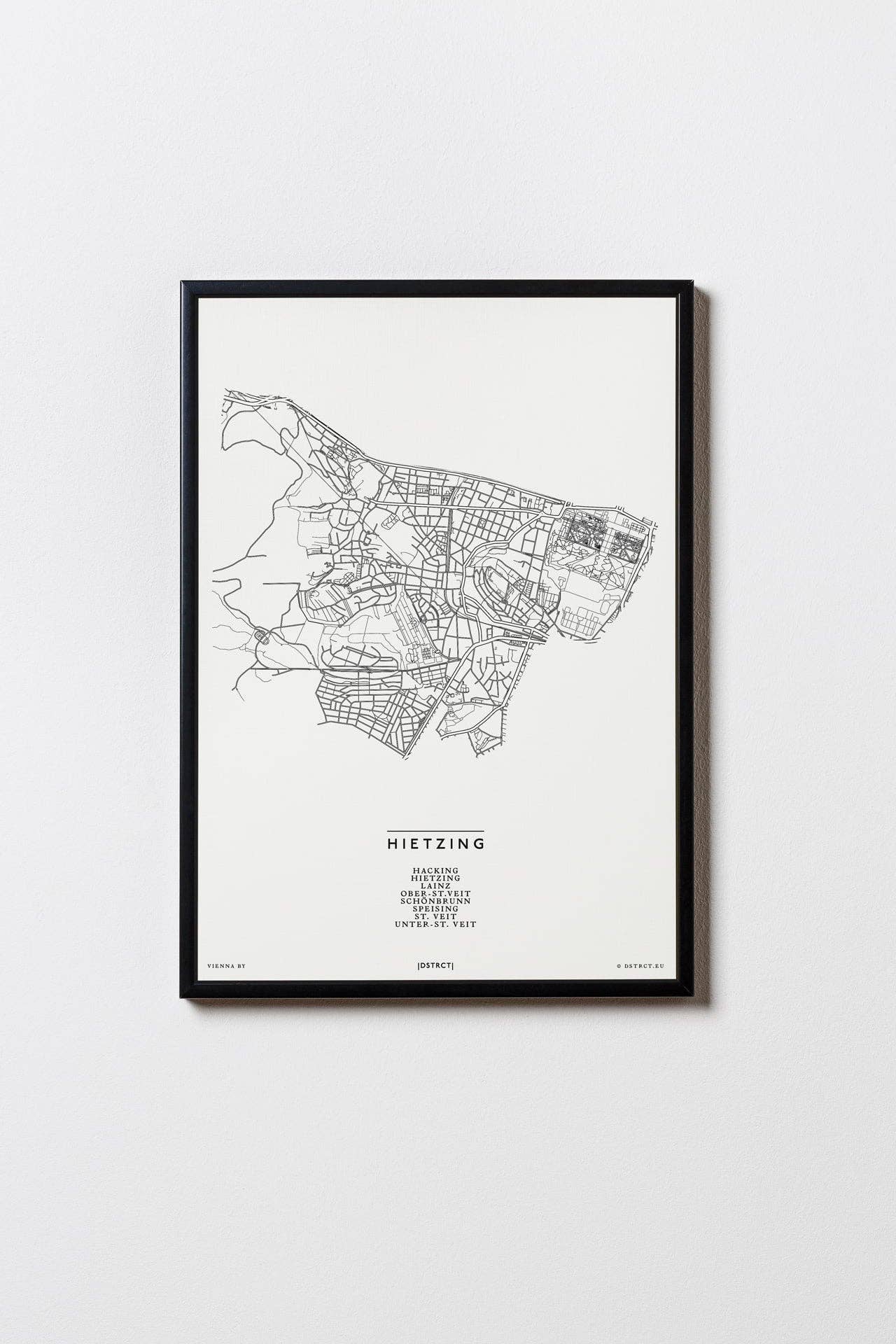 | DSTRCT | är ett produktions- och designföretag som skapar minimalistiska och estetiska stadskartor, illustrationer och teckningar av kvarter, landmärken och berg, vilket ger det eleganta hemmet den exklusiva finishen och en nypa hemlands kärlek. Varje motiv är handplockat, utveckling föregås av en genomarbetad kreativ process och alla material som används är av högsta kvalitet. Från idé till | DSTRCT | Alla älskar sin Grätzl - det gör vi också. Som en avskedspresent för en vän som särskilt gillade hans ”distrikt”, letade vi efter en original souvenir av sin tid i Wien. Efter en misslyckad sökning ritade vi en stiliserad karta över hans favorit Grätzl Margareten, skrev ut den och gav den till honom inramad som en present. Inte bara hans, utan också reaktionerna från de andra närvarande var så bra att vi omedelbart tvingades göra mer av dem för våra vänner. Samtidigt har puristiska bergsmotiv lagts till som glädjer bergsentusiaster. Med DSTRCT får du - Handgjorda mönster - Högkvalitativa utskrifter och bilder. Tillverkad i Österrike Made in the EU - Tryckt på premiumfärgat linnepapper (300 g/m²) - möjligen med högkvalitativa, matt svarta aluminiumramar.