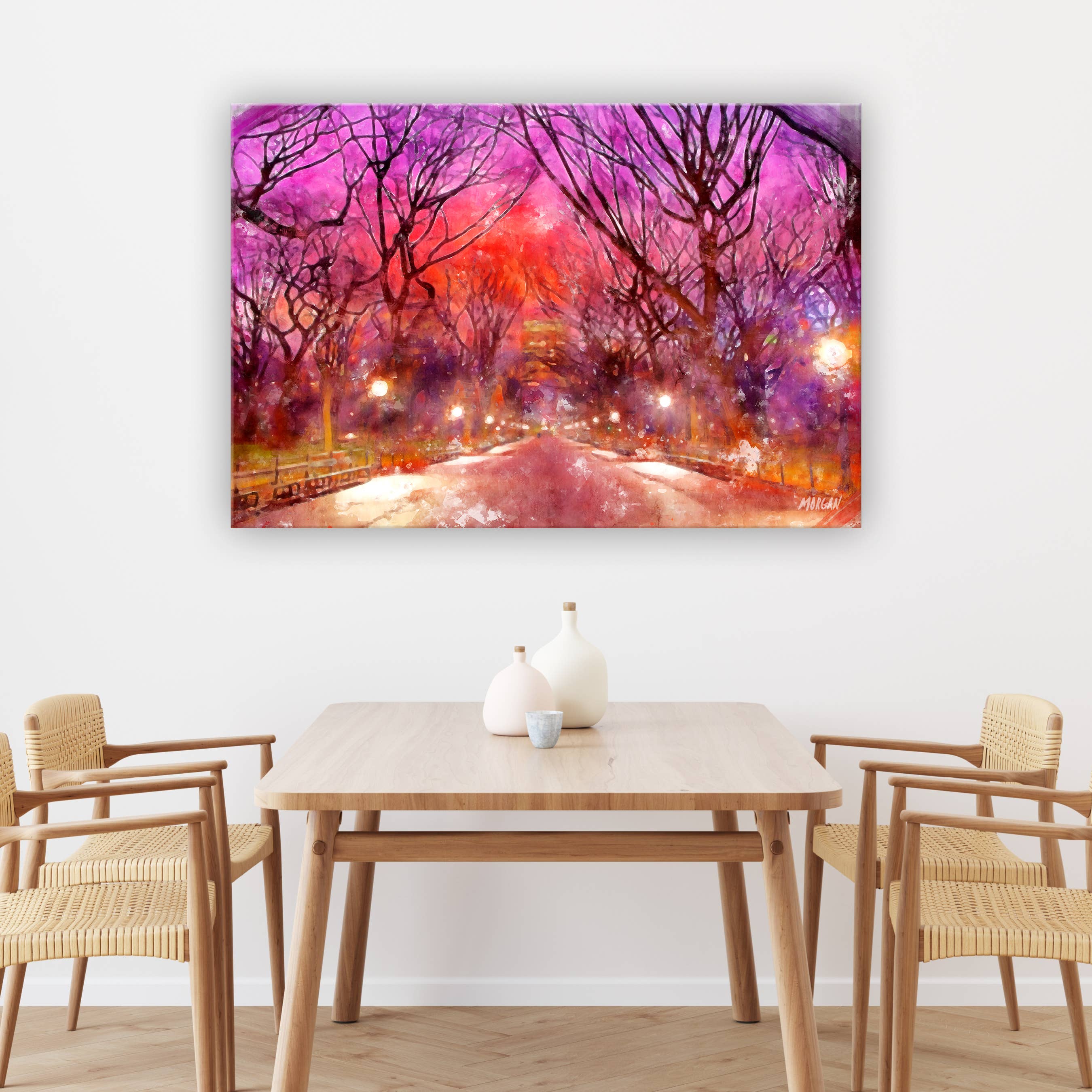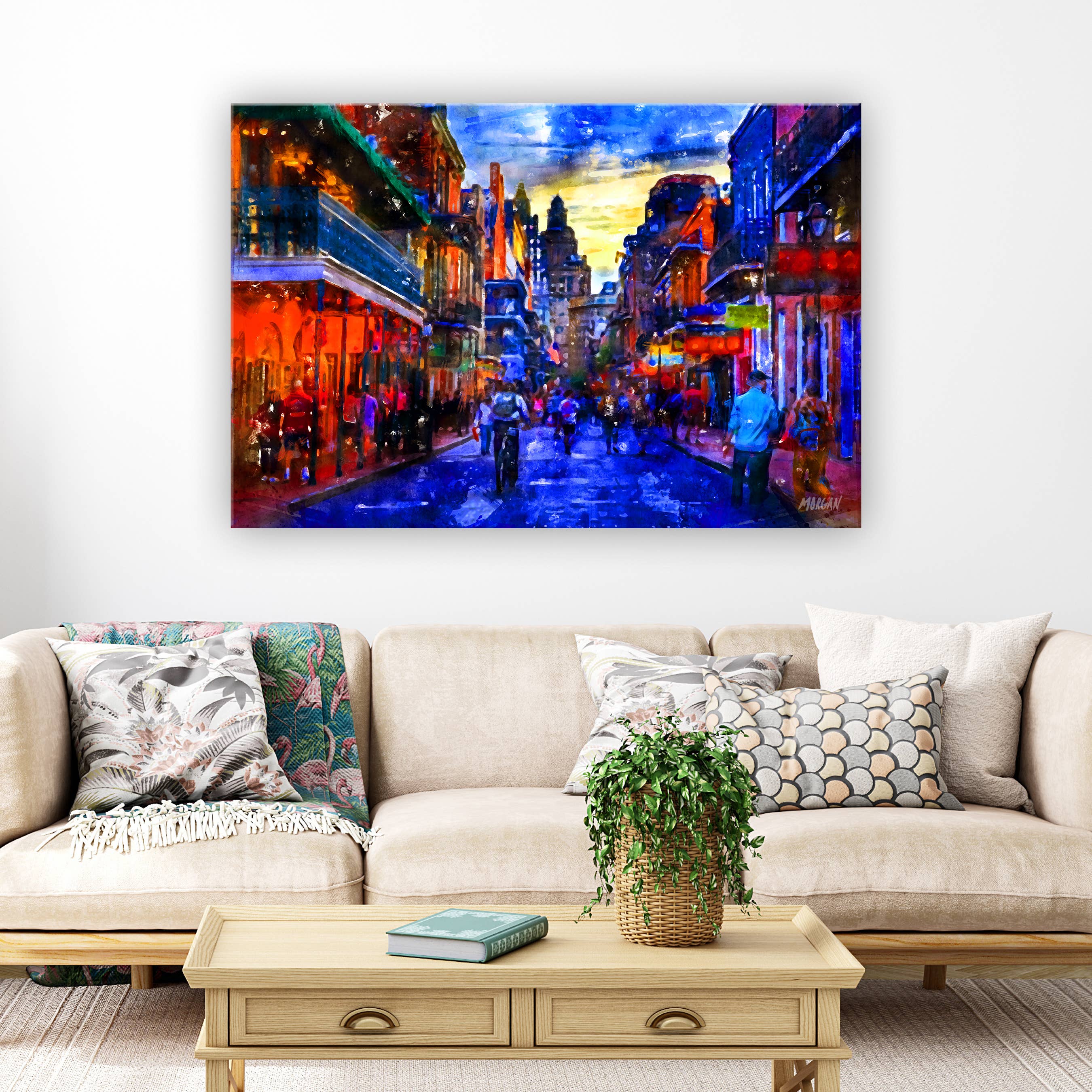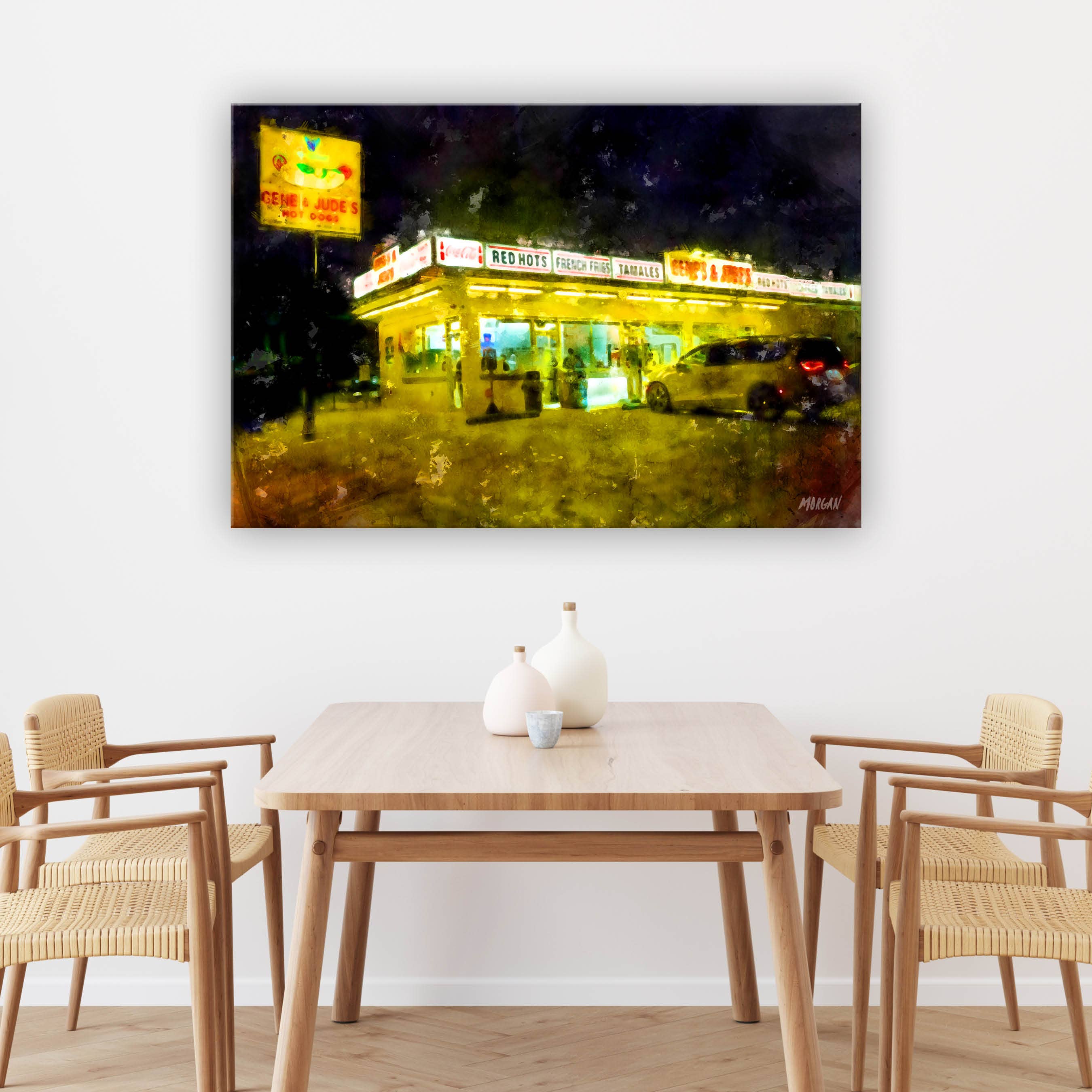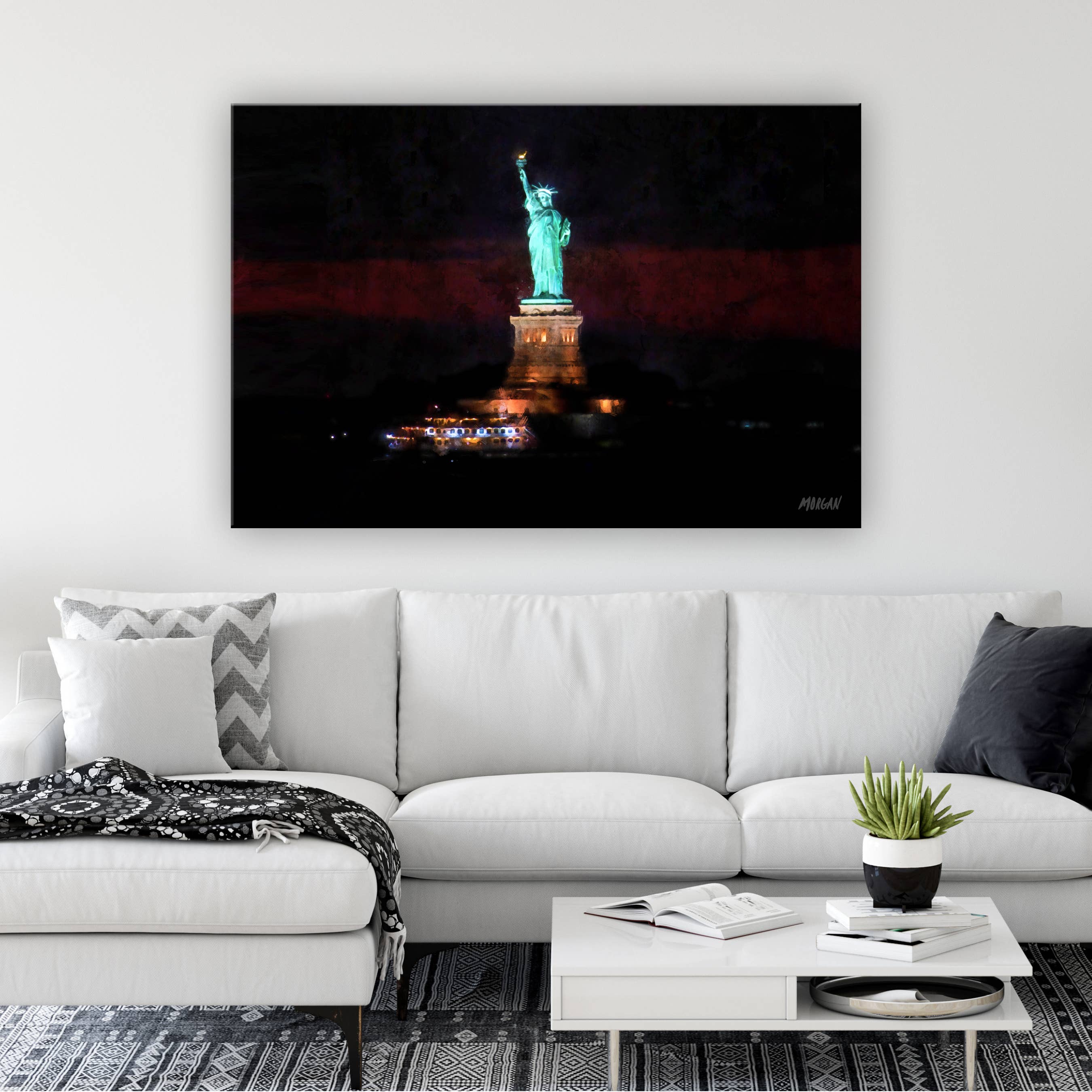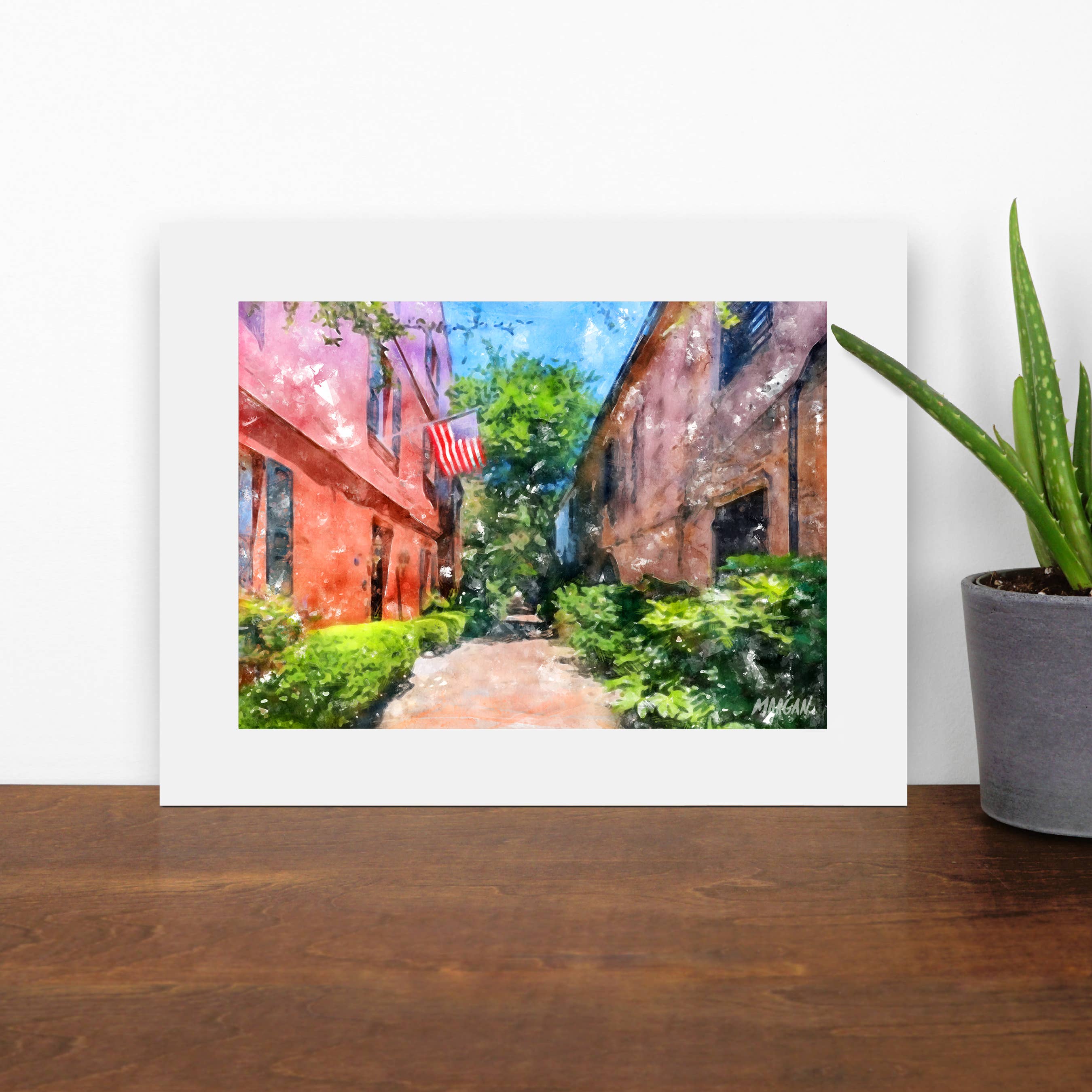 Vykort, gratulationskort, konsttryck & dukar av ikoniska lokala scener i ditt område av den populära konstnären Morgan. Varje plats har sin egen personlighet och människor som gör den speciell och älskad. Vi försöker fånga platsernas personlighet genom vacker och prisvärd konst. Under många år, min man har drivit en upptagen reklambyrå där jag stödde honom mellan att spendera tid på volontärarbete för välgörenhetsorganisationer och sköta min familjs behov. Med Covid-19 som drabbade världen 2020 mötte min familj många oväntade förändringar - varav en tillbringade många timmar tillsammans, bara vi fyra i vårt eget hus. Vi hade ofta drömt om att starta ett mindre hektiskt familjebaserat företag som gjorde något vi alla tyckte om och kunde ge tillbaka till samhället. Därför föddes G.O.A.T.! När vi bodde utomlands i Kanada, en lokal konstnär från Winnipeg målade många vackra bilder av staden, som var mycket populära som tryck och konstkort. Tyvärr är han nu avliden och lämnar efter sig arvet från sitt konstverk. Vi har sällan sett kvalitetssamlingar av prisvärd konst som representerar andra städer och populära destinationer som våra nationalparker. Så vi tänkte, låt oss skapa dem själva! Min man och döttrar arbetar tillsammans som konstnärer för att skapa alla konstverk, och jag driver det dagliga för att övervaka produktion och frakt+allt ledarskap. De tryckmaterial vi använder är noggrant kuraterade för kvalitet, med allt som skapas i USA.
