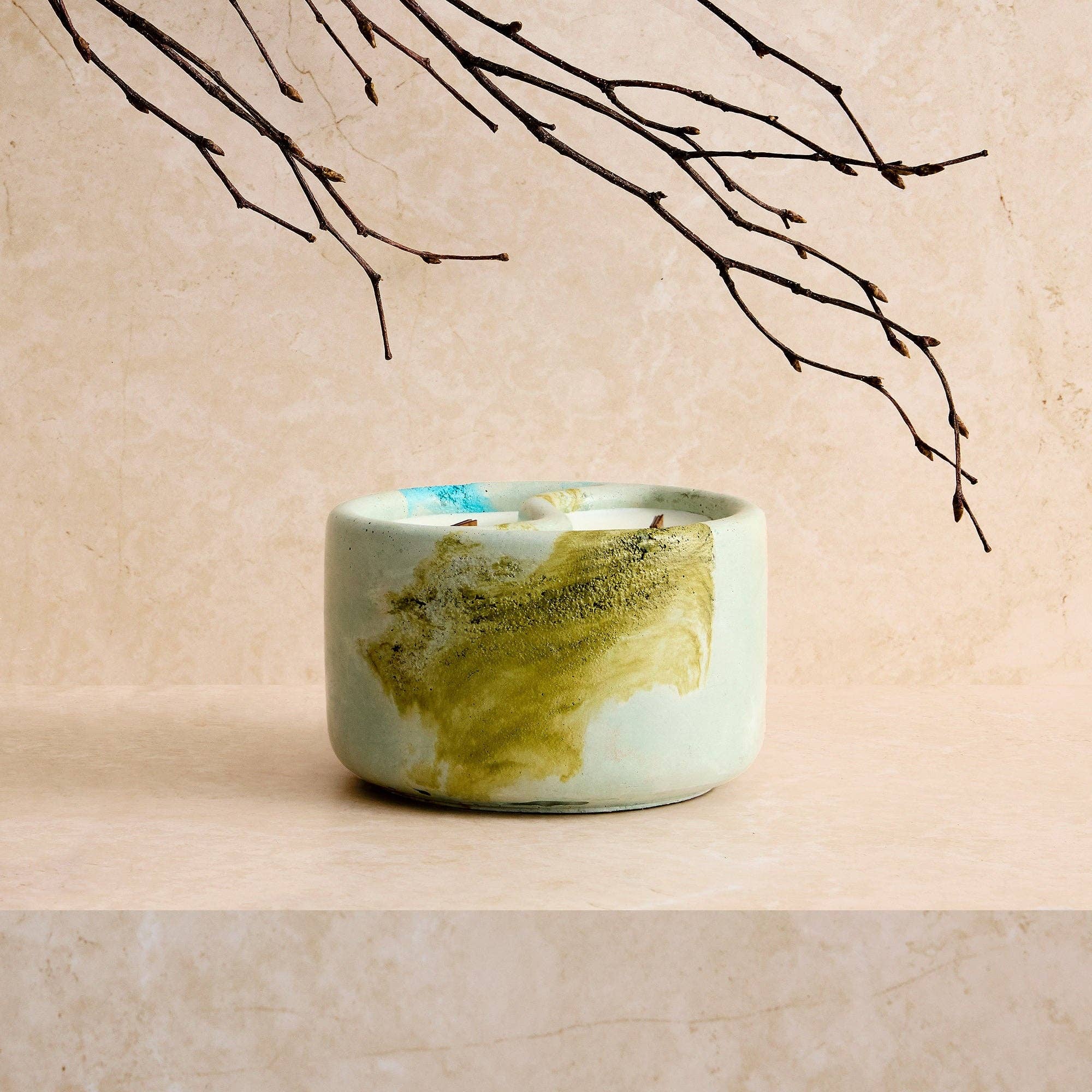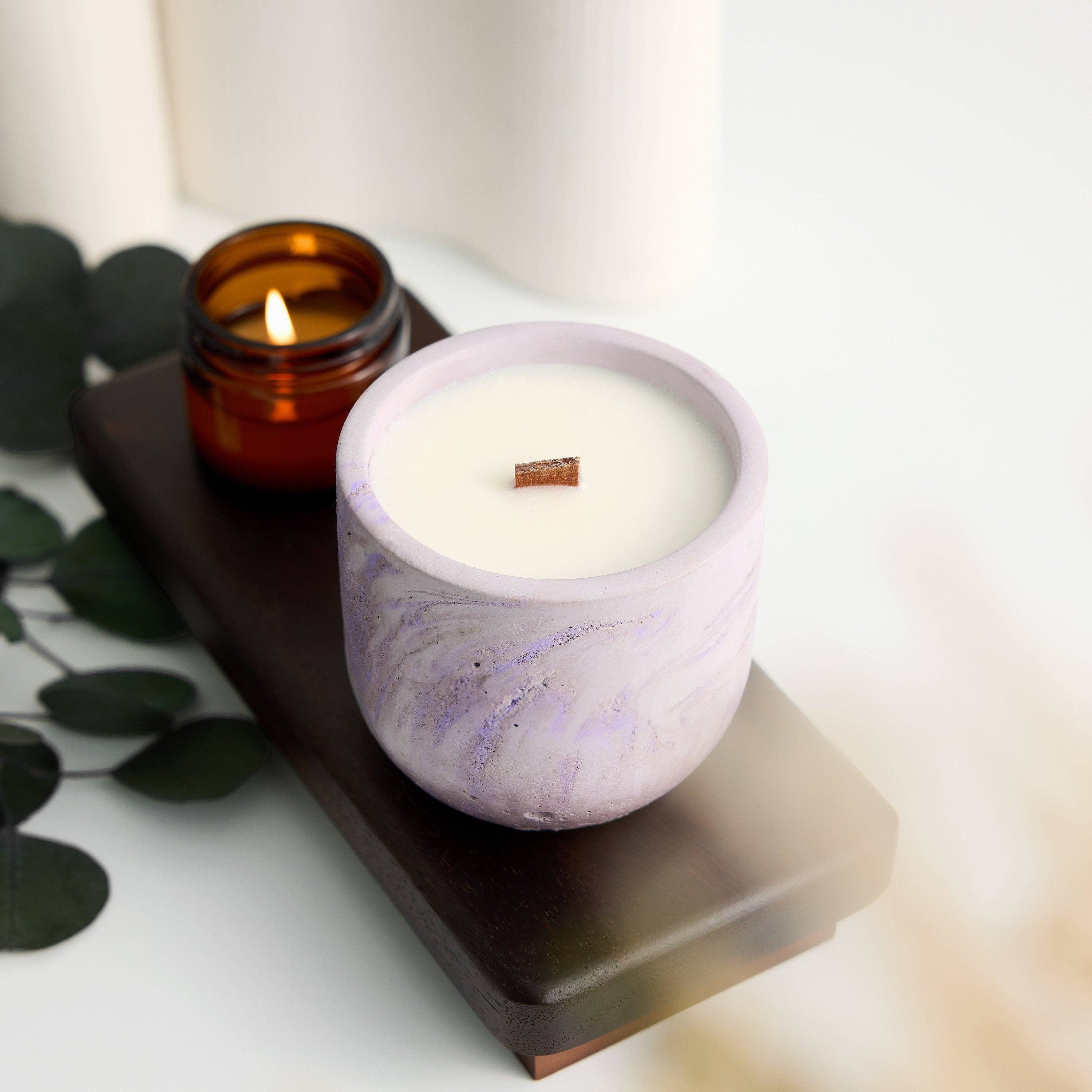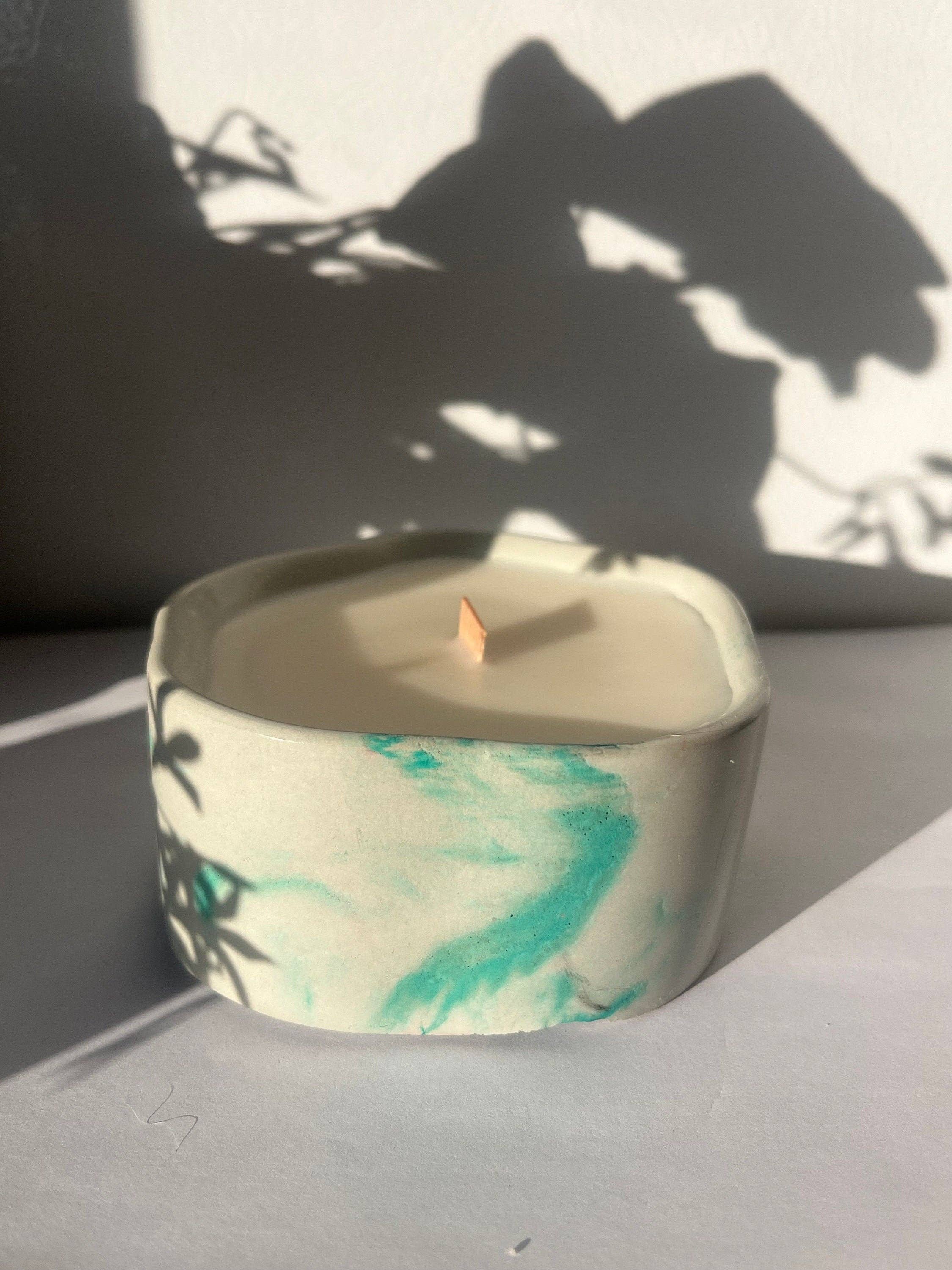Idén bakom mina ljus kommer från en filosofisk utforskning av dualitet. Ungefär som våra stadslandskap, dominerade av grå betongkonstruktioner, hittar vi också naturens känsliga skönhet: grönskande kullar, blommande blommor och frodiga buskar. Dessa kontrasterande element samexisterar harmoniskt och speglar sammansmältningen av betongens motståndskraft med vaxets bräcklighet. Det inspirerade mig att slå samman det vanliga med det känsliga och vackra. Jag använder också trävekar som vi mest kan höra i tystnad och det är vad jag skapar mina ljus för - för att du ska njuta av tystnaden efter en lång dag med arbete eller ärenden. Så här föddes Shhhh Candles av Kat.