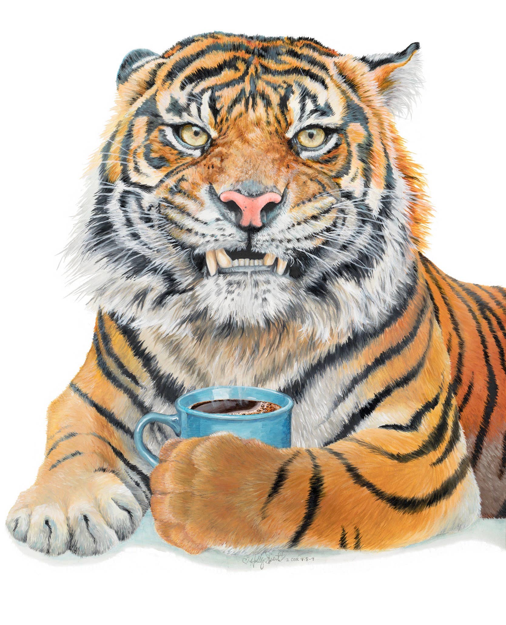 Om Holly Simental Att producera tryck av min konst började med Mama Kiki's på Etsy. Jag har tryckt giclee-tryck och affischer av museikvalitet i mer än 10 år. Klistermärken har nyligen lagts till. Min konststil är överdriven realism med djur som gör mänskliga saker och dricker kaffe. Mina verk har blivit populära världen över och säljer mycket bra i en praktisk miljö. Målet är att skapa konst som får människor att le.
