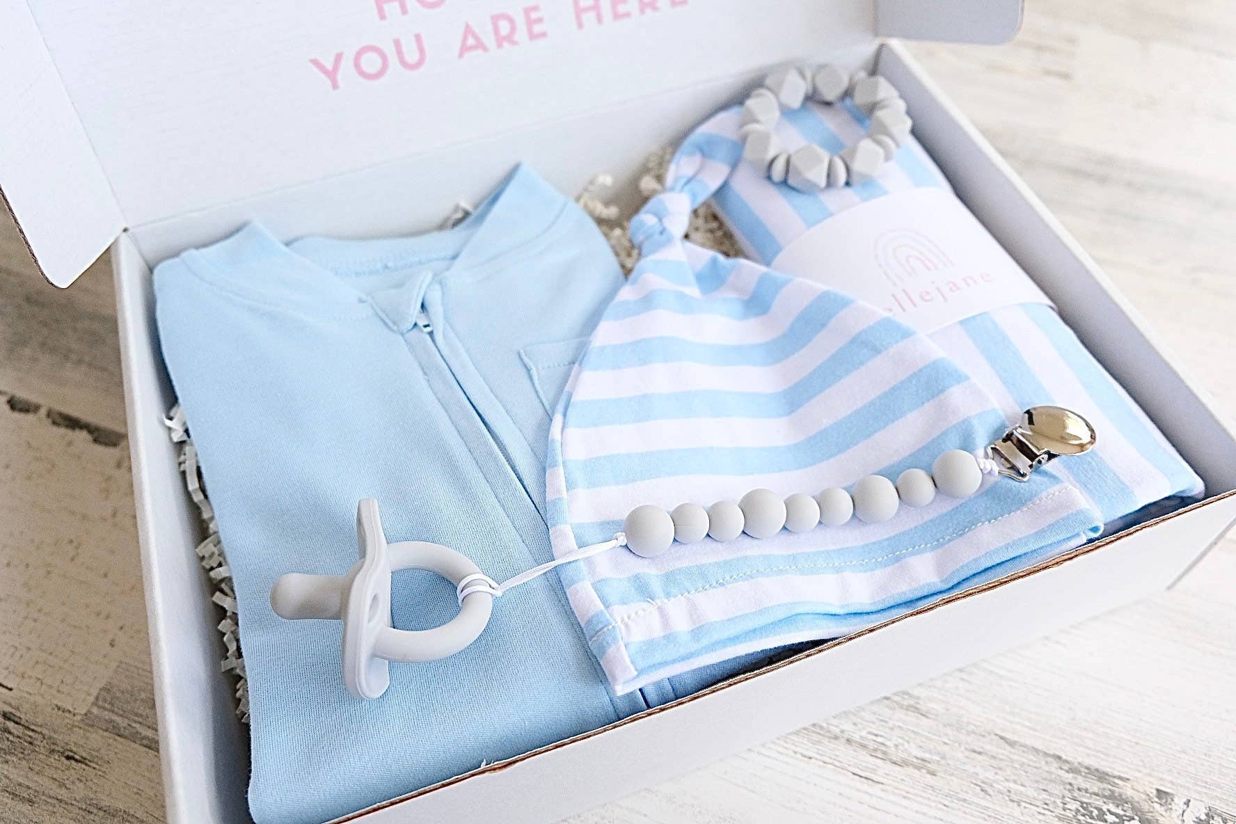 Välkommen till Ellejaneco! Vi är din enda destination för gåvor av nyfödda och småbarn. På Ellejaneco tycker vi om att kurera presenter till dina nära och kära, speciellt för det nya barnet i ditt liv. Våra lådor är redo att gåva! Du behöver inte packa in eller oroa dig för mjukpapper, vi täckte det åt dig. Alla våra produkter är designade och tillverkade av högsta kvalitet. Från kön avslöjar, baby duschar, för att välkomna hemlådor lovar vi att lämna ett bestående intryck. Som vårt motto säger, ”gör dig till den bästa gifter, alltid” och det är vårt löfte.